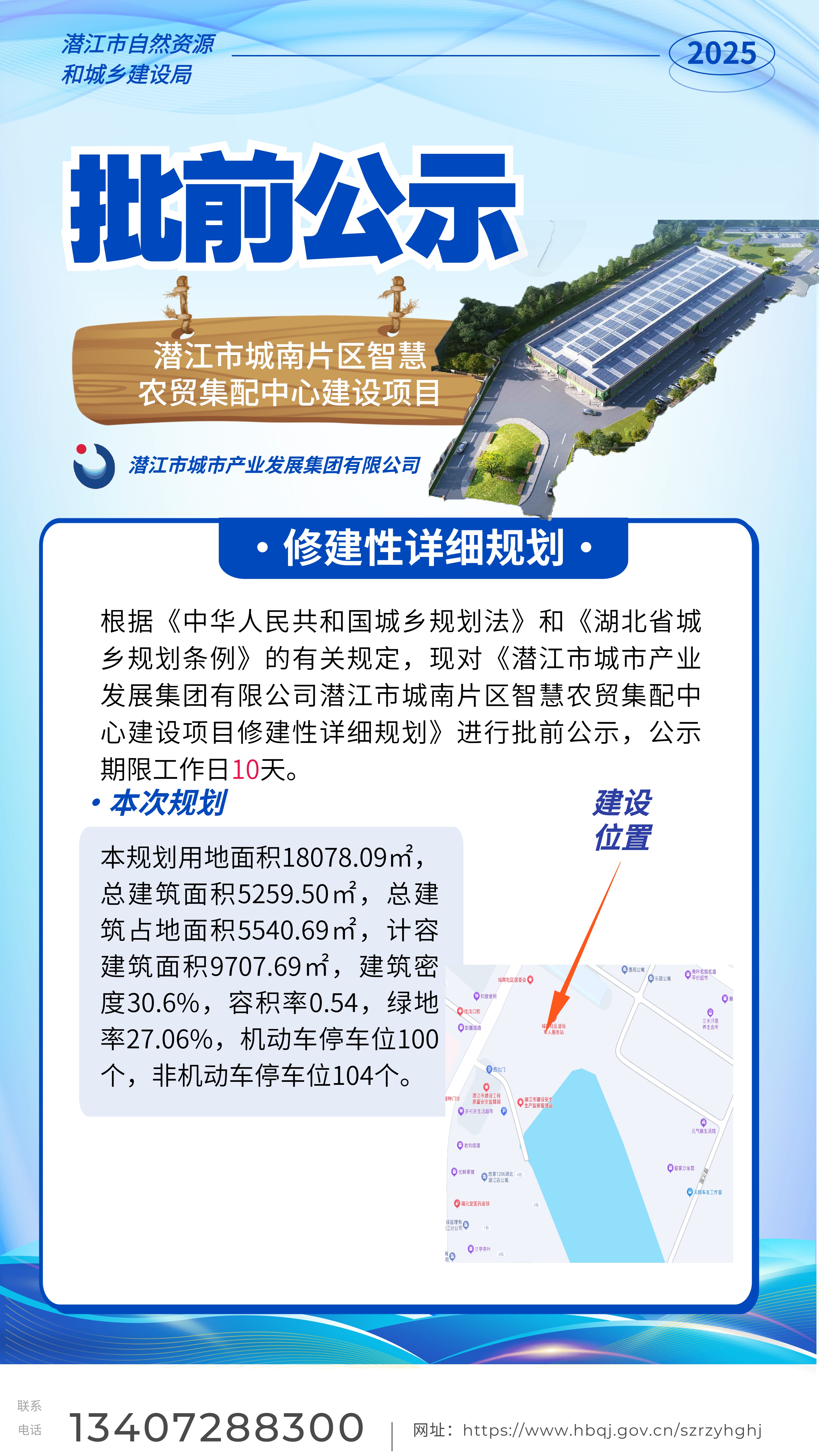 潜江市城市产业发展集团有限公司潜江市城南片区智慧农贸集配中心建设项目修建性详细规划批前公示