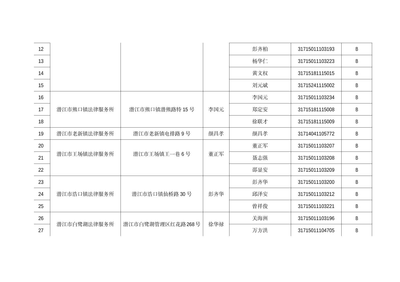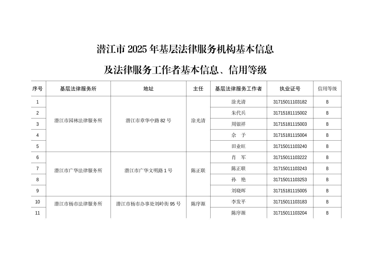 潜江市2025年基层法律服务机构基本信息及法律服务工作者基本信息、信用等级