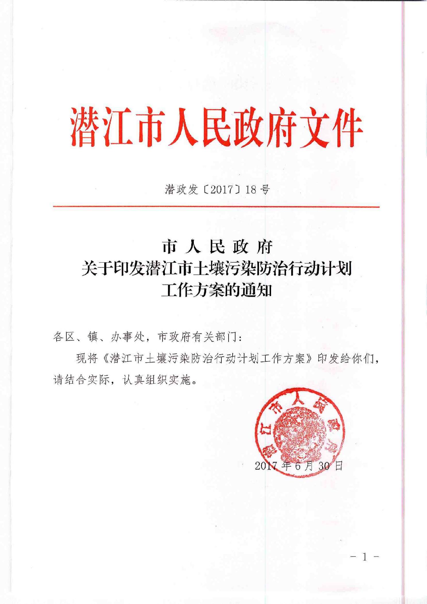 市人民政府关于印发潜江市土壤污染防治行动计划工作方案的通知