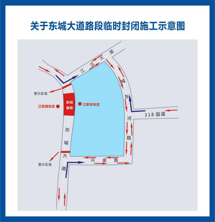 关于东城大道(江汉艺术职业学院门前路段)道路半封闭施工的通告