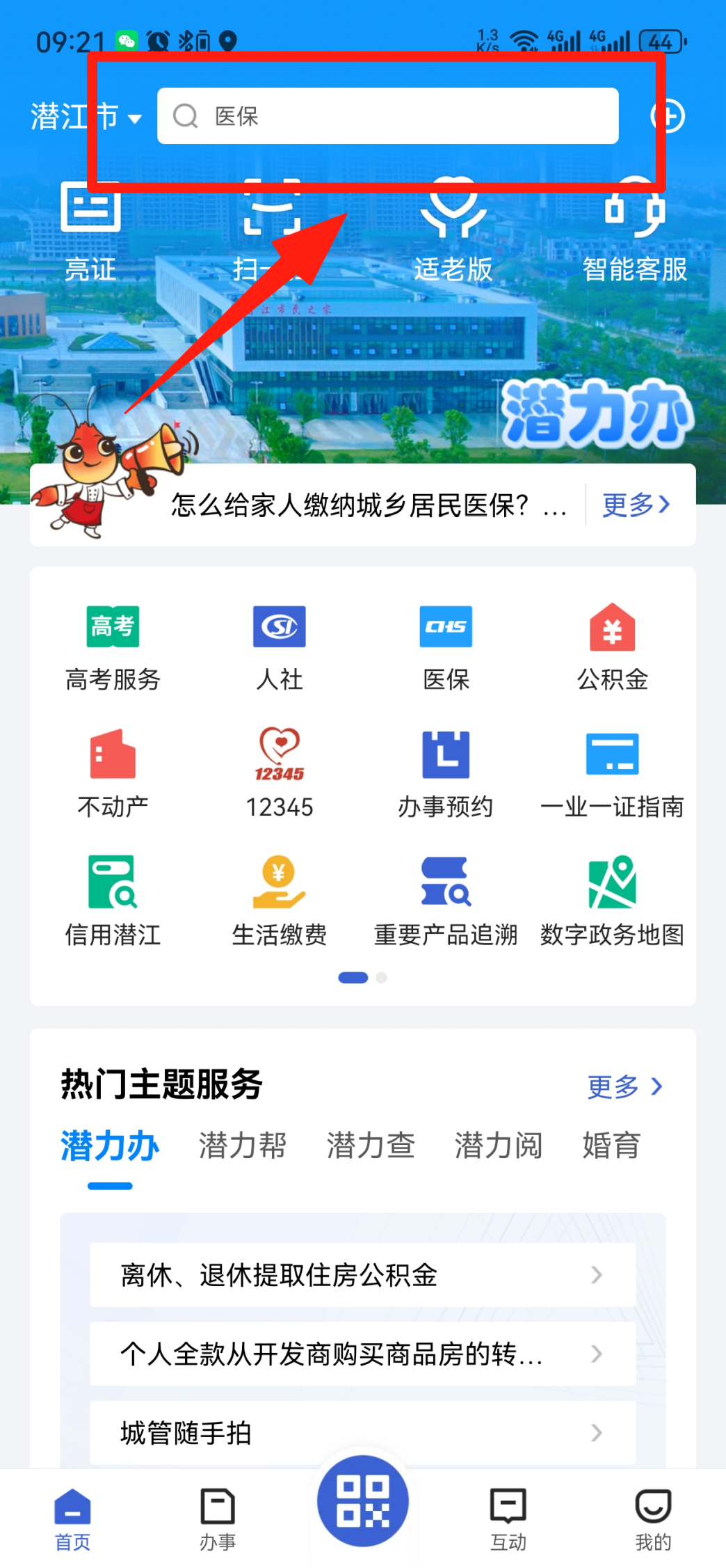 1. 打开【鄂汇办】App,点击搜索框