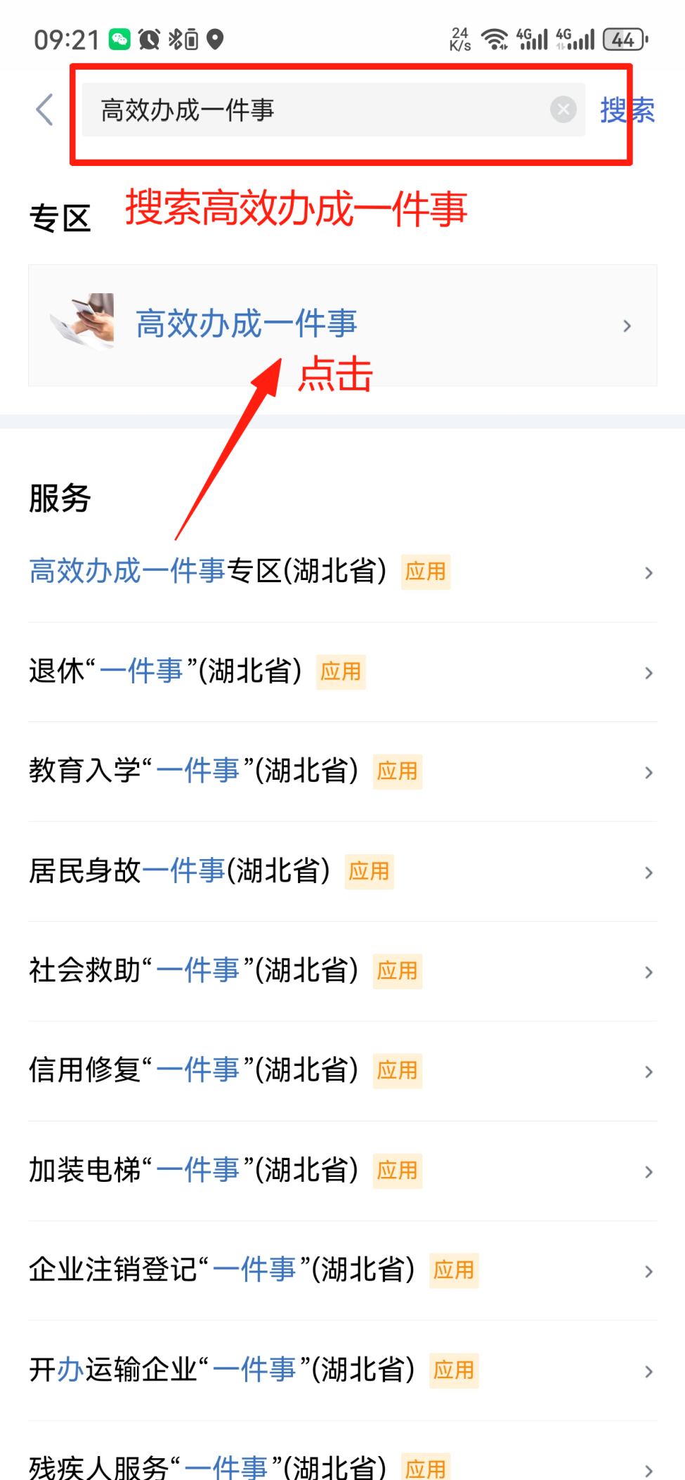 2. 搜索【高效办成一件事】并点击进入