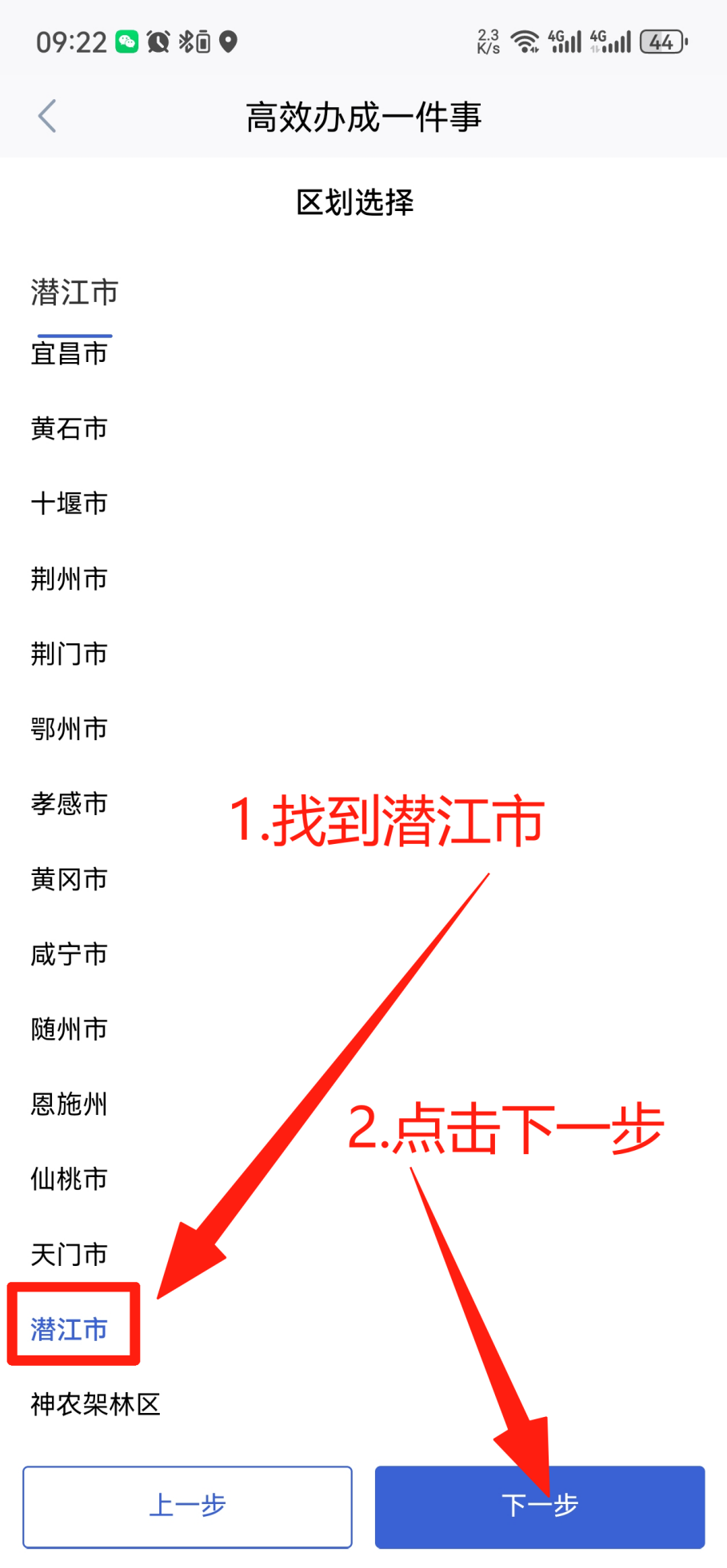 4. 找到【潜江市】并点击【下一步】
