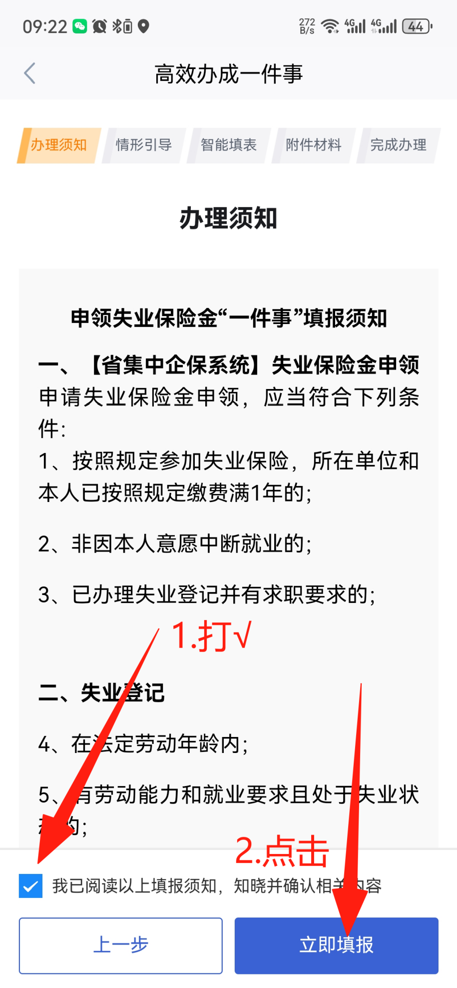 5. 勾选【我已阅读以上填报须知】并点击【立即填报】