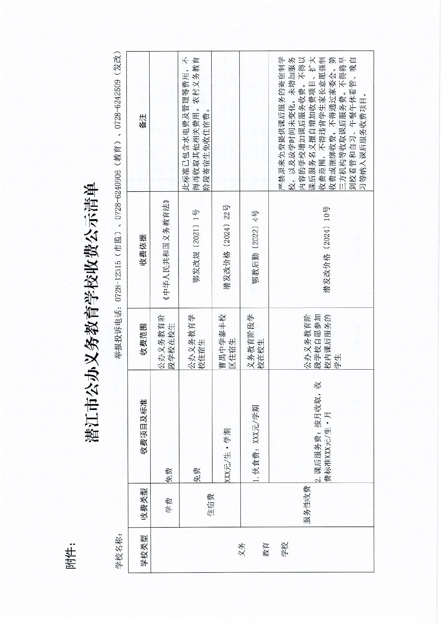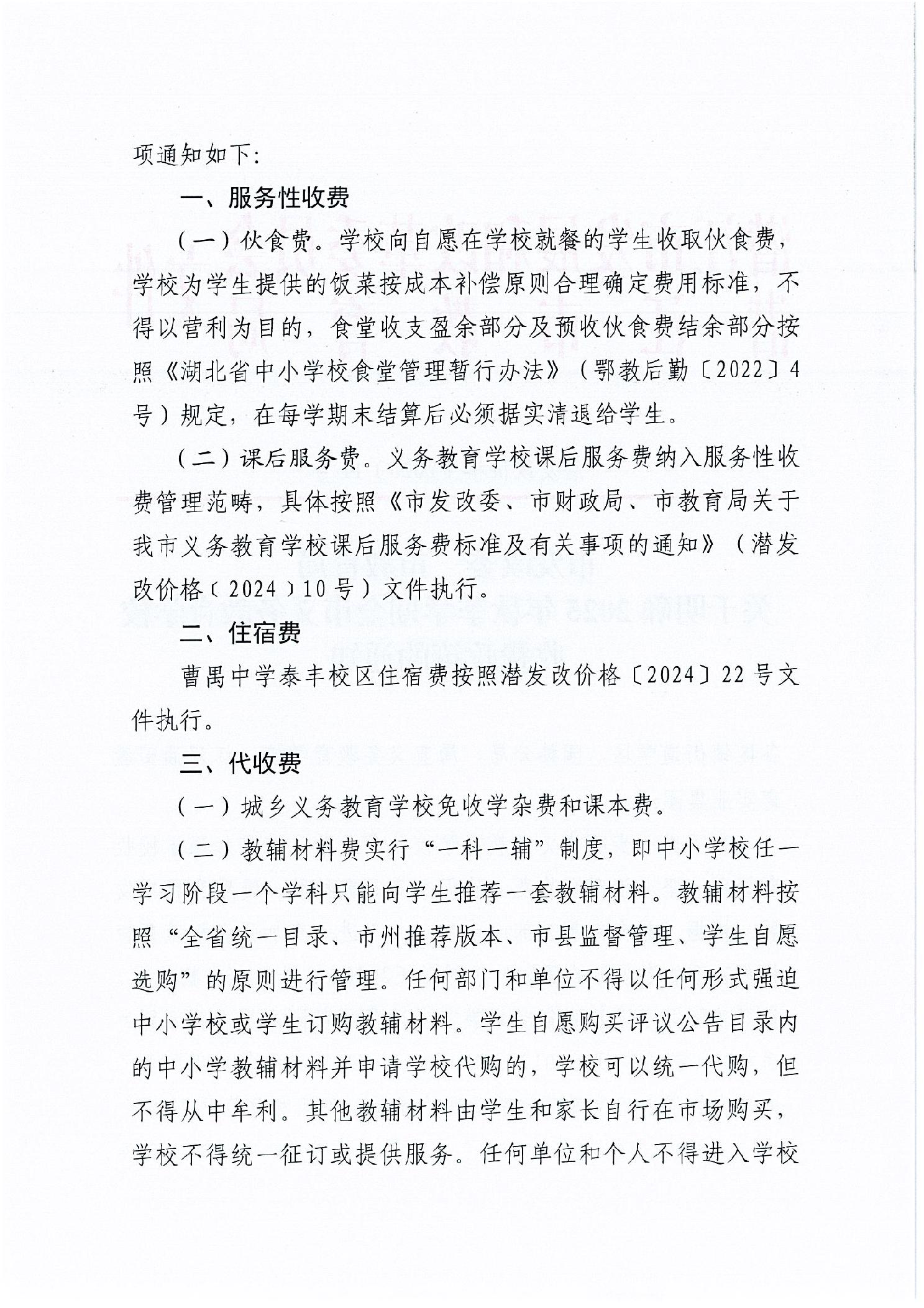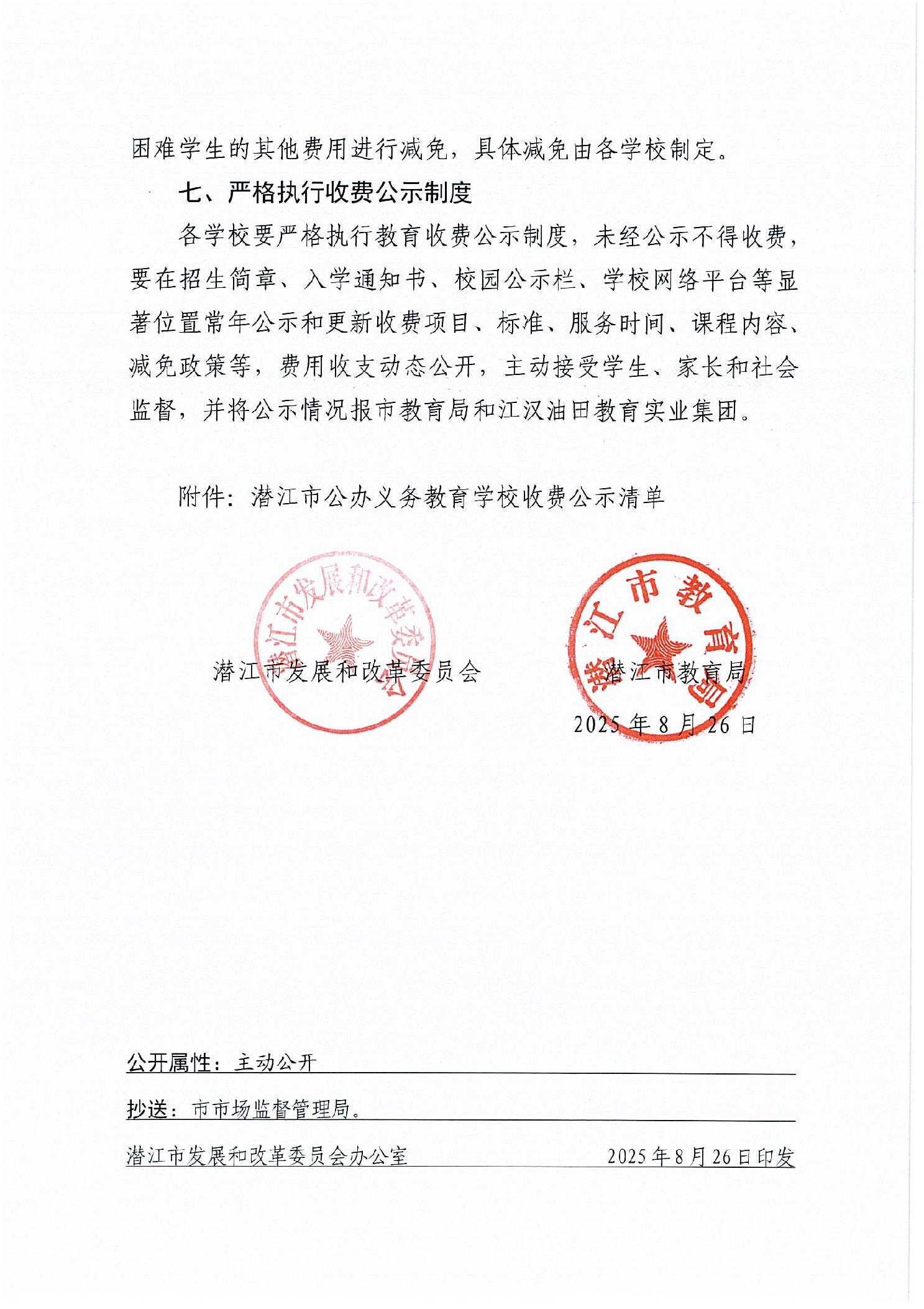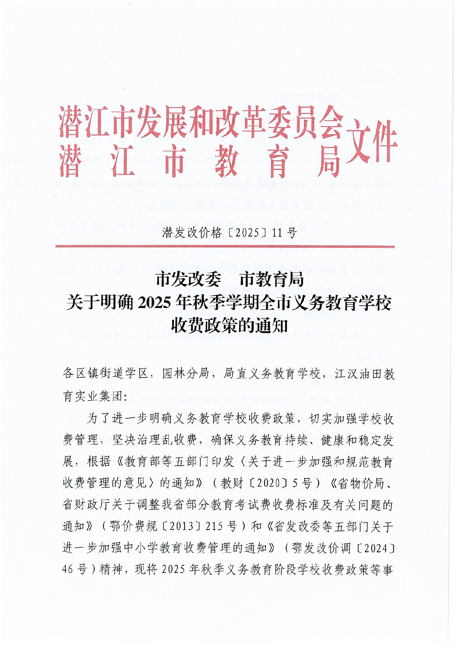 关于明确2025年秋季学期全市义务教育学校收费政策的通知