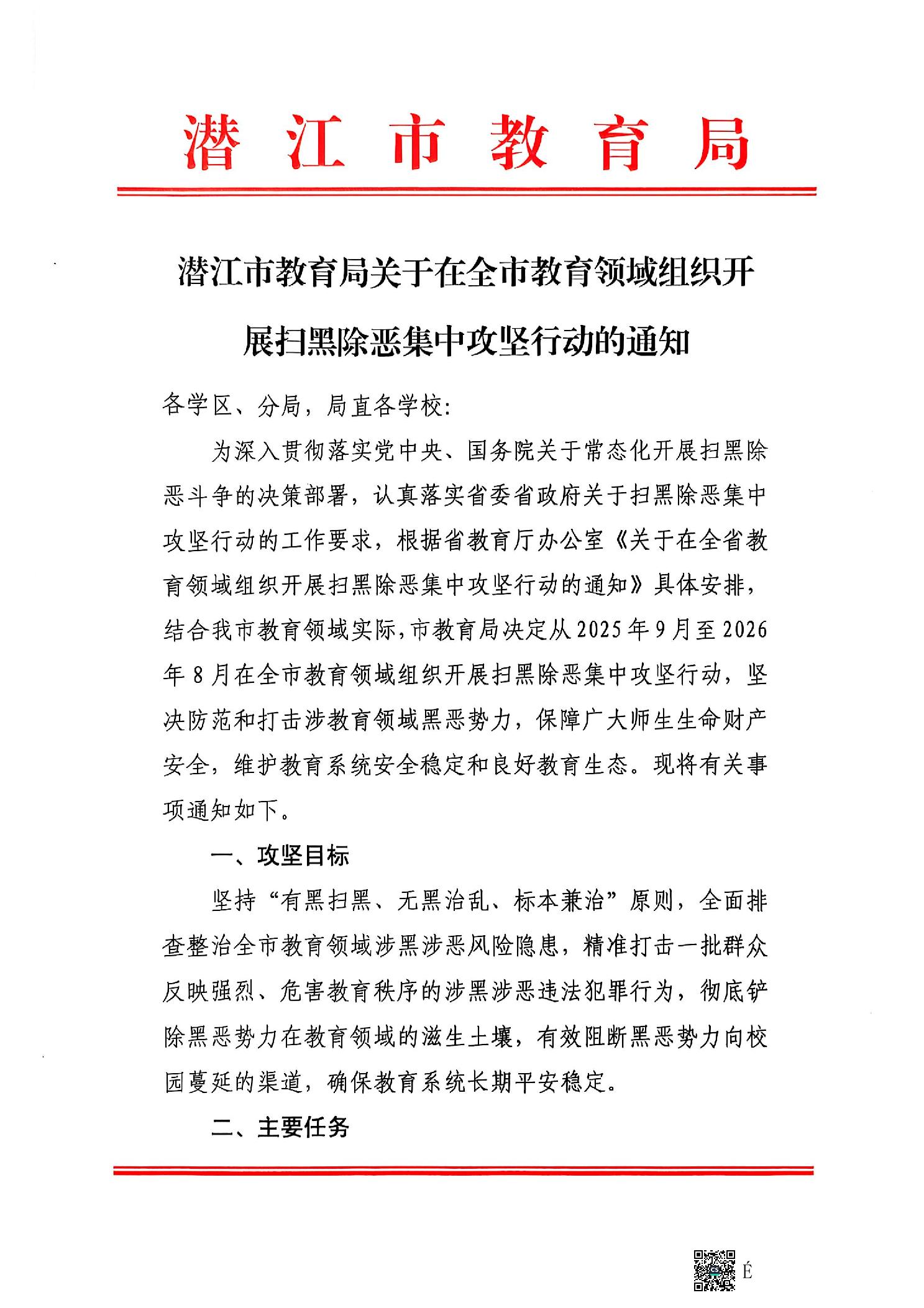 潜江市教育局关于在全市教育领域组织开展扫黑除恶集中攻坚行动的通知