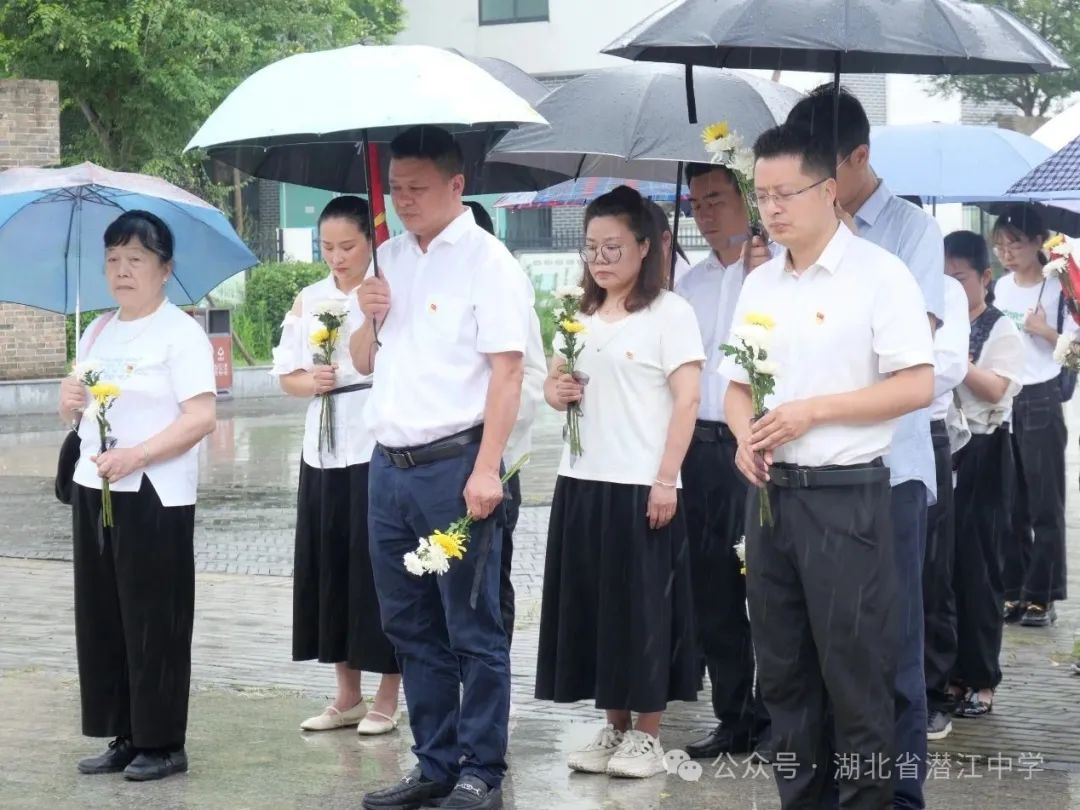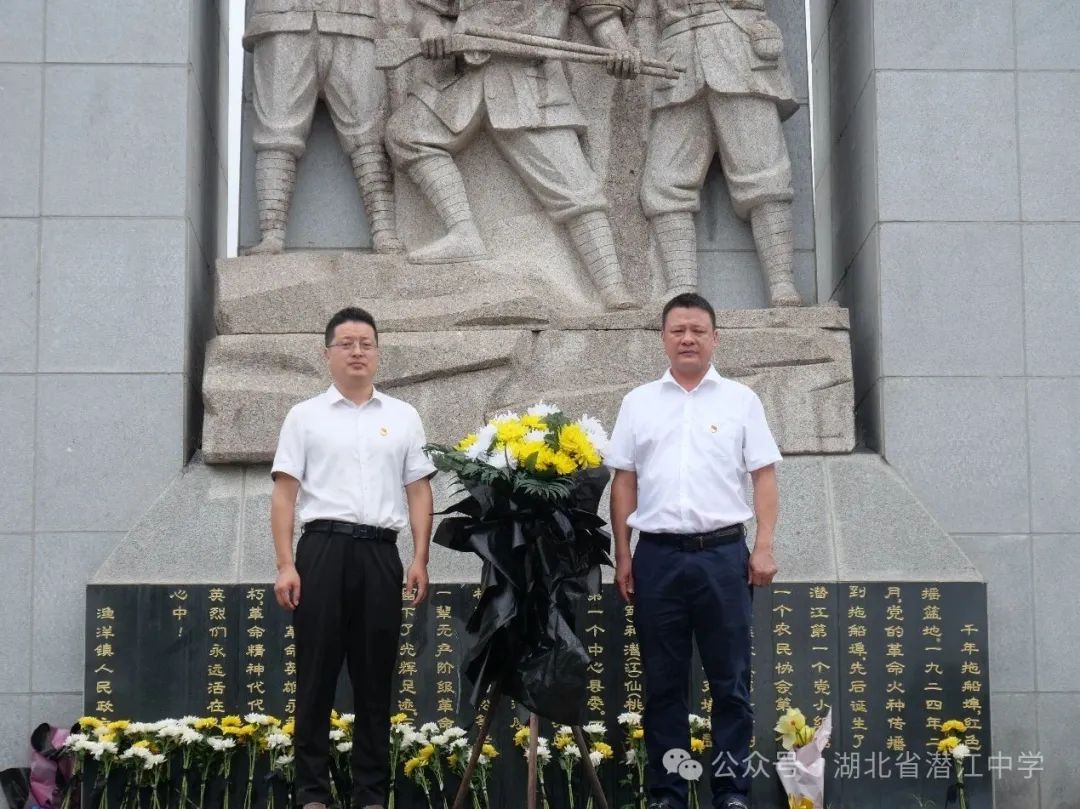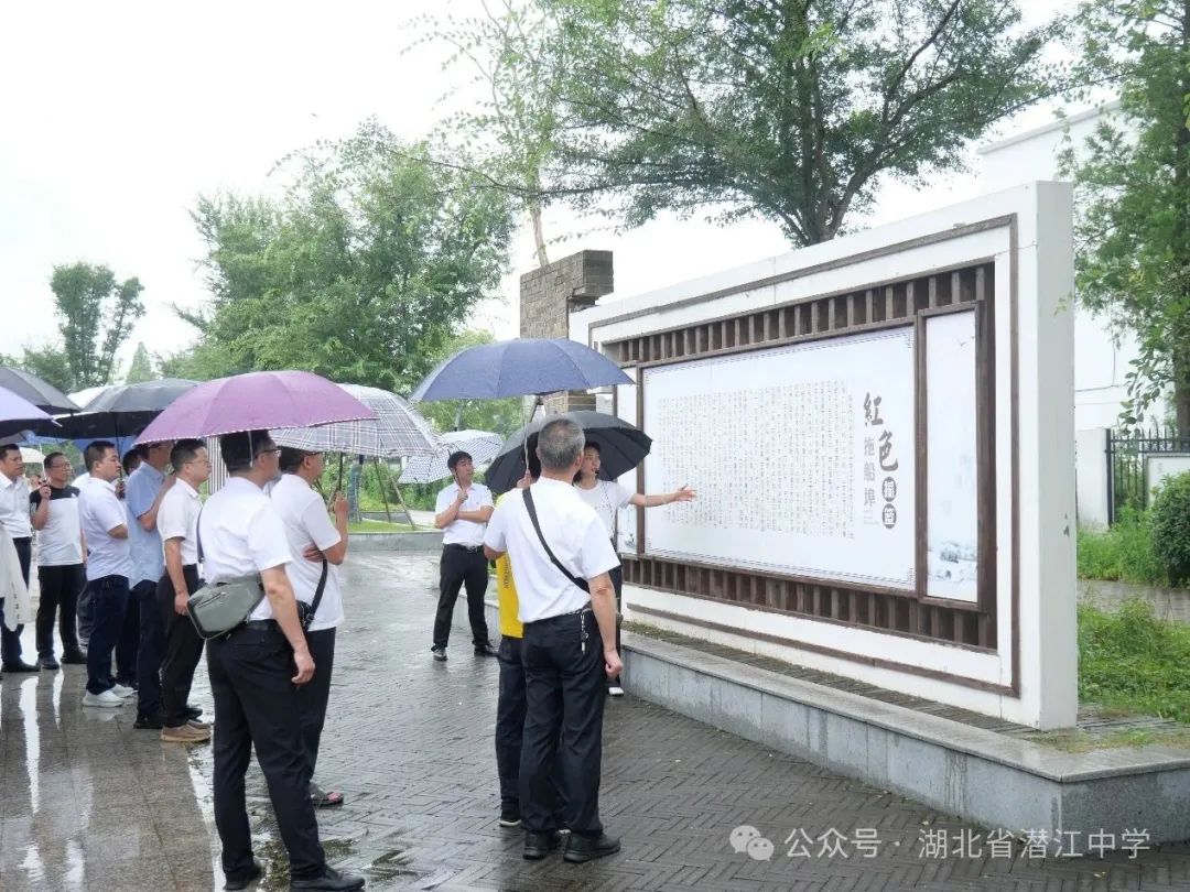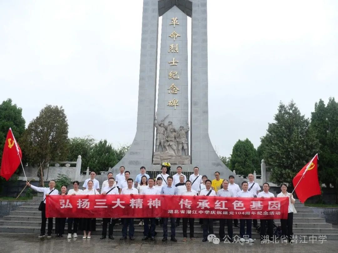 为庆祝中国共产党成立104周年,深入贯彻中央八项规定精神学习教育,弘扬三大精神,发扬革命传统,传承红色基因,赓续共产党人精神血脉,2025年6月27日,潜江中学组织党员赴拖船埠红色教育基地开展庆祝中国共产党成立104周年活动。