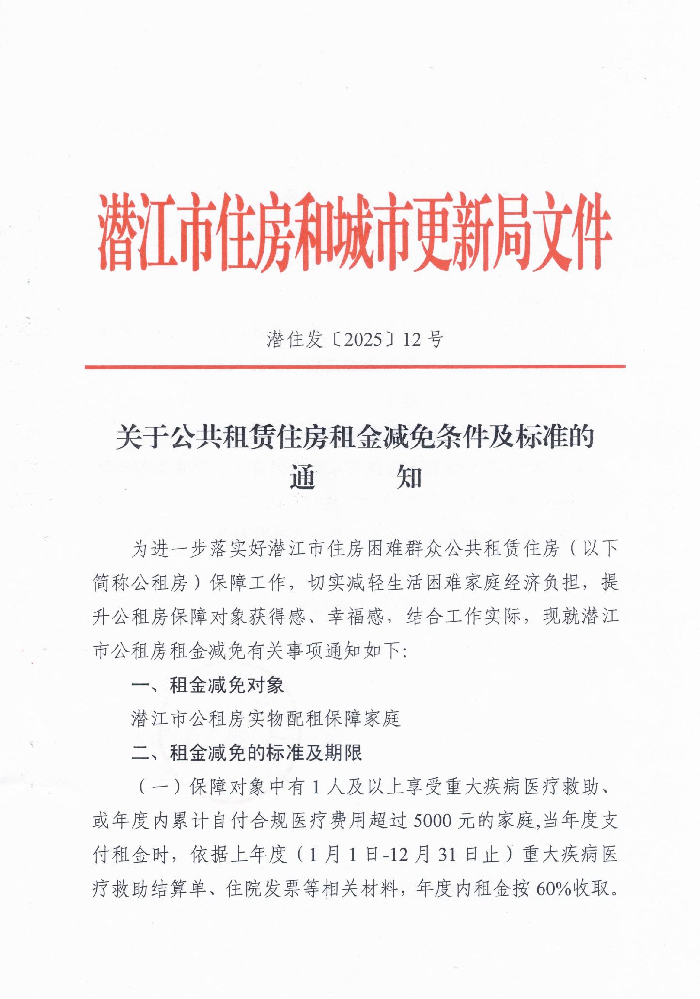 名 称: 关于公共租赁住房租金减免条件及标准的通知