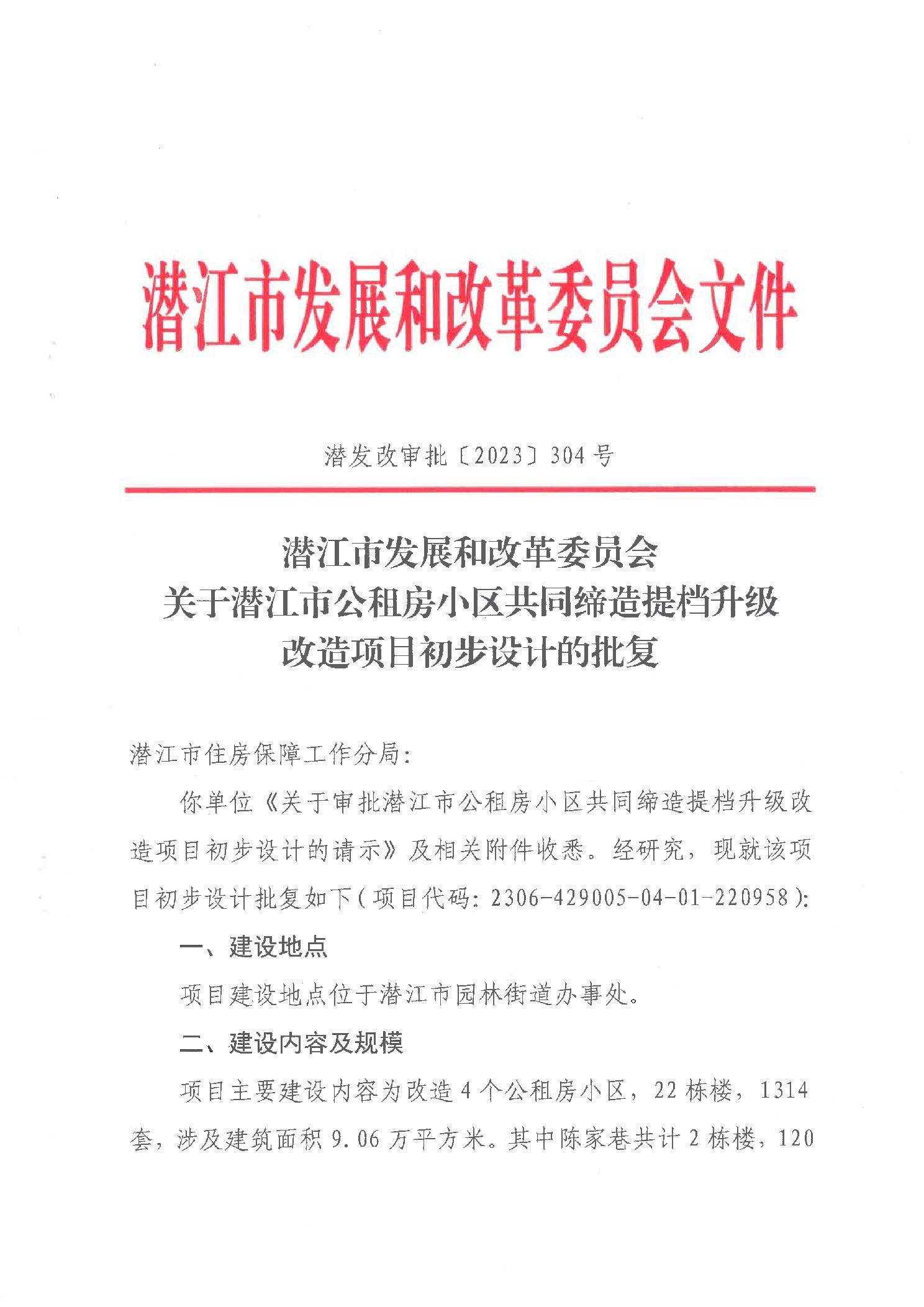 关于潜江市公租房小区共同缔造提档升级改造项目初步设计的批复