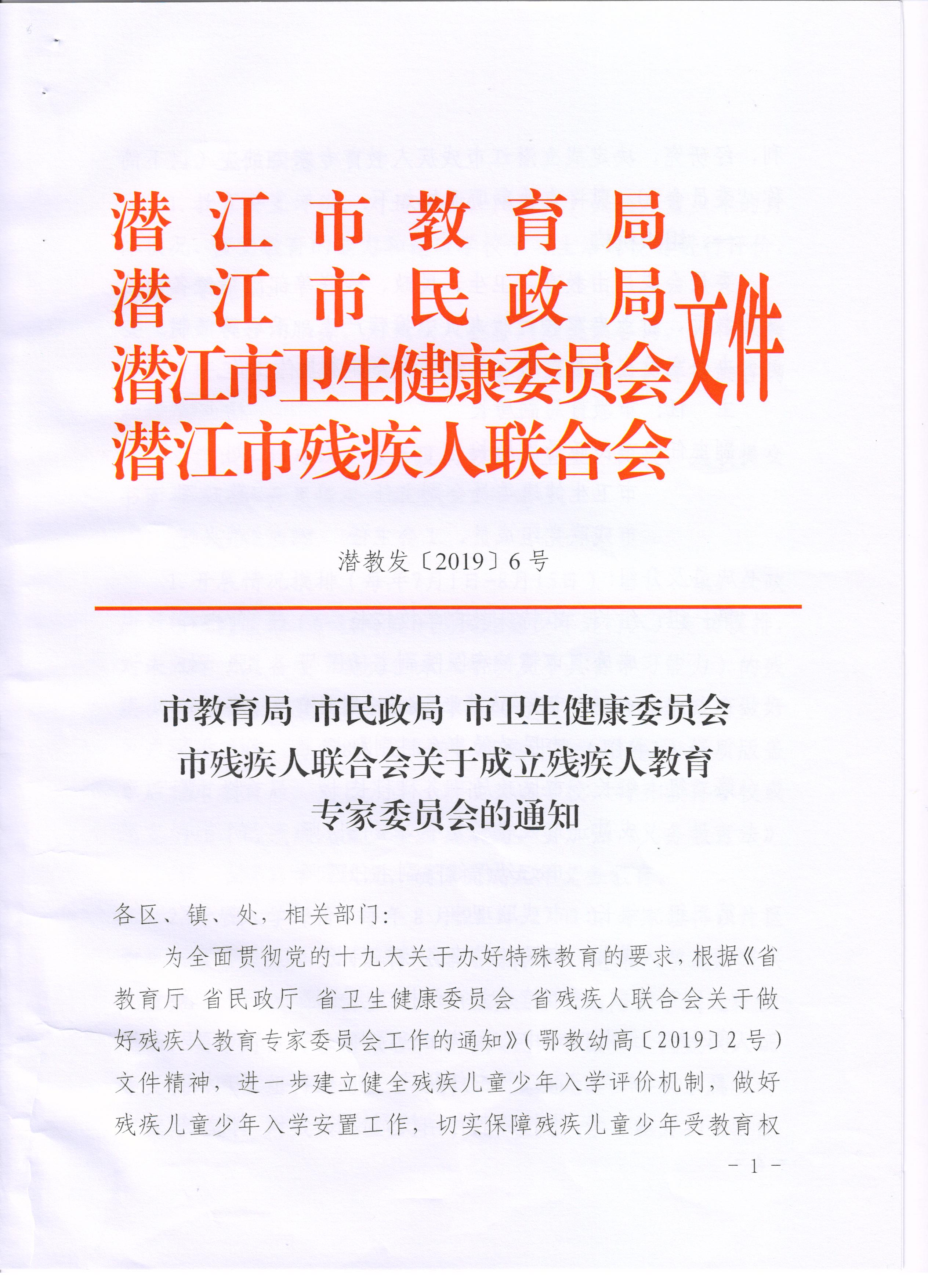 关于成立残疾人教育专家委员会的通知(市教育局、市民政局、市卫健委、市残联)