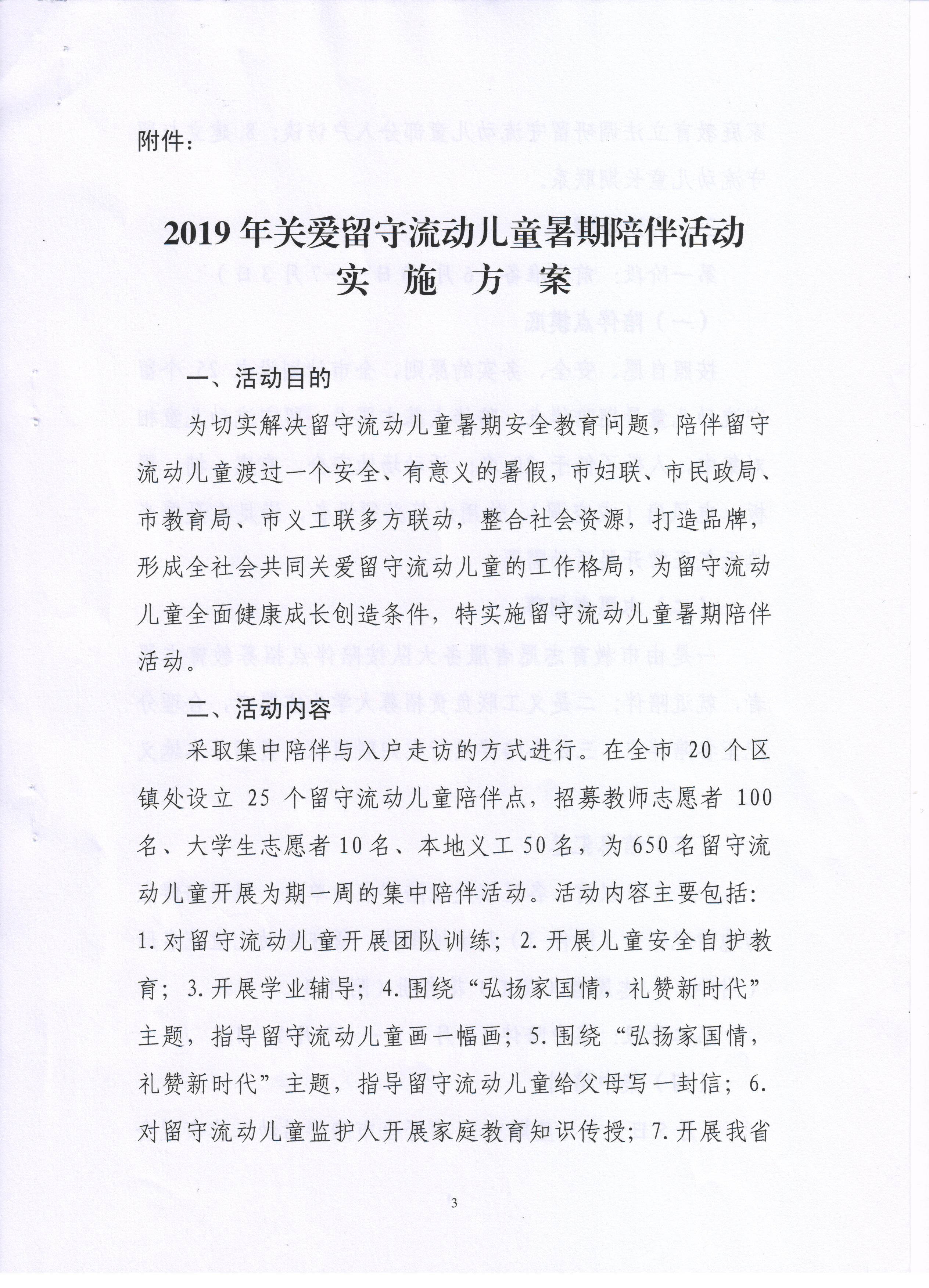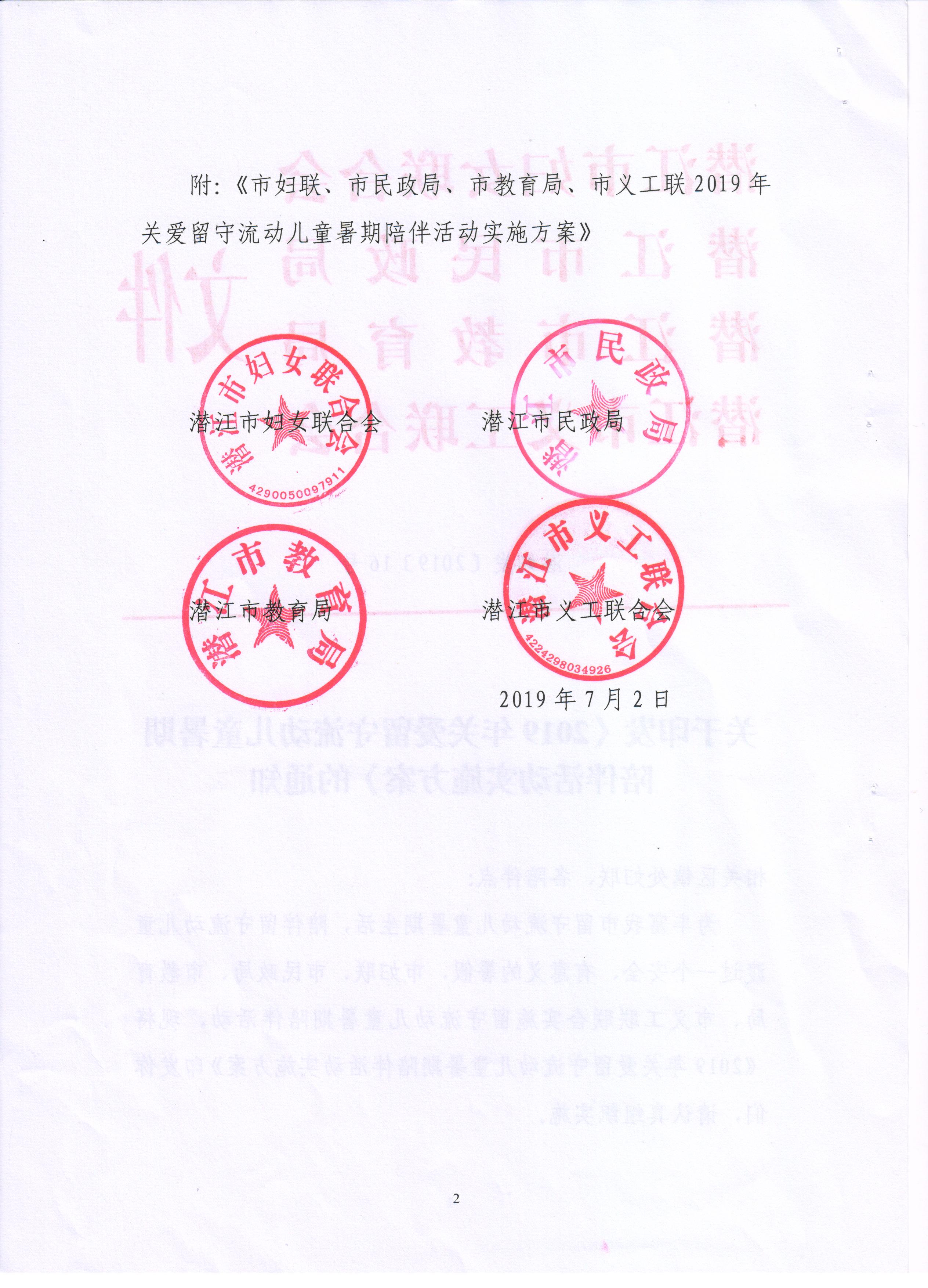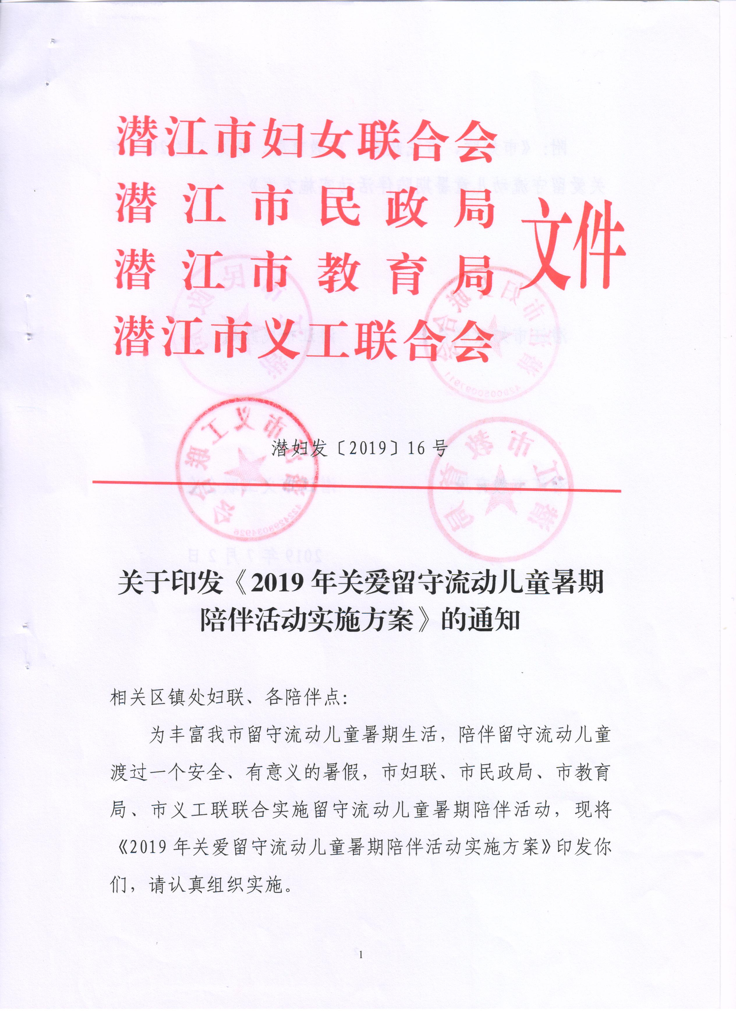 2019年关爱留守儿童暑期陪伴活动实施方案(潜江市妇联、潜江市民政局、潜江市教育局、潜江市义工联)