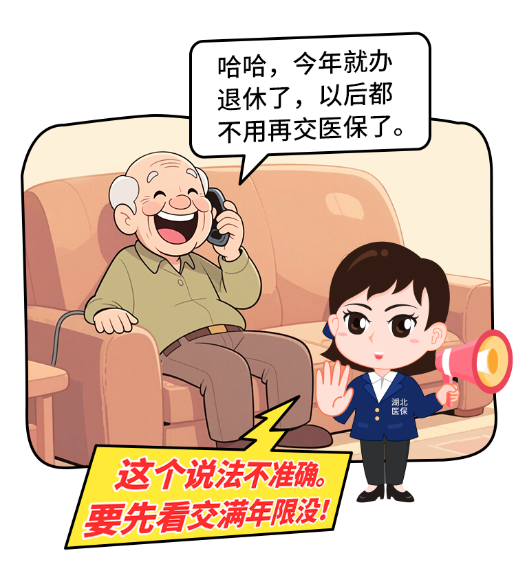 参加职工基本医疗保险的个人,达到法定退休年龄时,符合医保缴费年限要求办结医保在职转退休手续的,不再缴纳基本医疗保险费,按规定享受基本医疗保险待遇;如果未达到规定年限要求的,可以缴费至规定年限才能享受医保退休待遇。