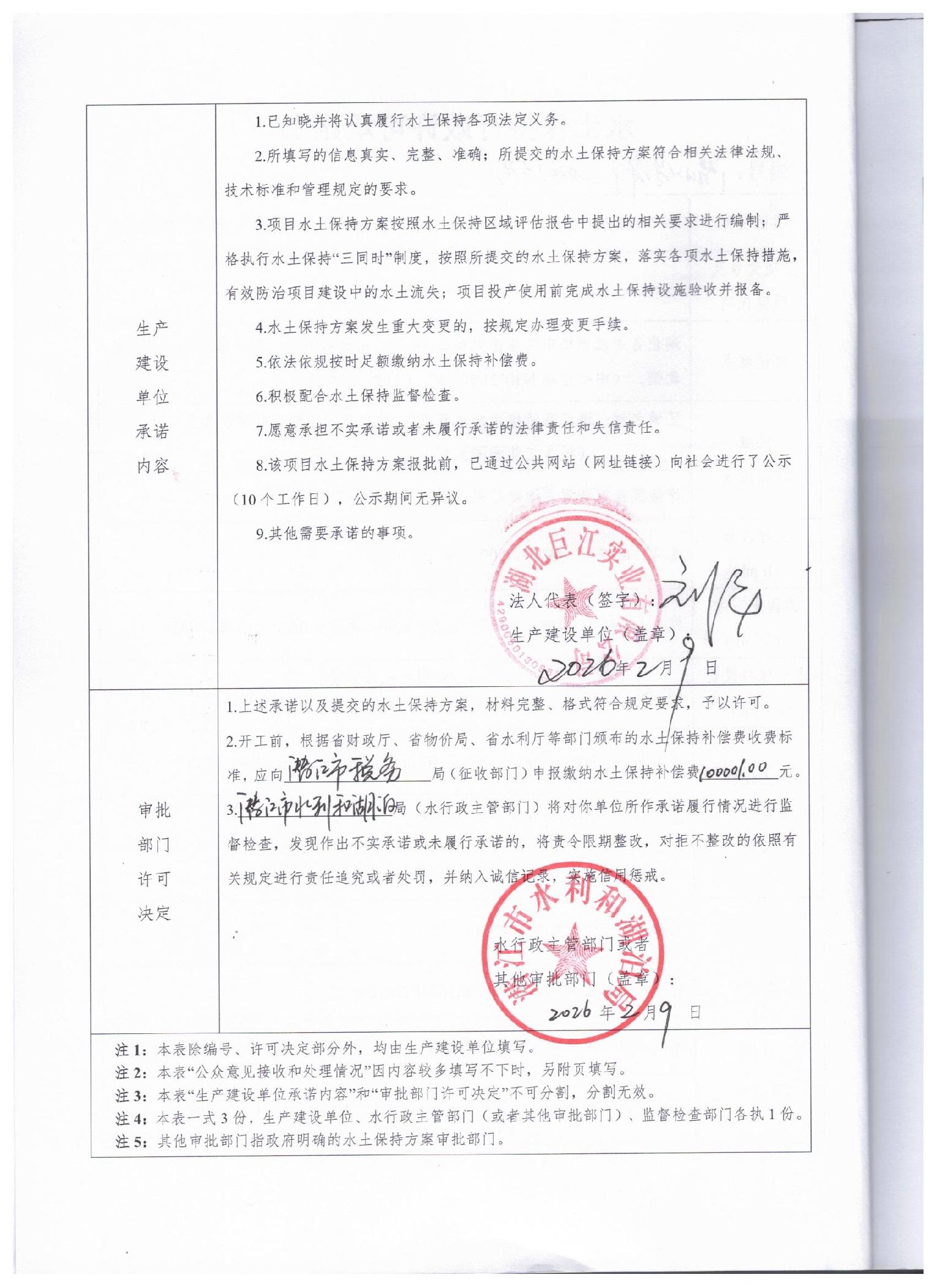 湖北巨江实业有限公司年产160万m2饰面板和200万m强化复合地板环保新型建材生产线建设项目水土保持方案许可