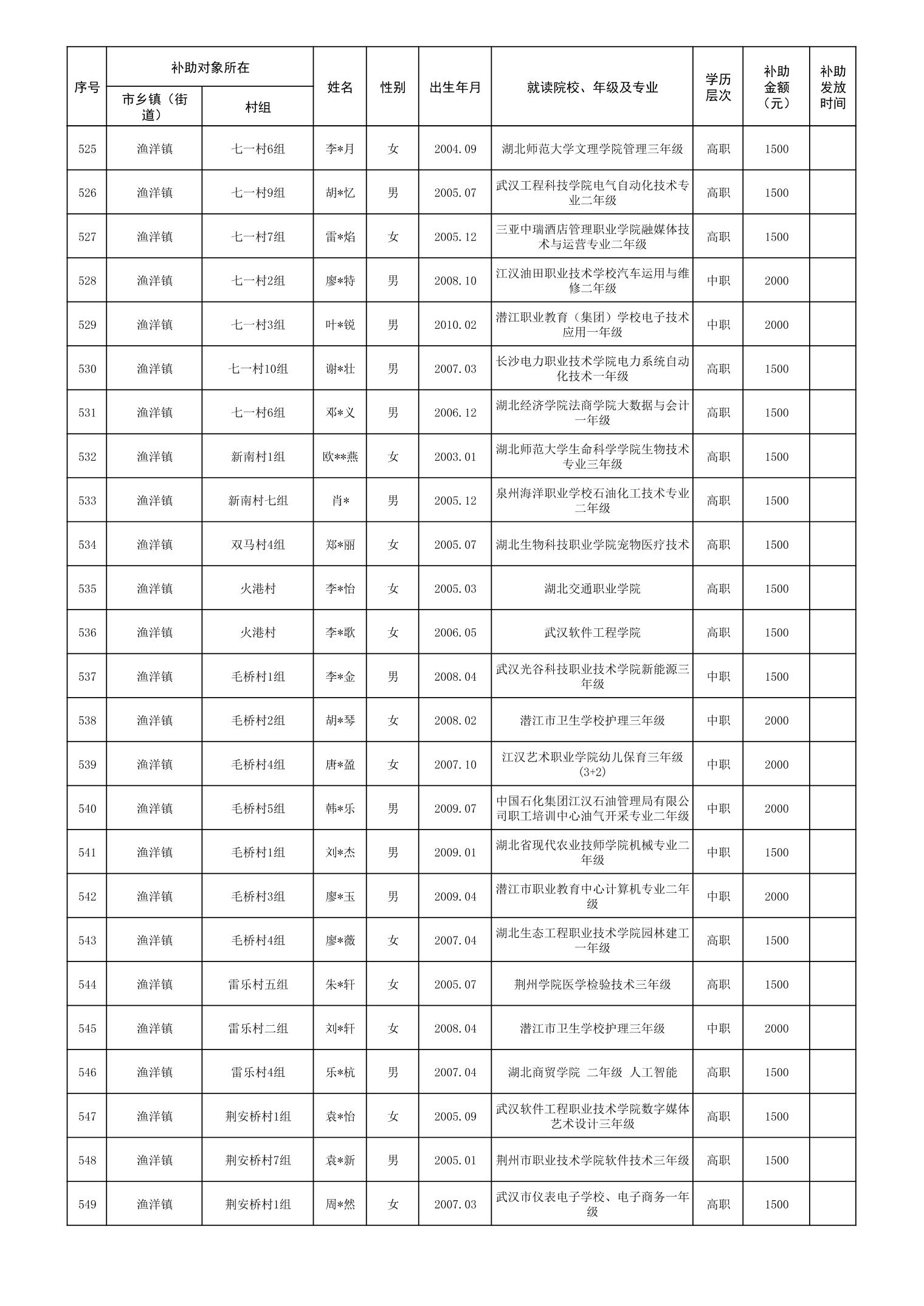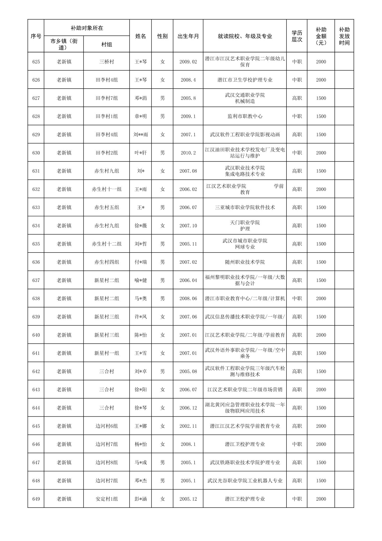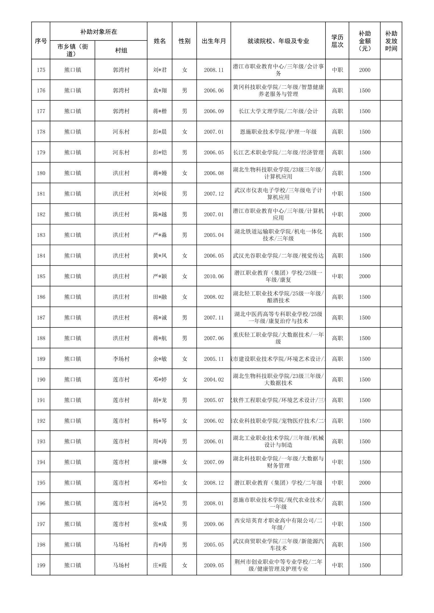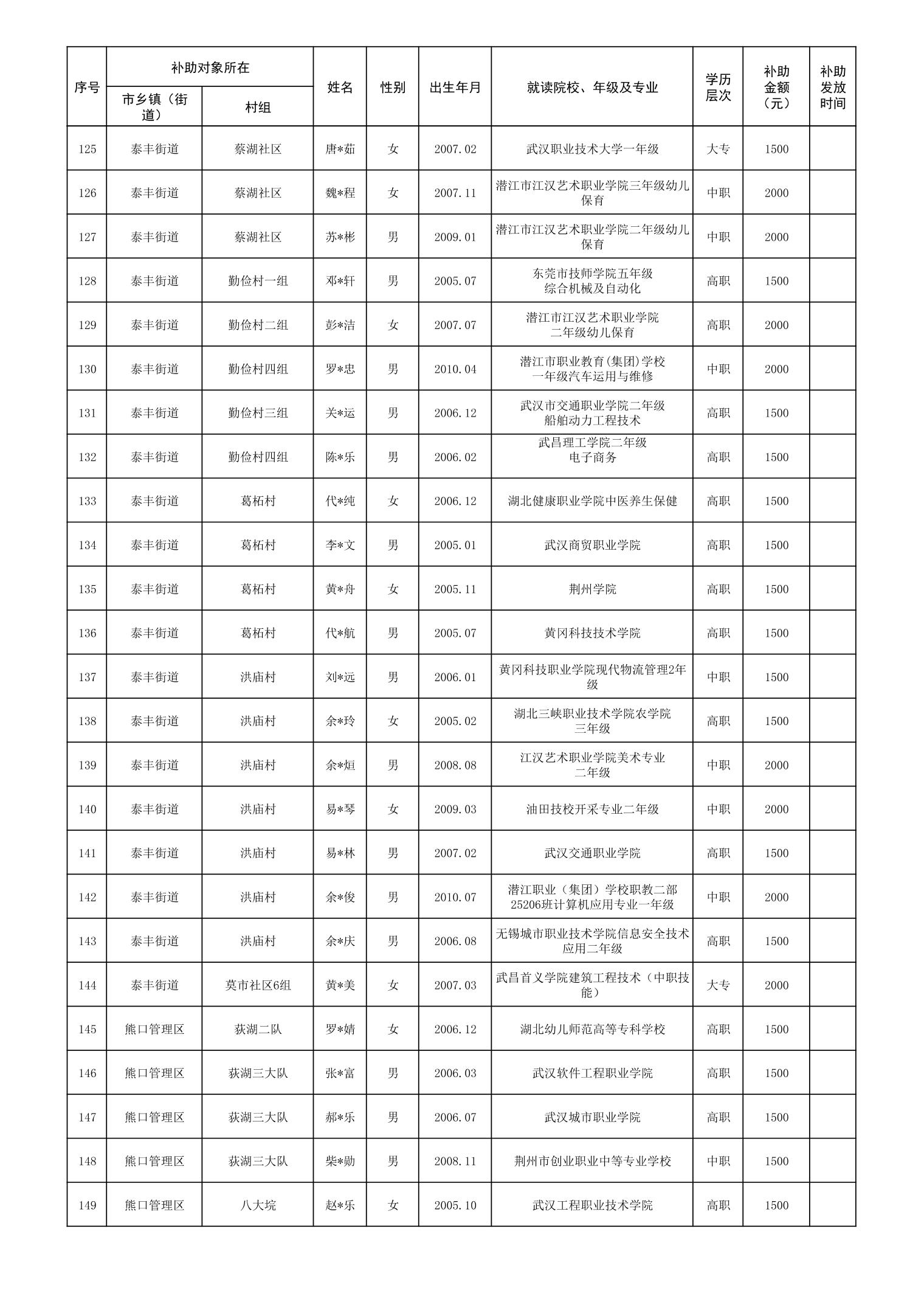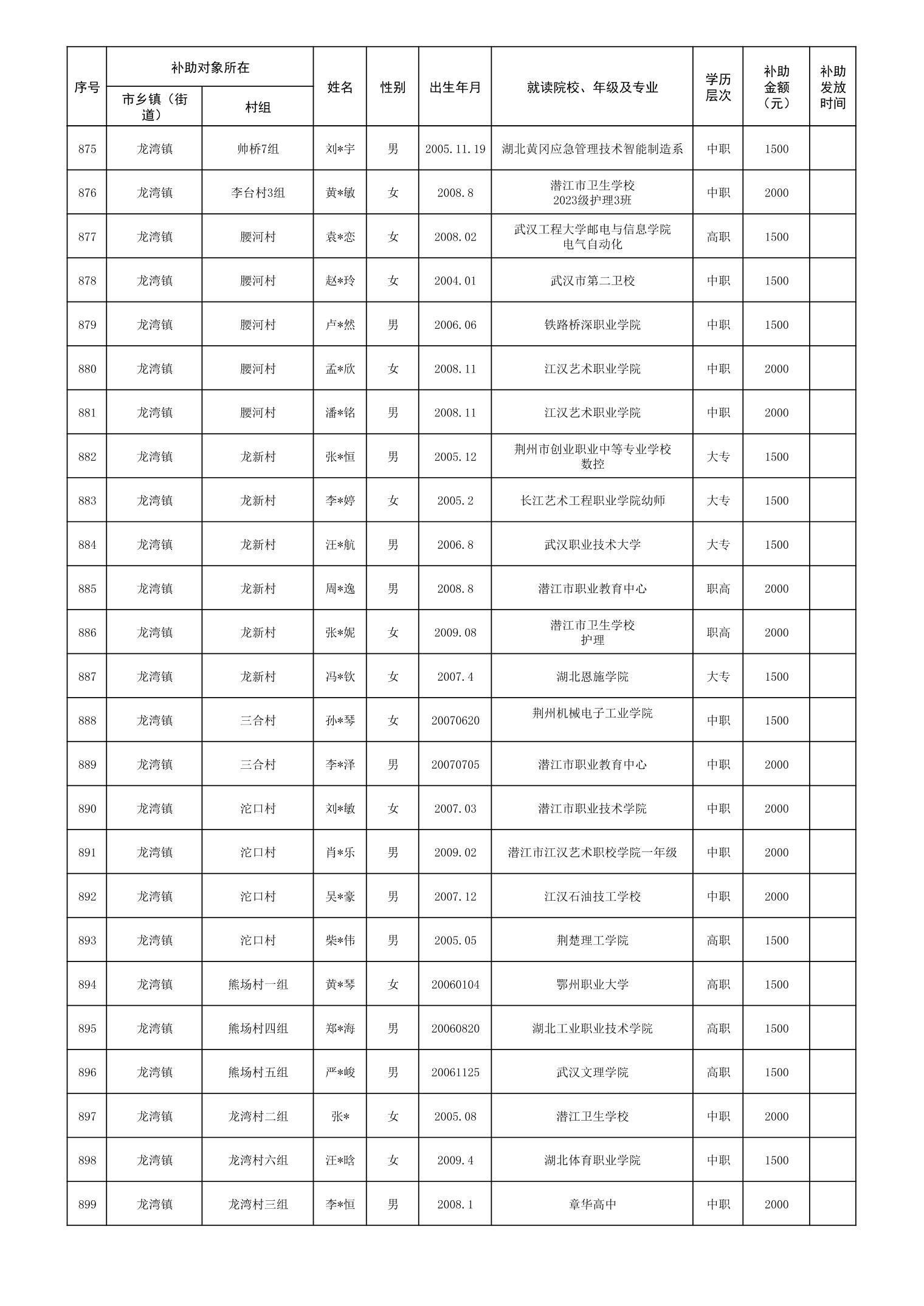 潜江市2025年秋季学期雨露计划职业教育扶贫助学补助兑现花名册台账