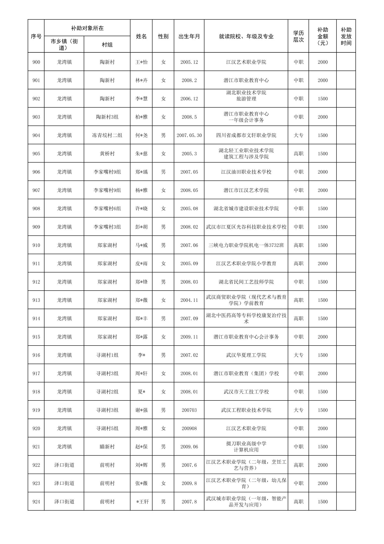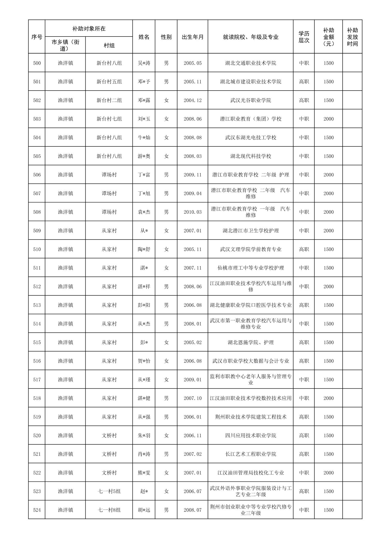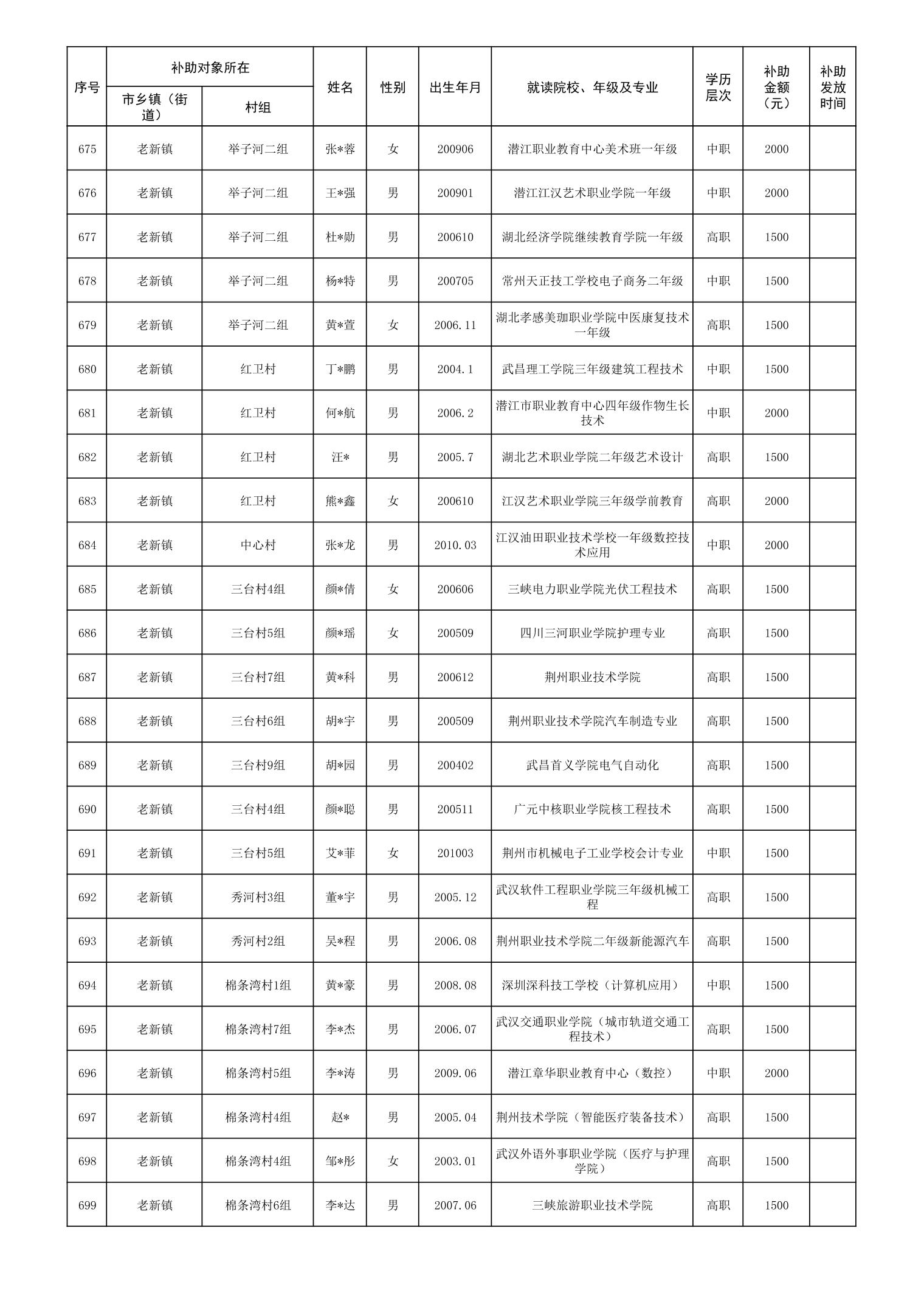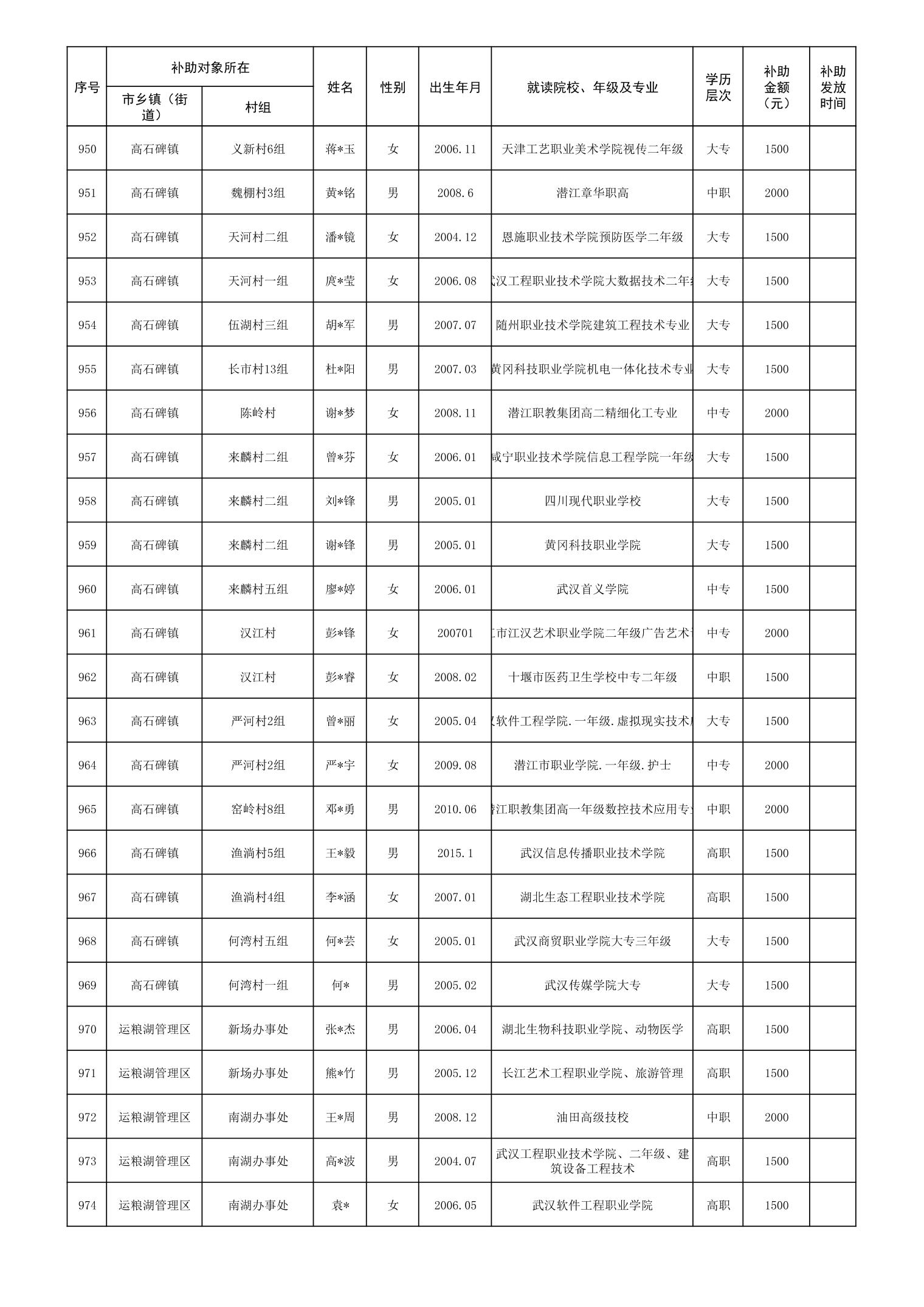 潜江市2025年秋季学期雨露计划职业教育扶贫助学补助兑现花名册台账