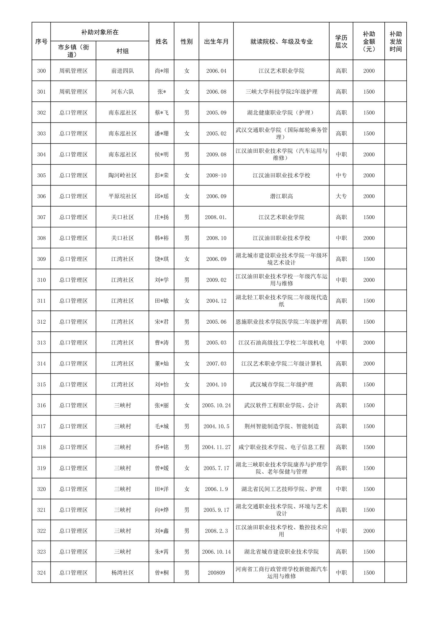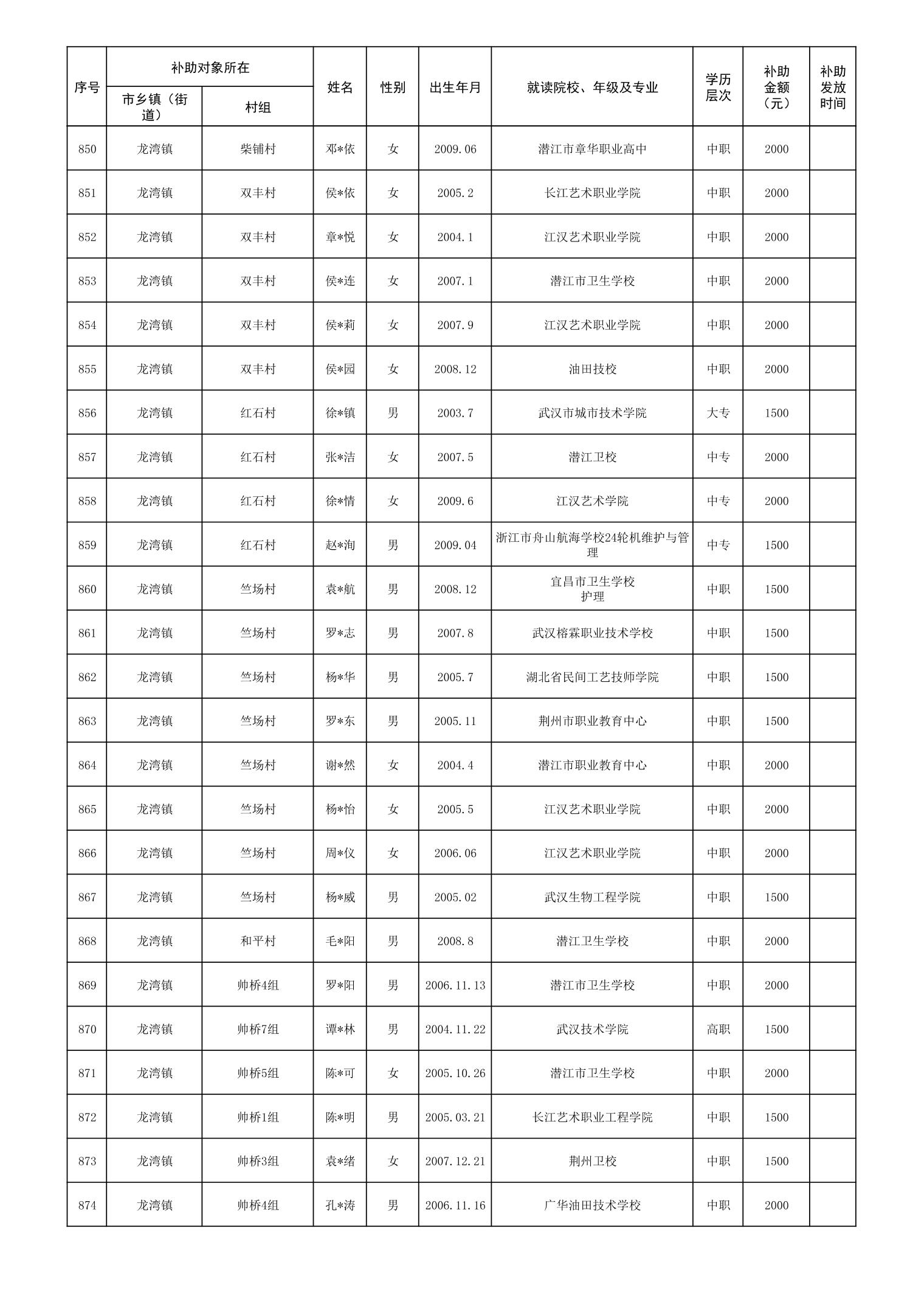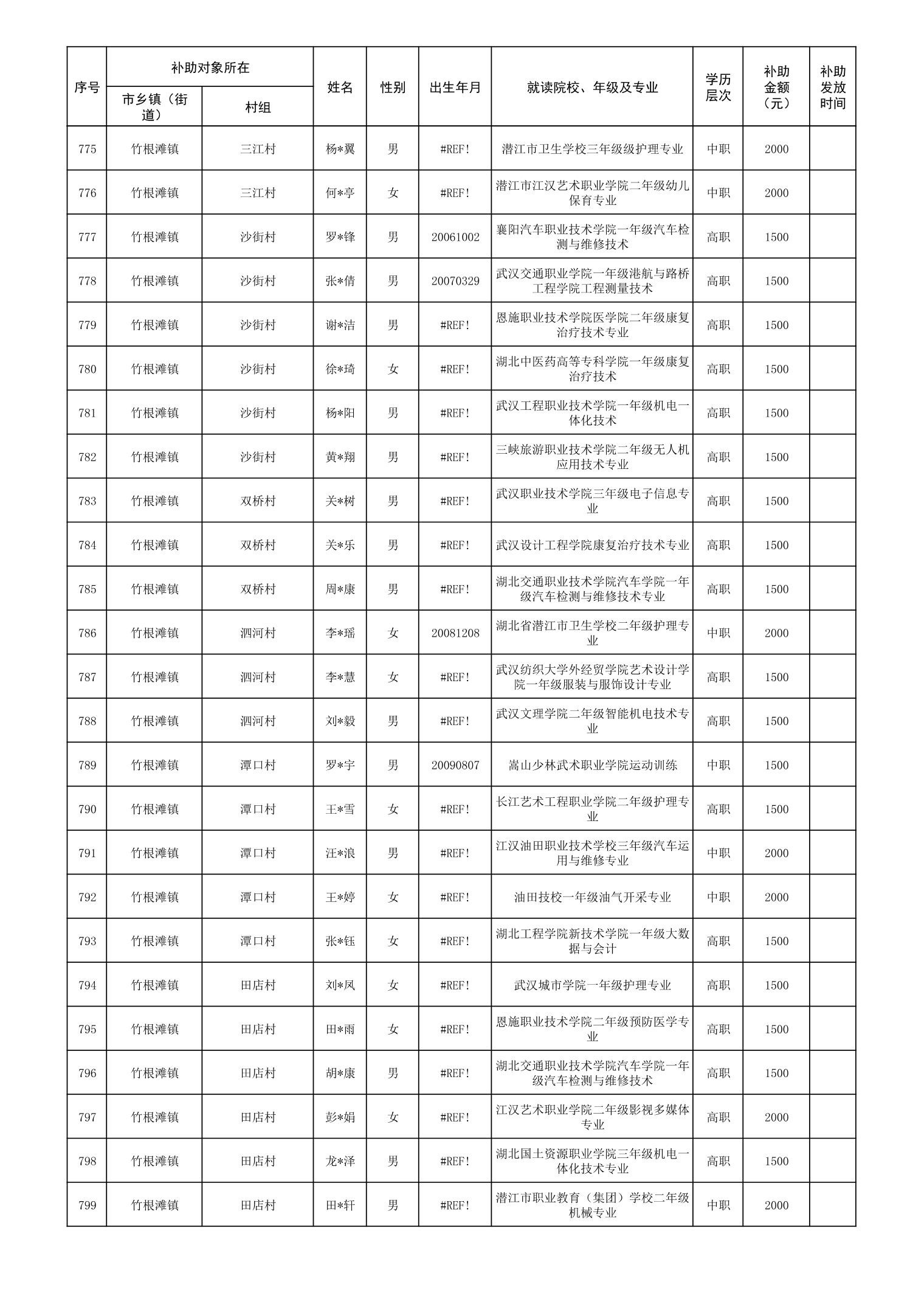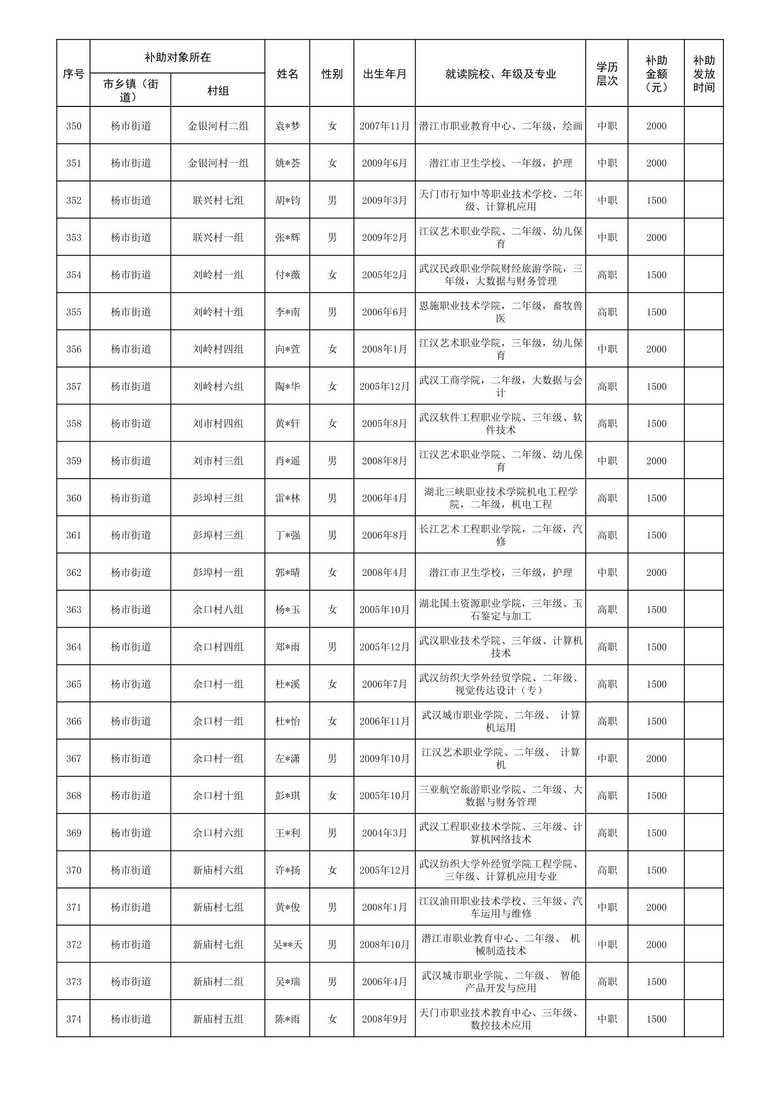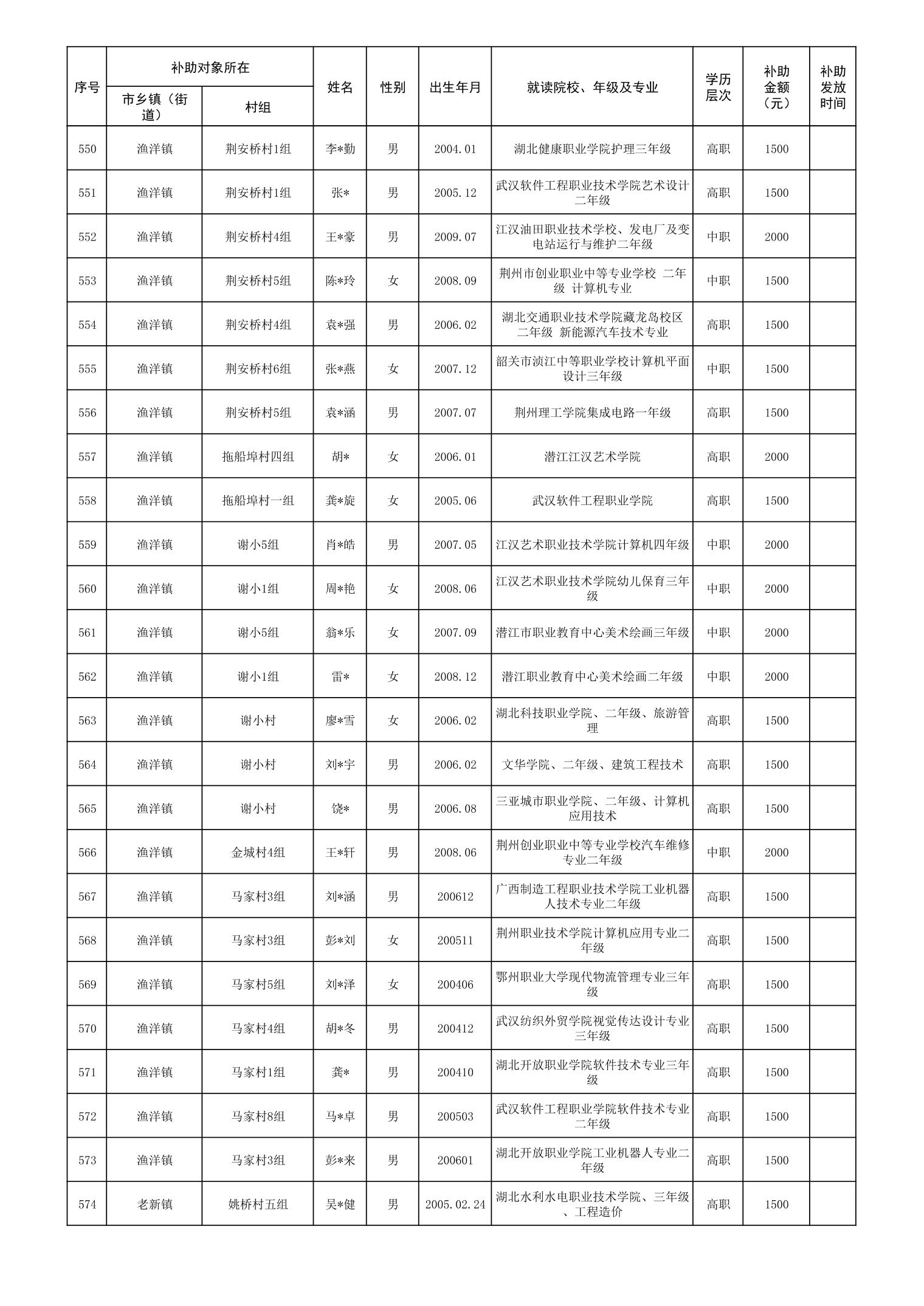潜江市2025年秋季学期雨露计划职业教育扶贫助学补助兑现花名册台账