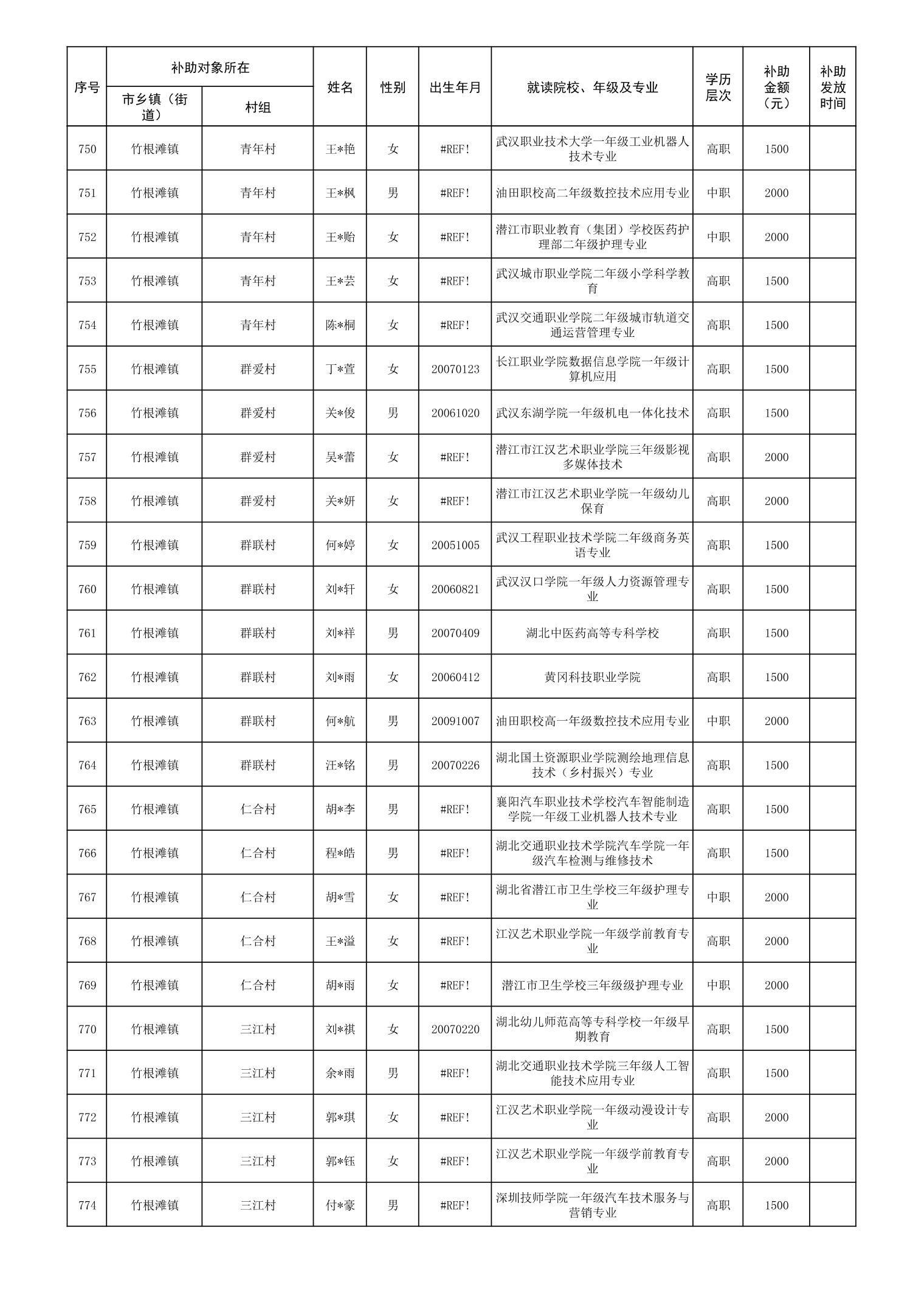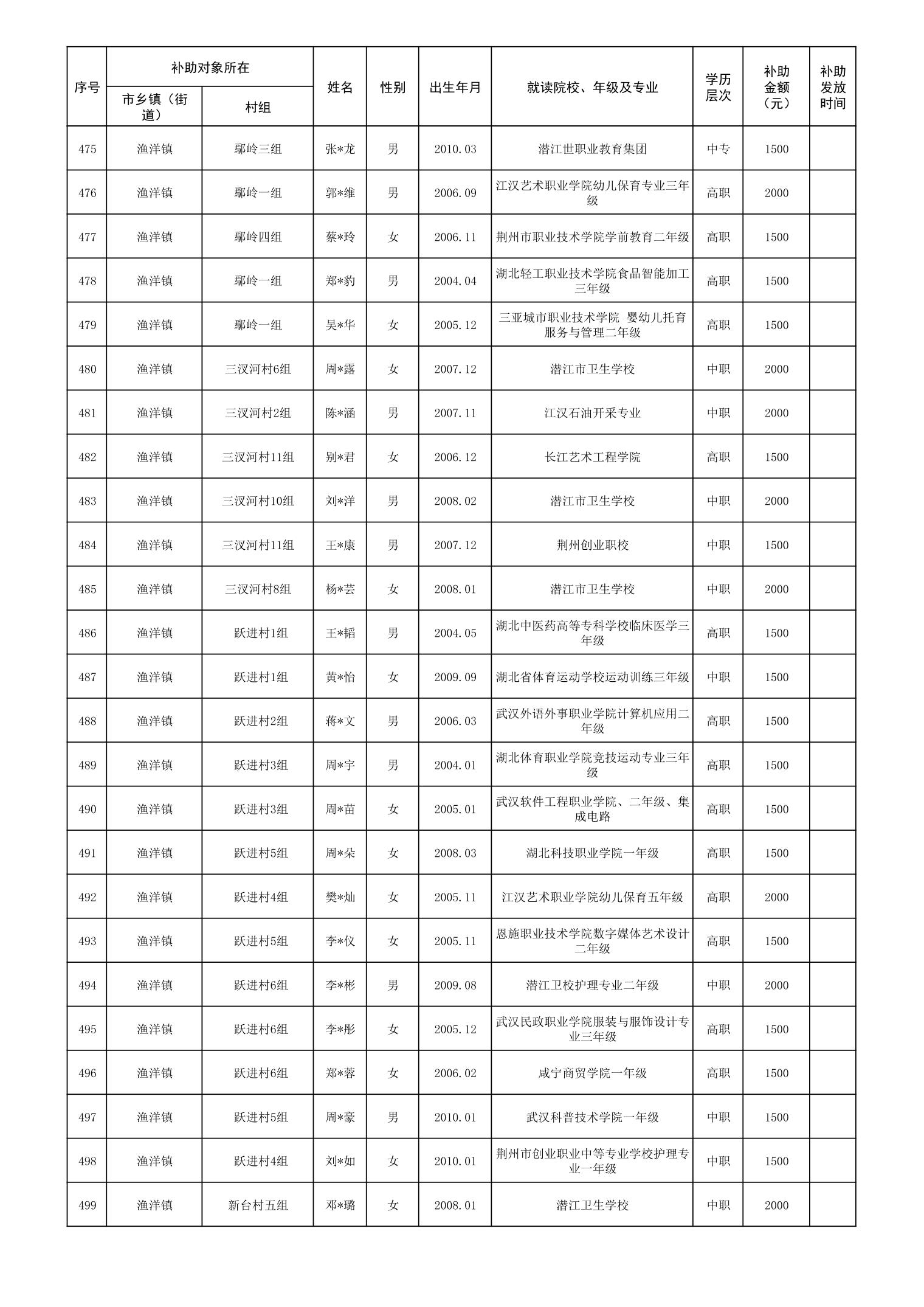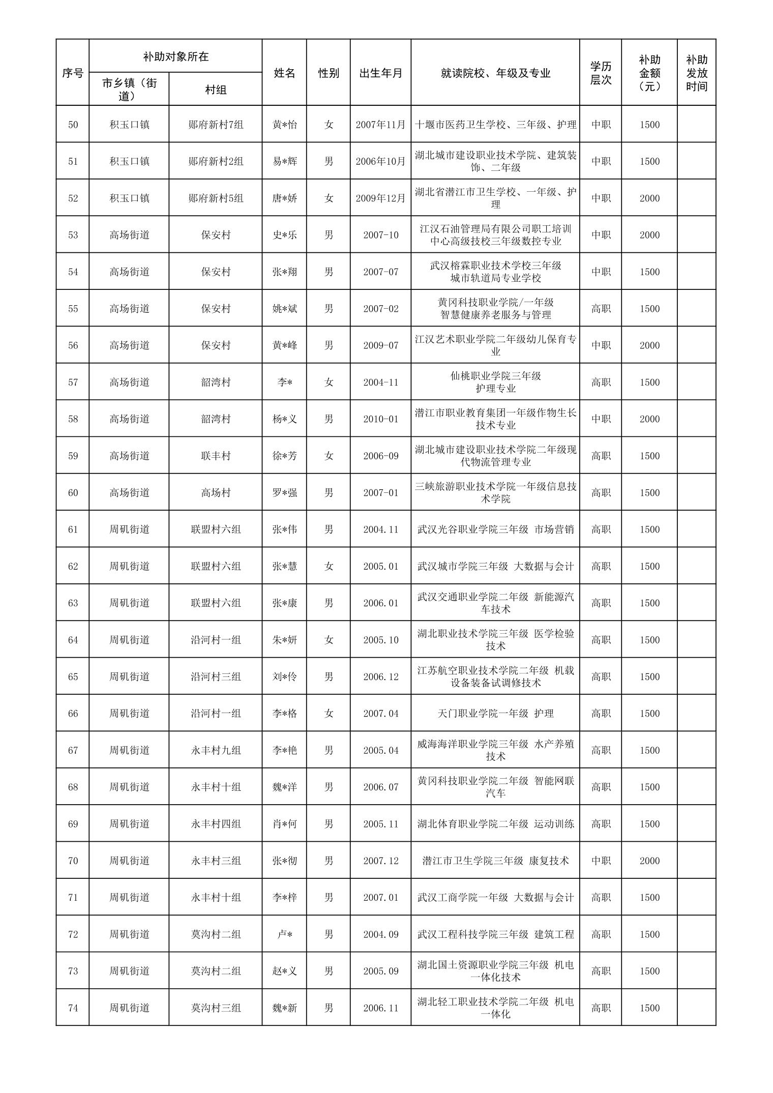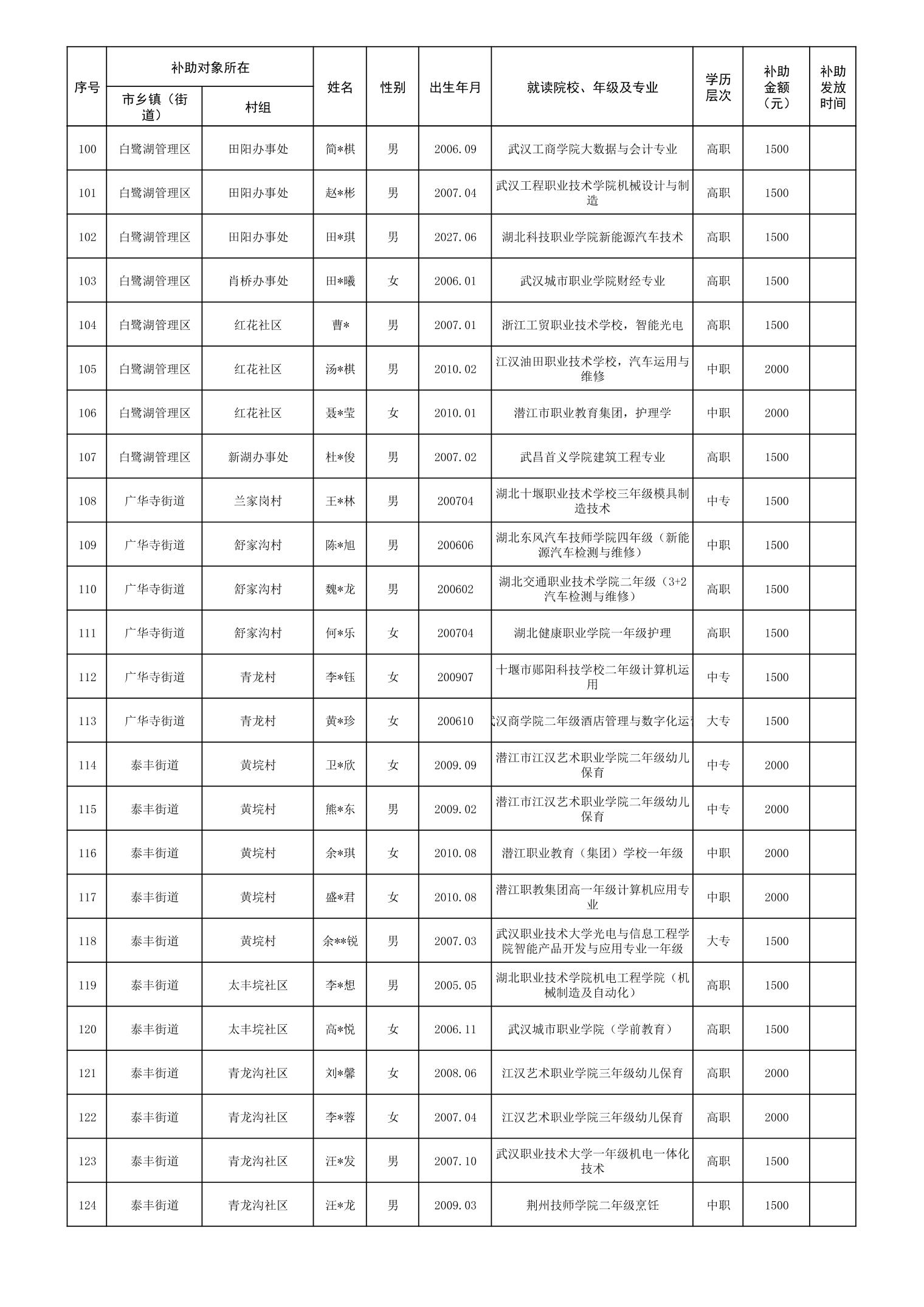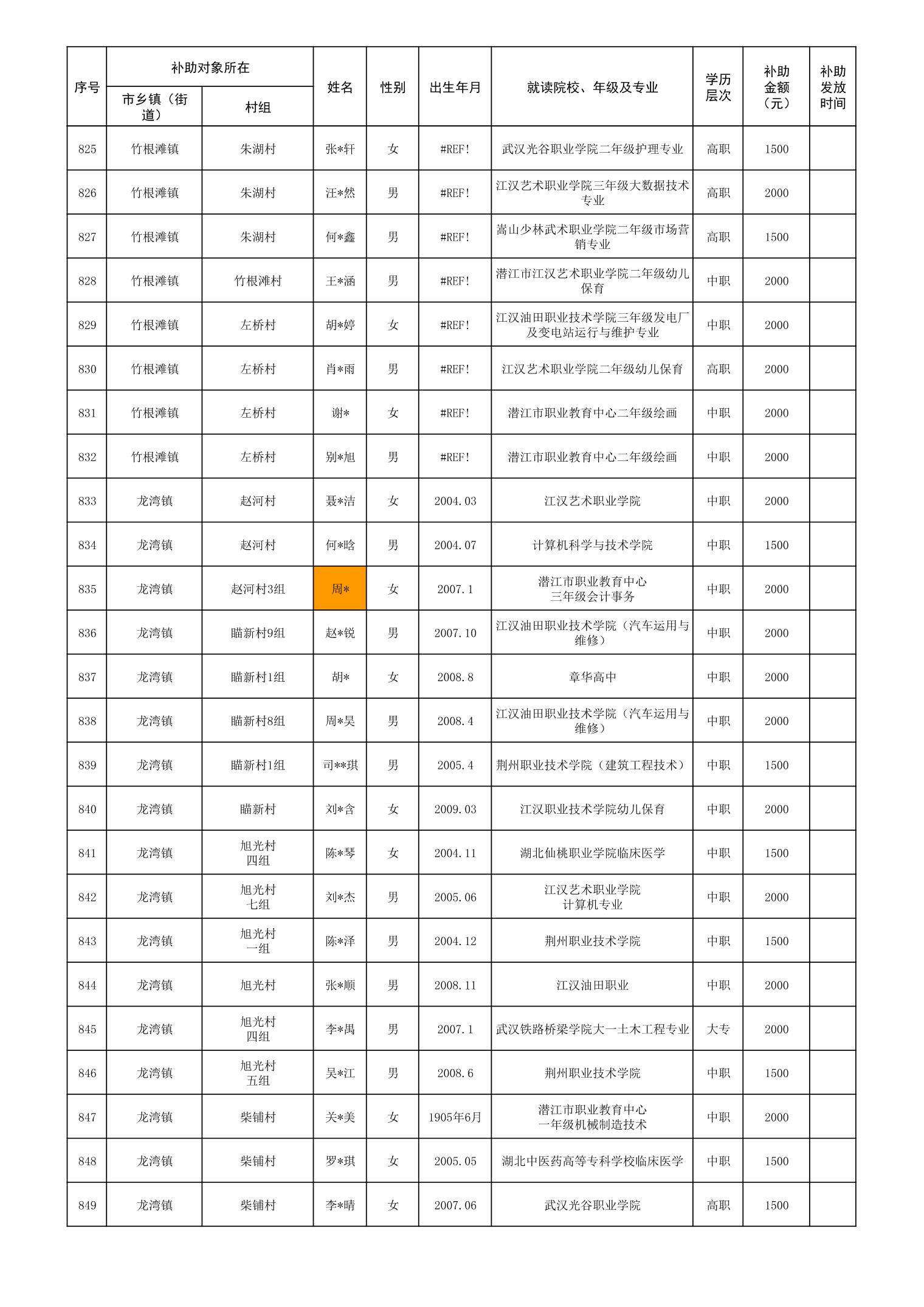 潜江市2025年秋季学期雨露计划职业教育扶贫助学补助兑现花名册台账