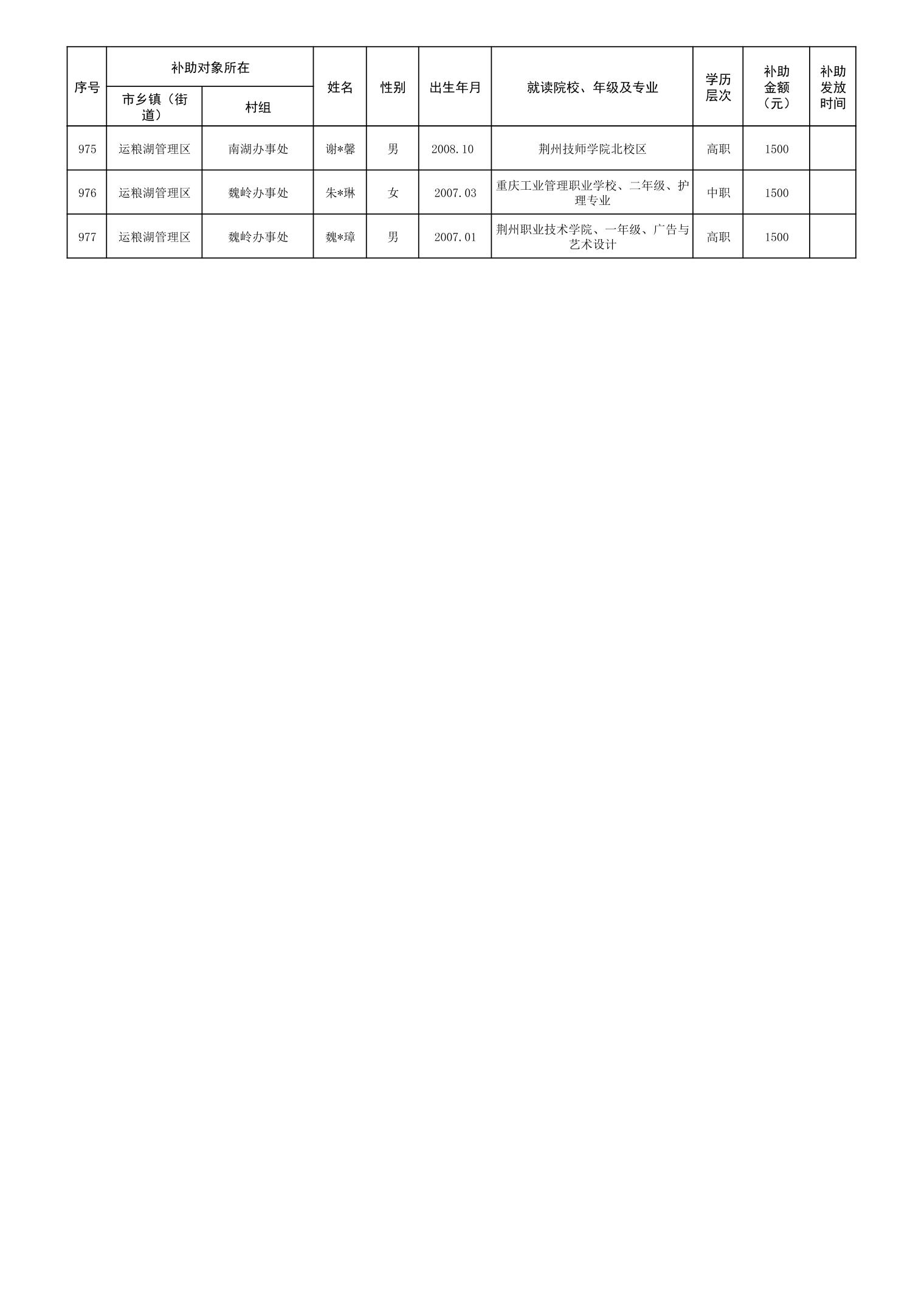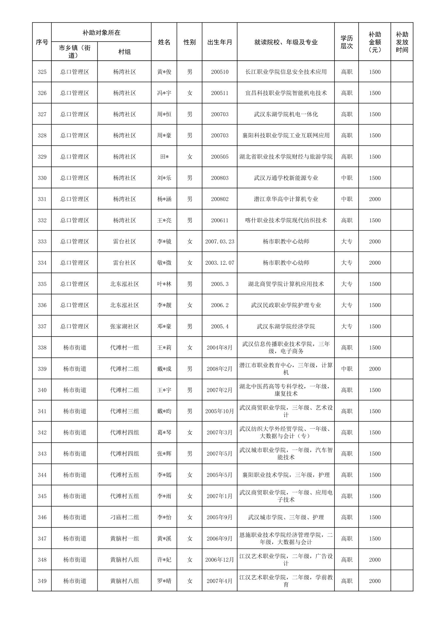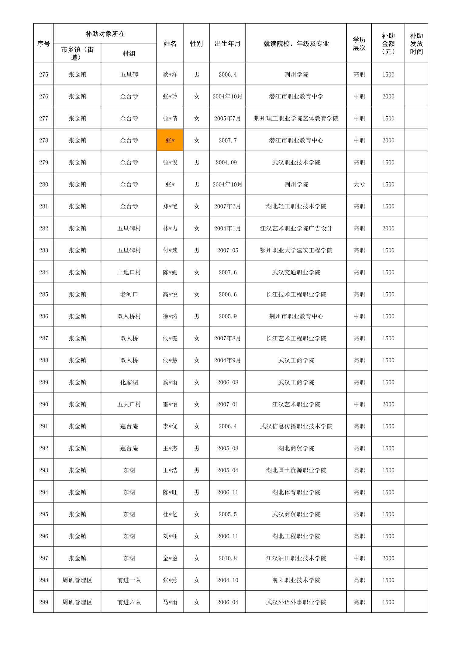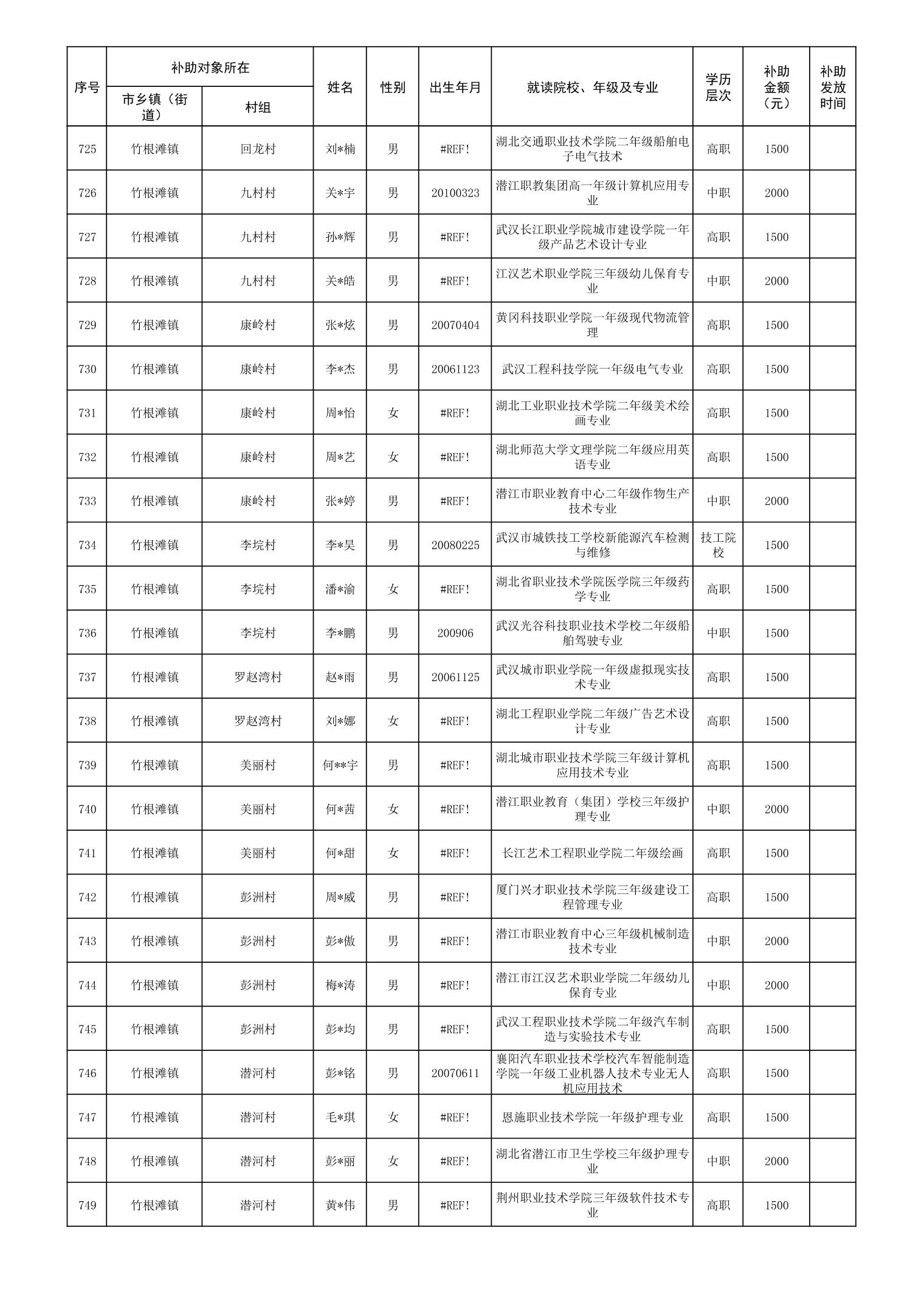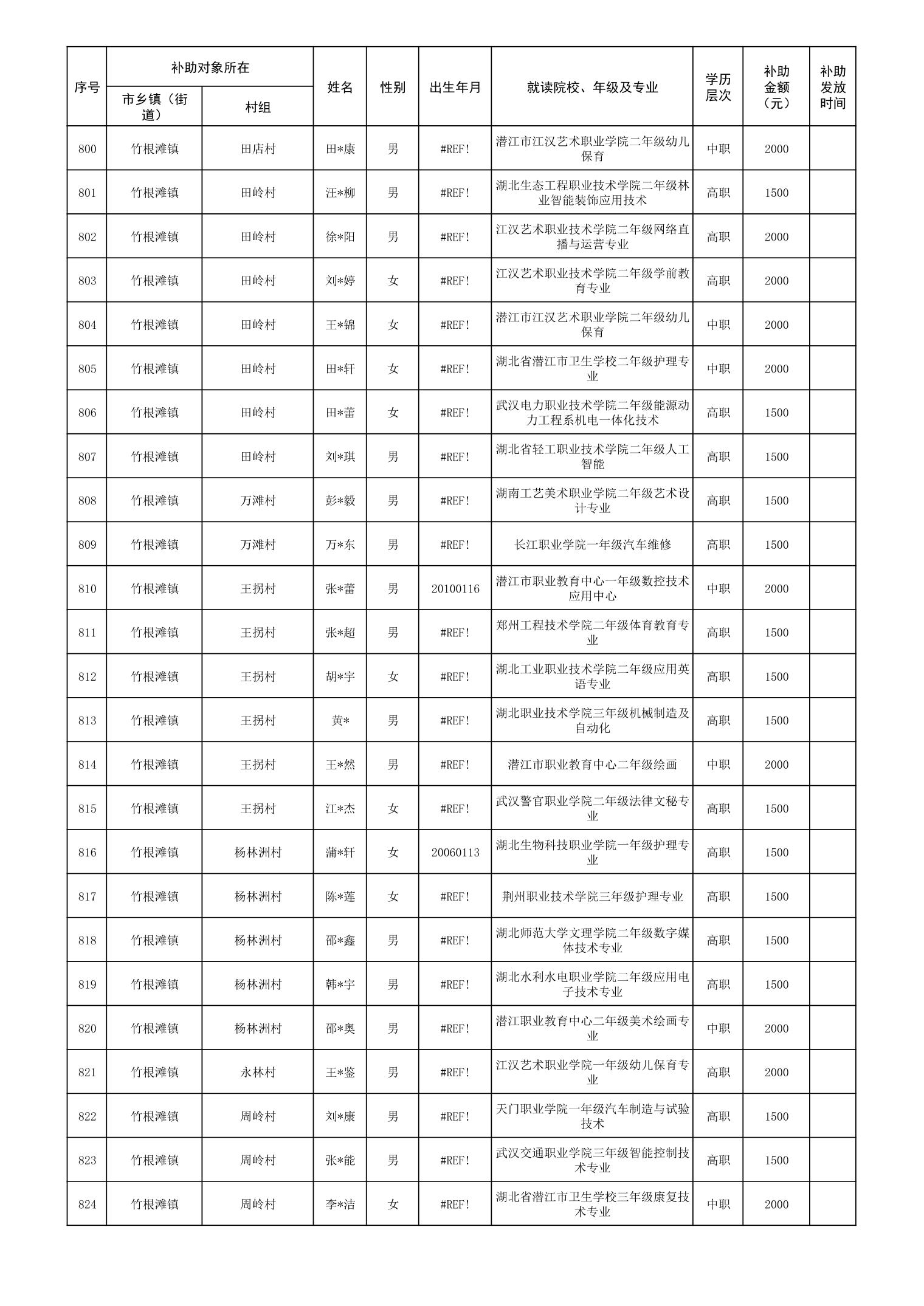 潜江市2025年秋季学期雨露计划职业教育扶贫助学补助兑现花名册台账