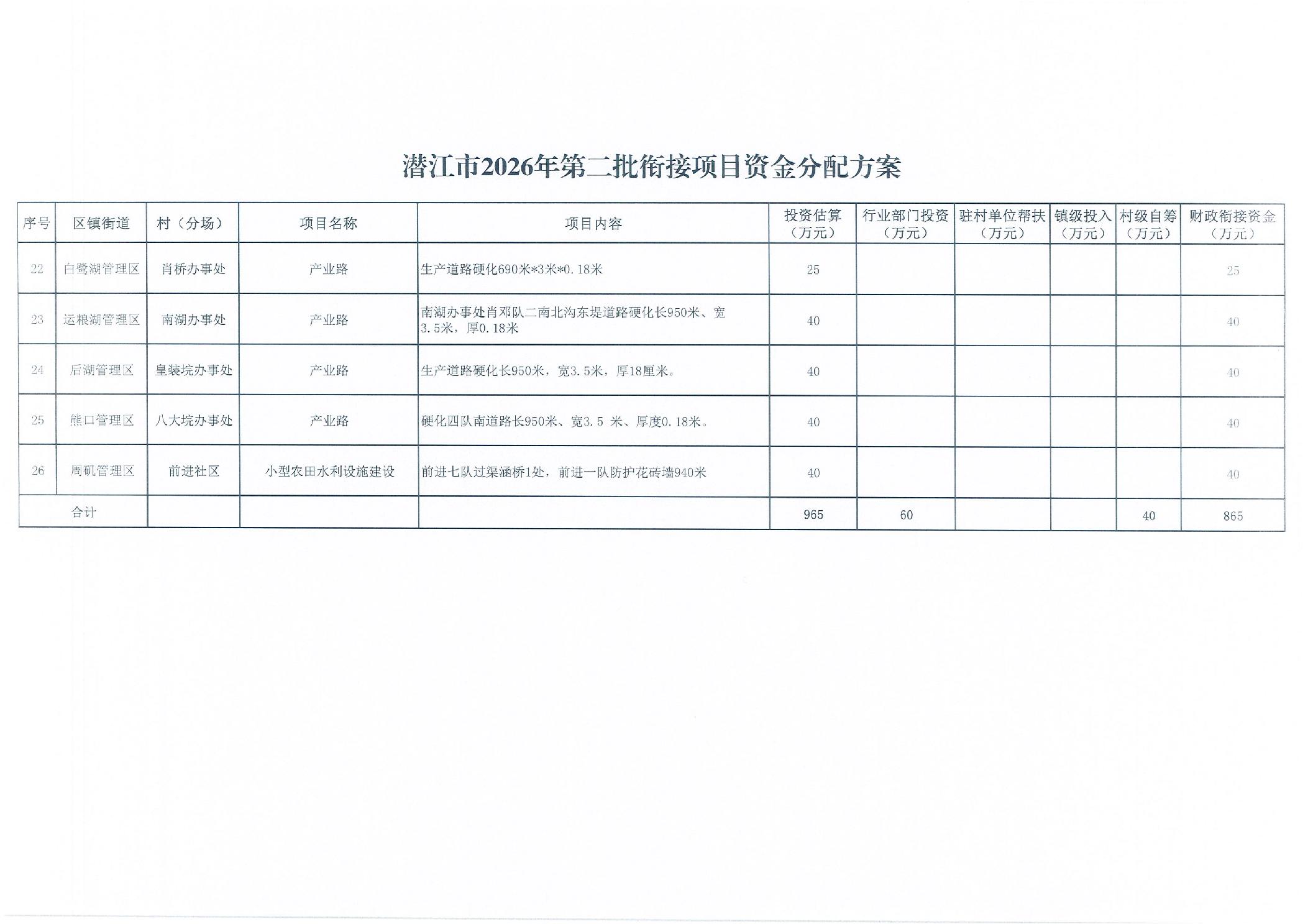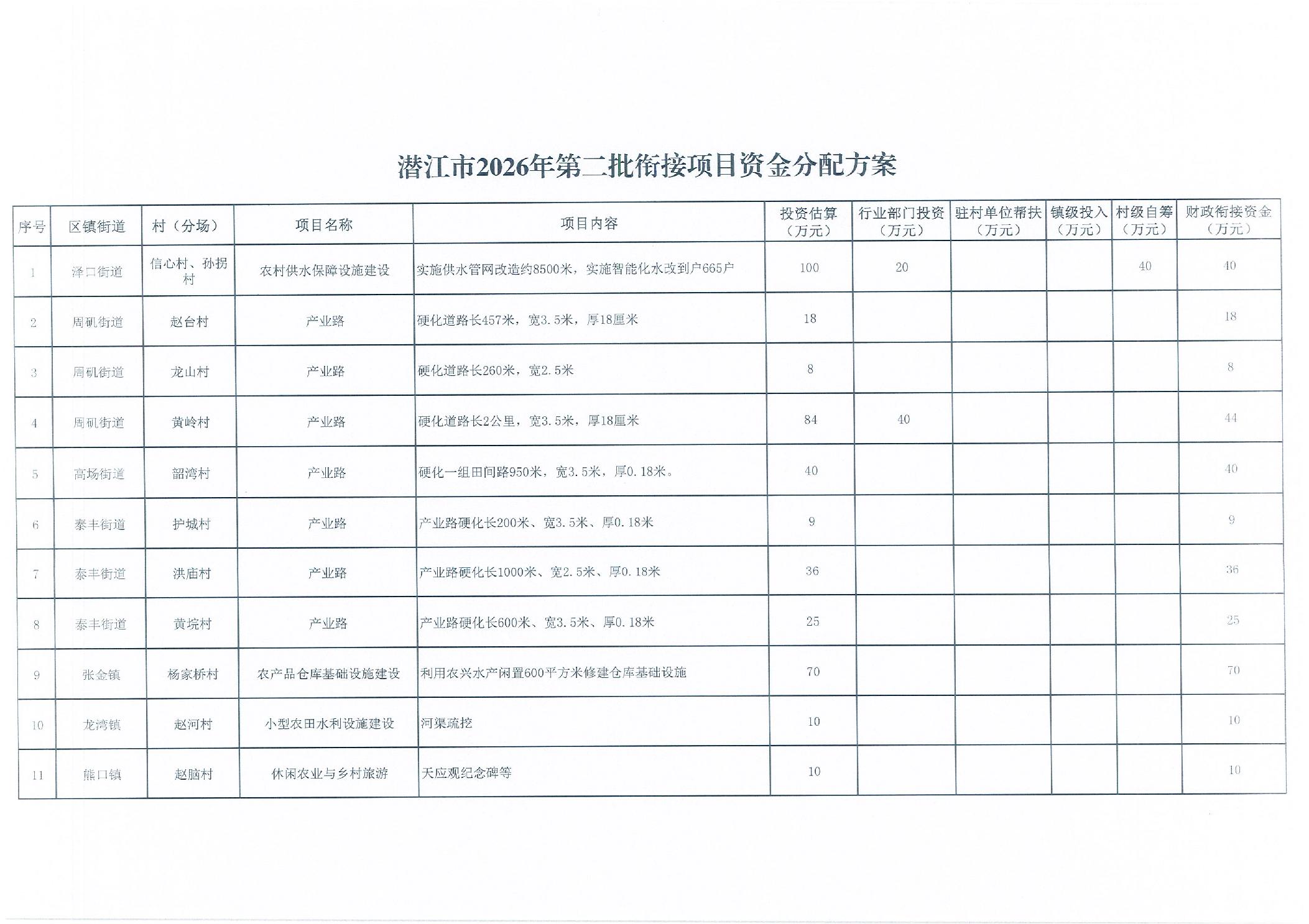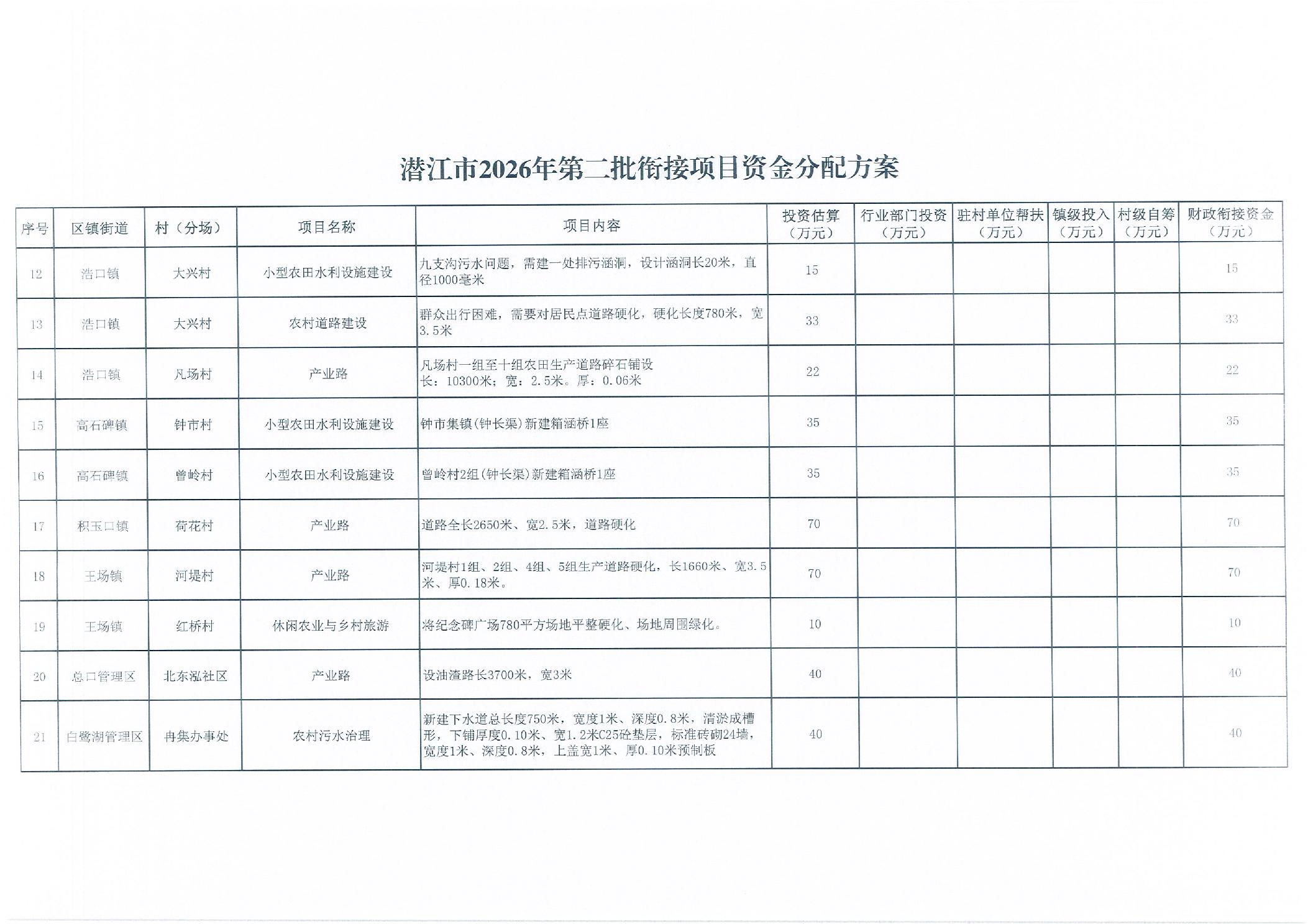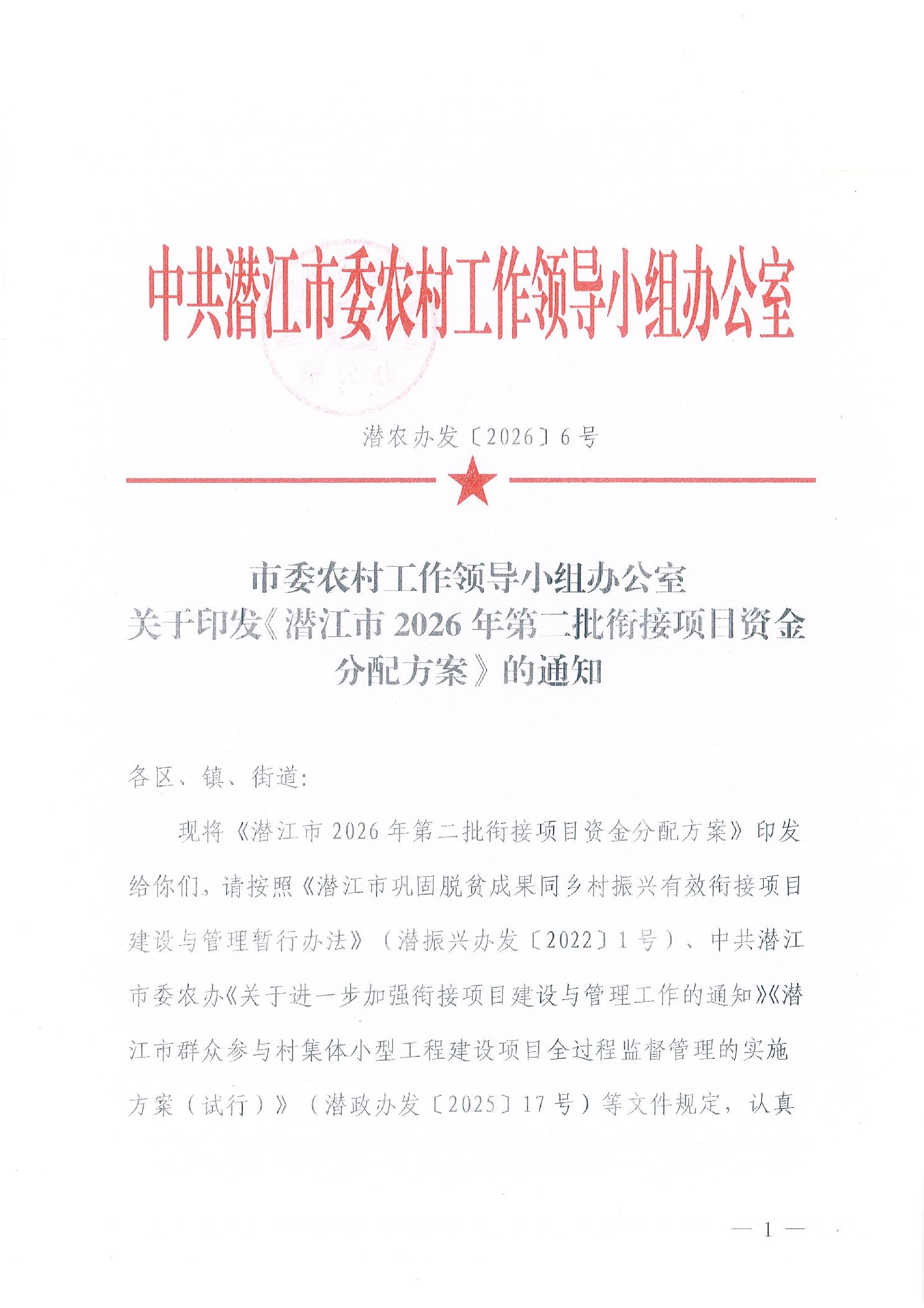 市委农村工作领导小组办公室关于印发《潜江市2026年第二批衔接项目资金分配方案》的通知