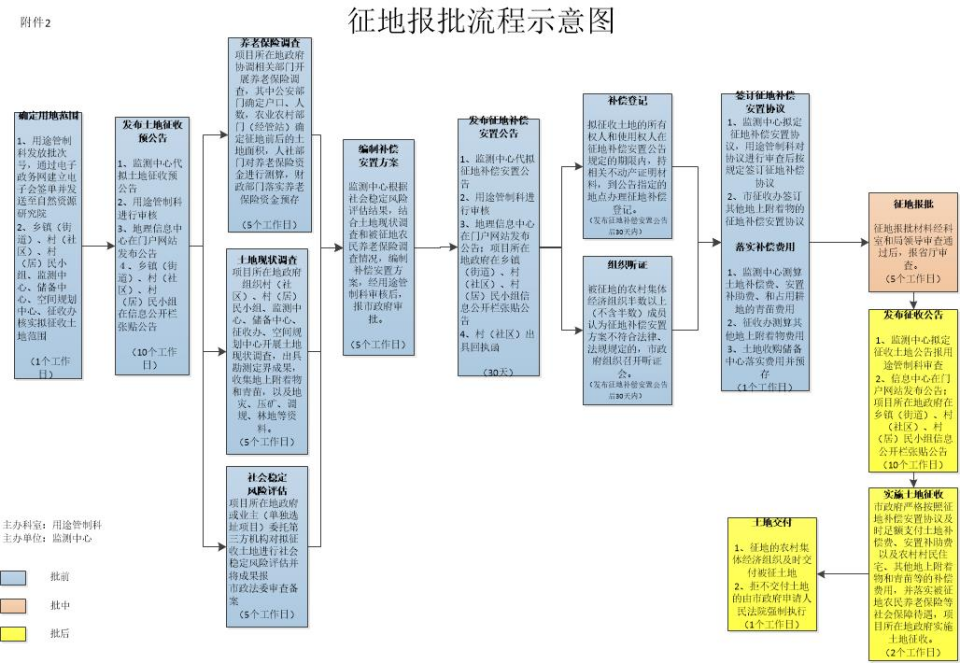 新修正的《土地管理法》第四十七条对土地征收程序进行了调整,将原来的“告知、确认、听证”三步程序调整为“调查、评估、公告、听证、登记、协议”六步程序。规定相关前期工作完成后,县级以上地方人民政府方可申请征收土地。