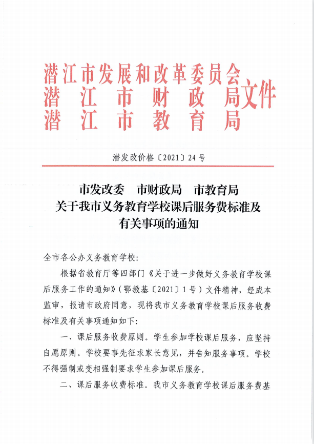 名 称: 关于我市义务教育学校课后服务费标准及有关事项的通知
