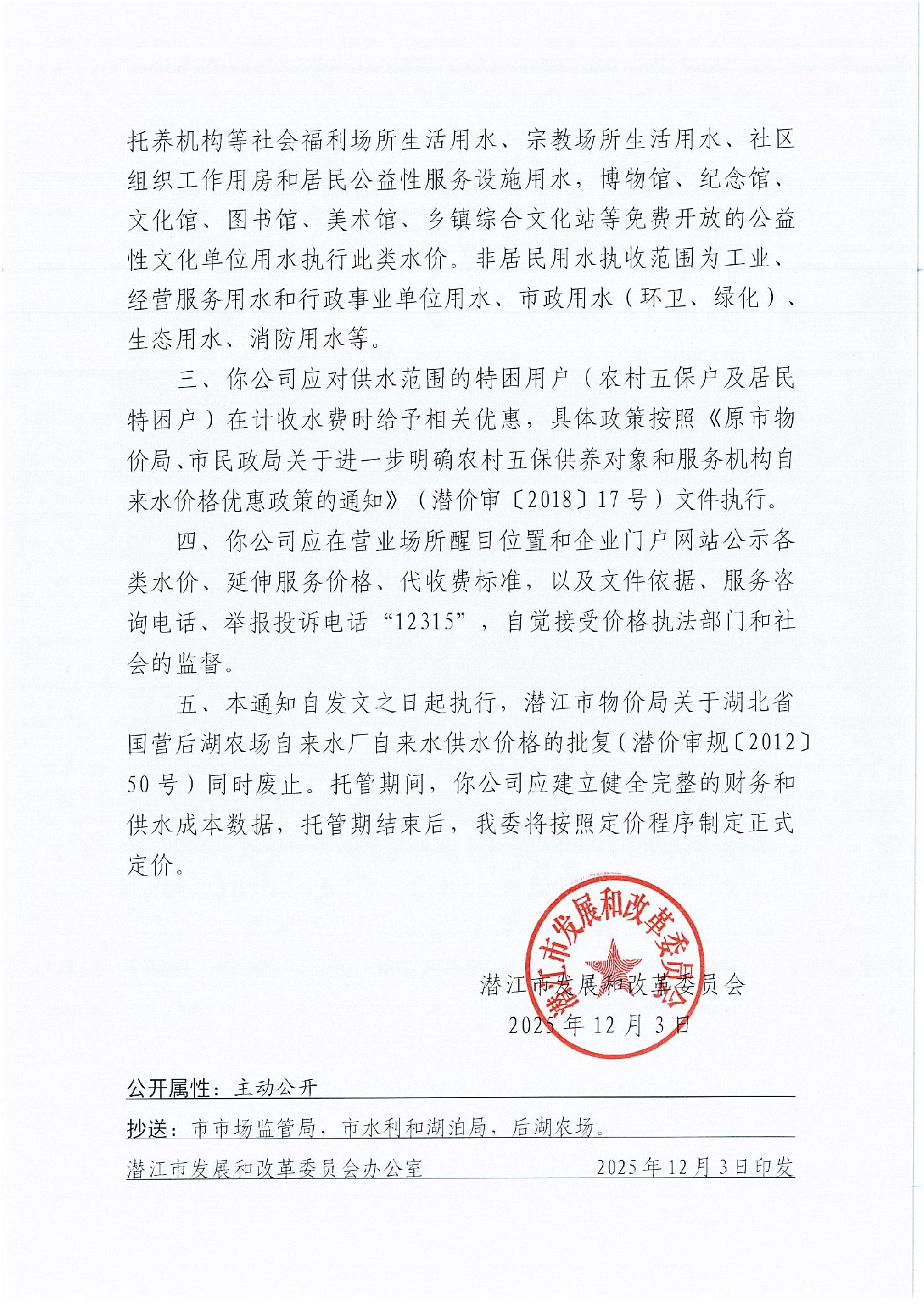 名 称: 关于汇腾供水有限公司后湖分公司供水价格及有关事项的通知