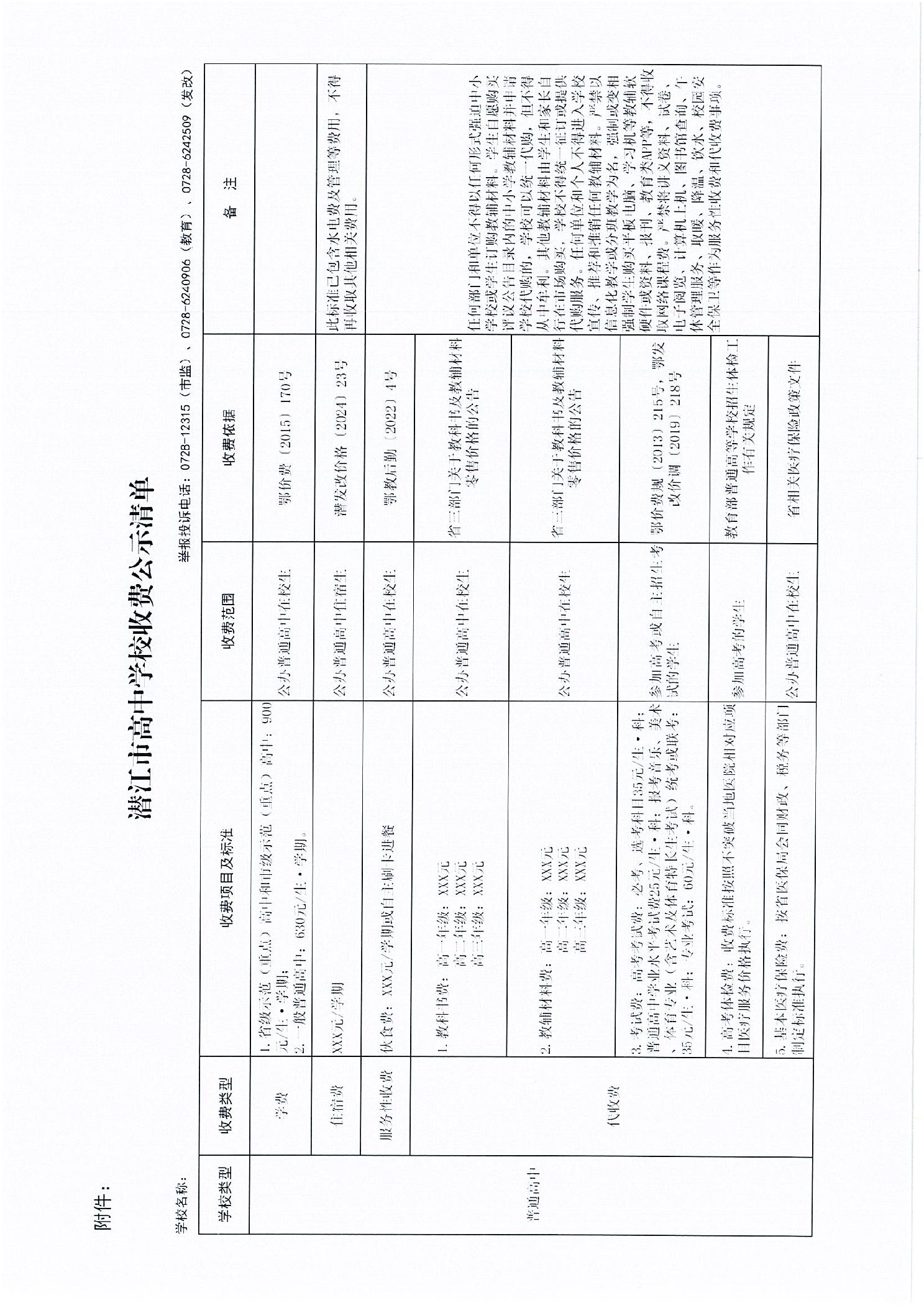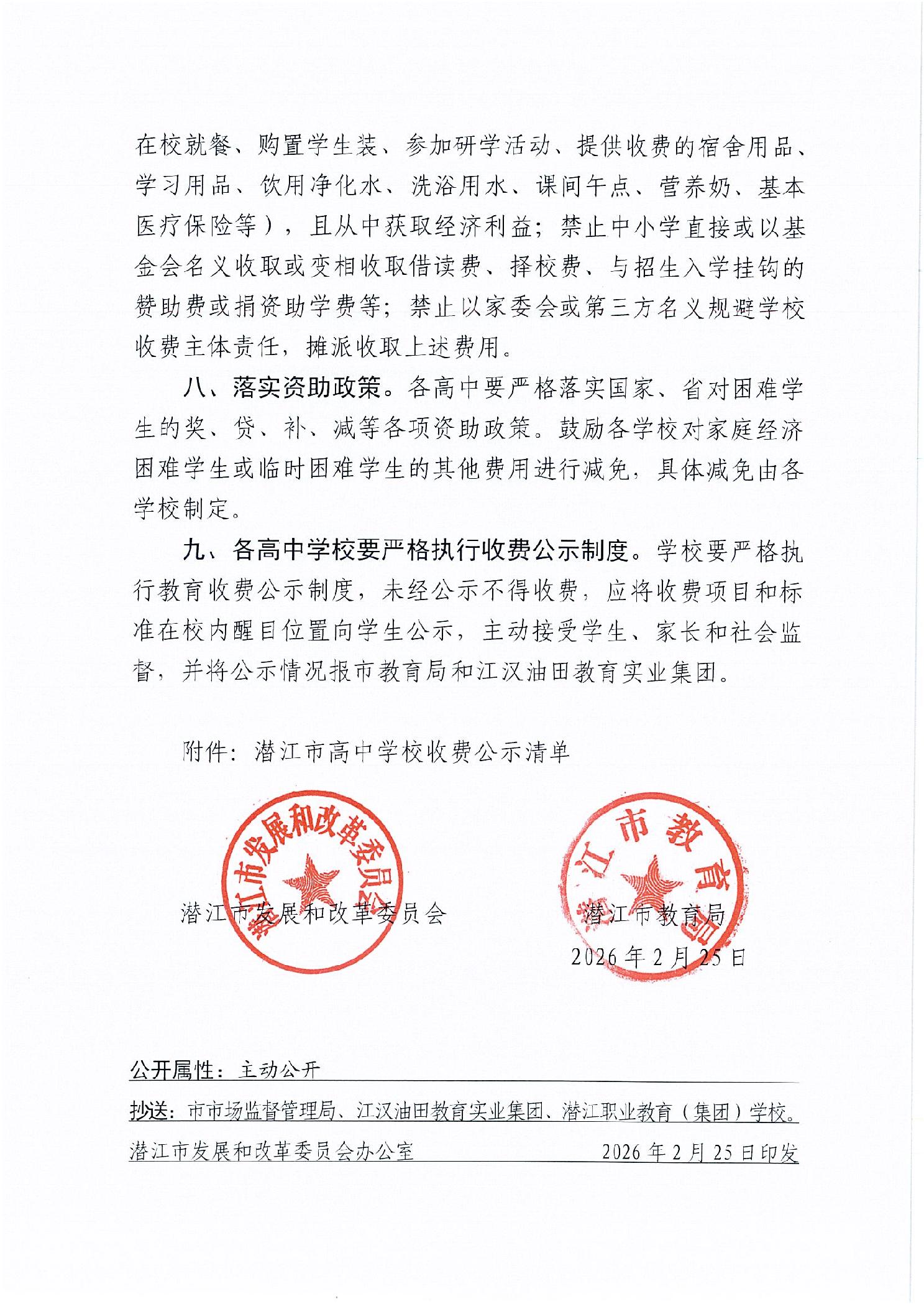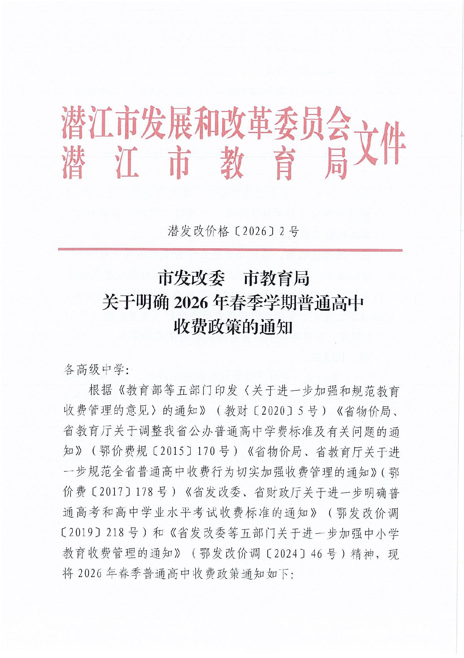 名 称: 关于明确2026年春季普通高中收费政策的通知