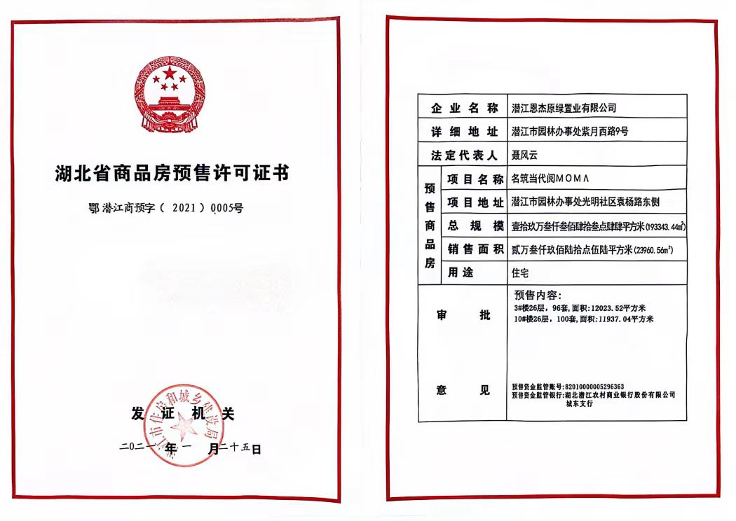 名筑当代阅MOMΛ 3#、10#预售许可证
