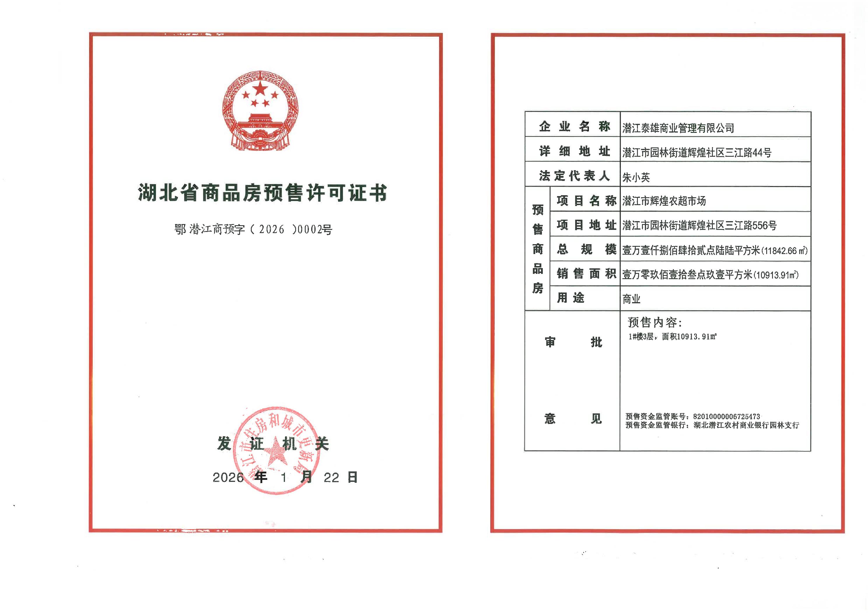 辉煌农超市场1#预售许可证