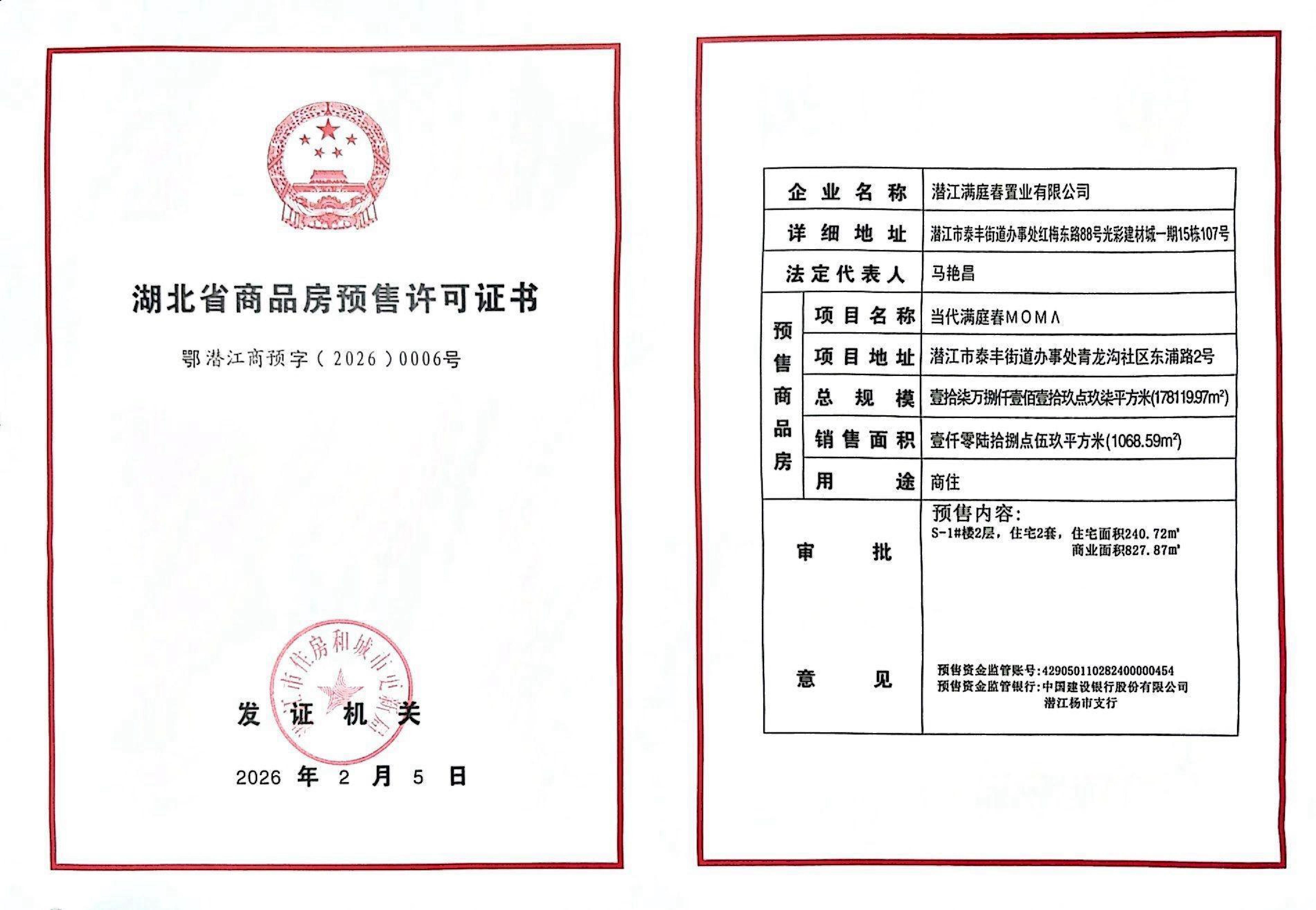 名 称: 满庭春S-1预售许可证