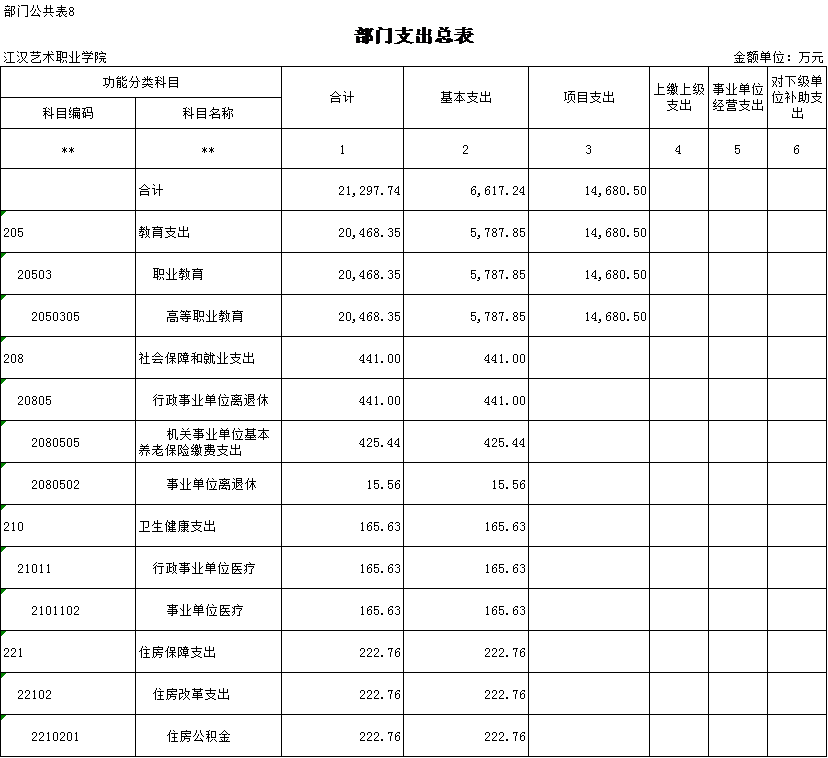 江汉艺术职业学院 | 金额单位:万元 | ||||||