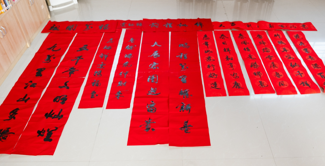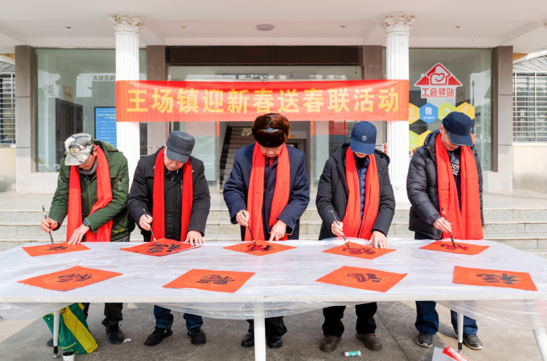 书法家们精神矍铄、兴致盎然。他们凝神落笔、笔走龙蛇,行书飘逸灵动似骏马奔腾、楷书端庄大气如驯马稳行,各具风骨。一副副寓意吉祥的春联跃然纸上,一个个遒劲饱满的“福”字熠熠生辉,字里行间满含对国泰民安、家和人兴的美好期许,更承载着对王场镇美好未来的深切祝福。