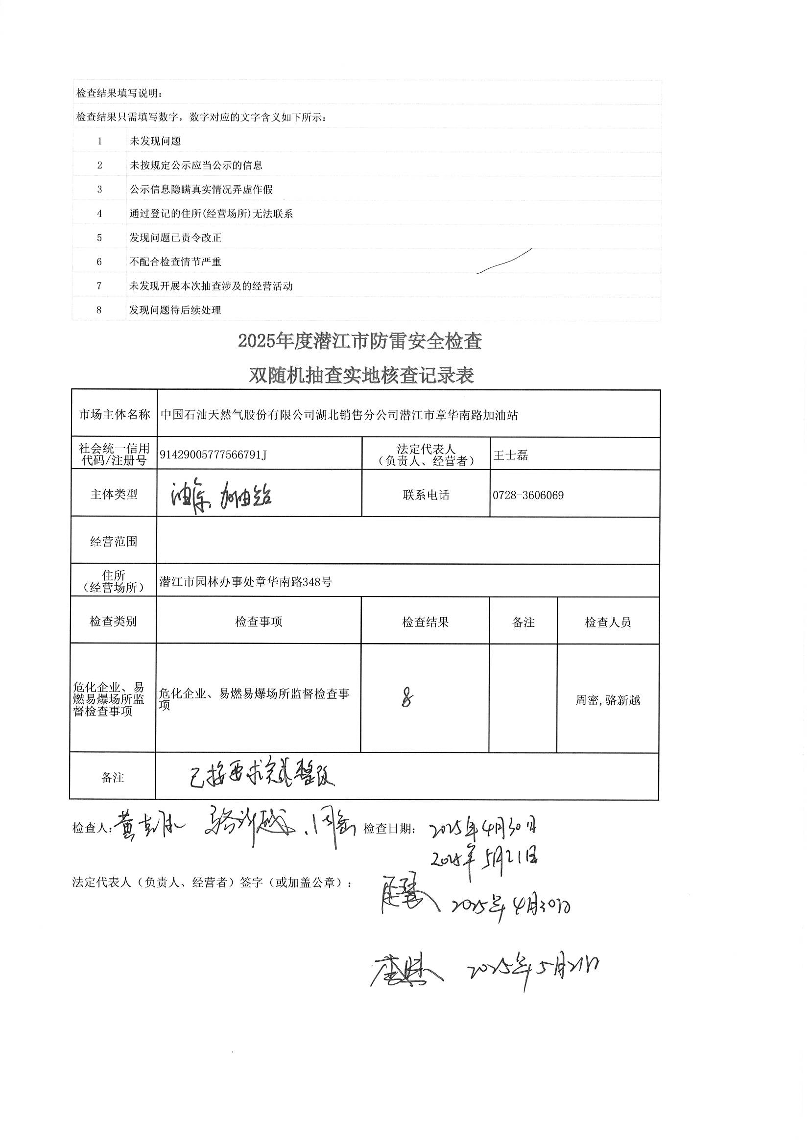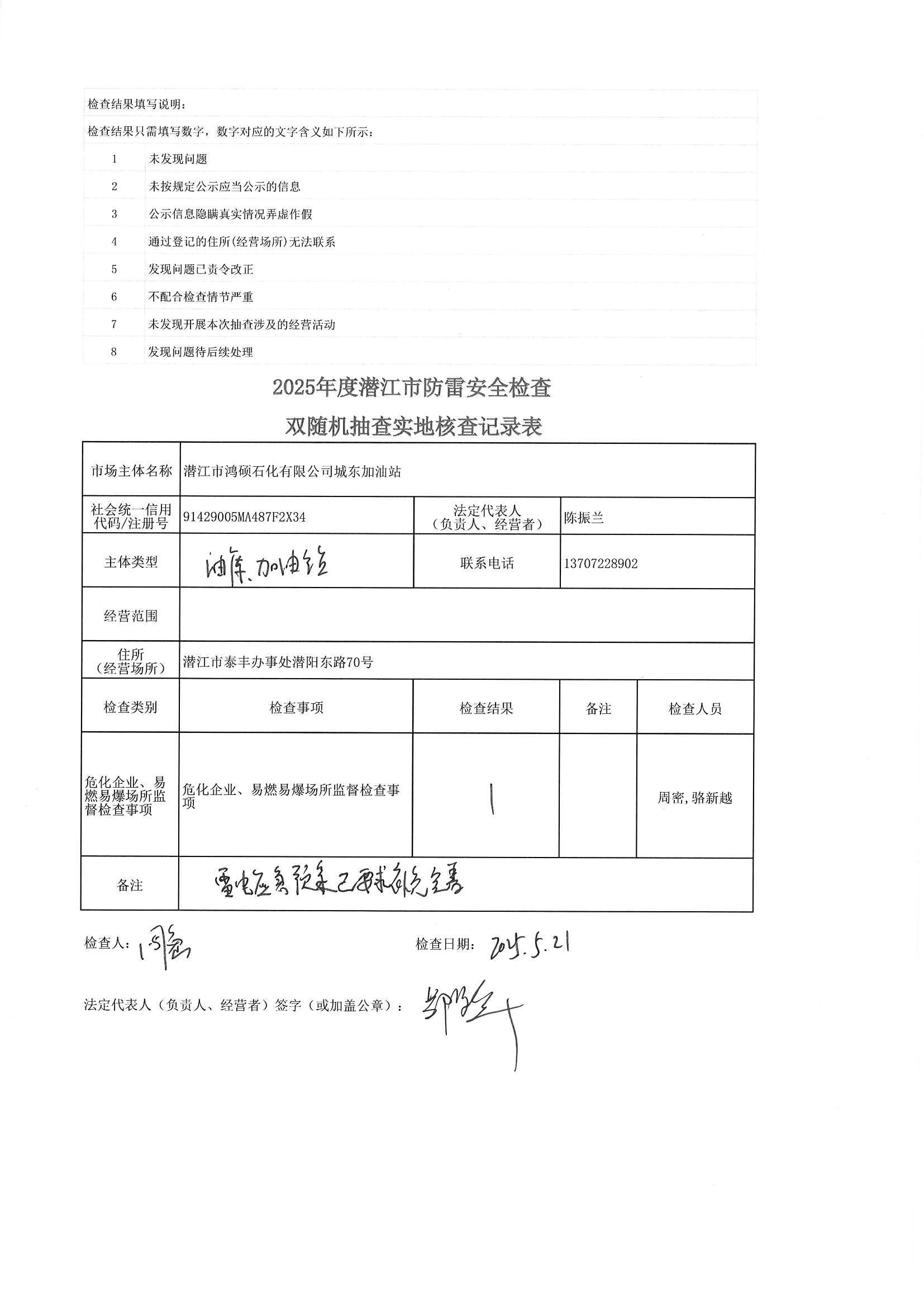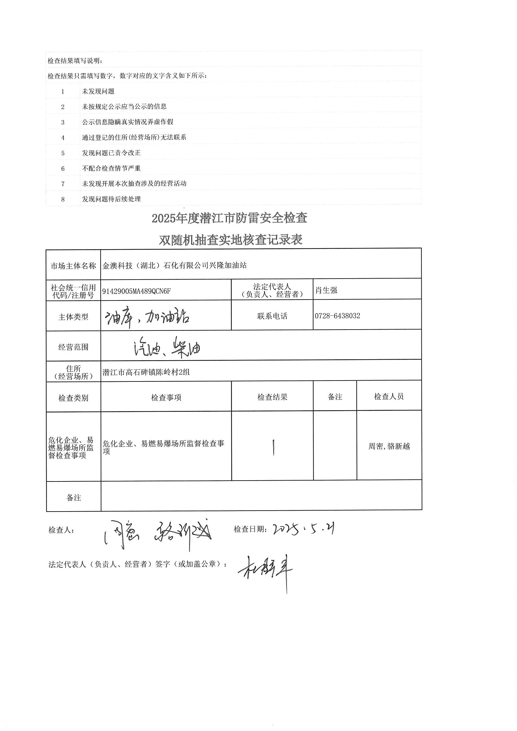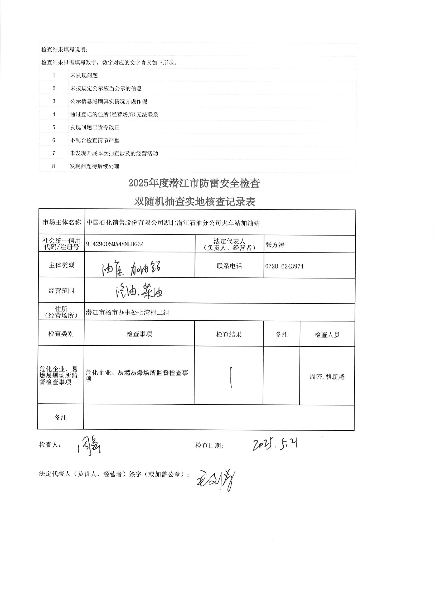 名 称: 潜江市气象局2025年双随机、一公开检查结果