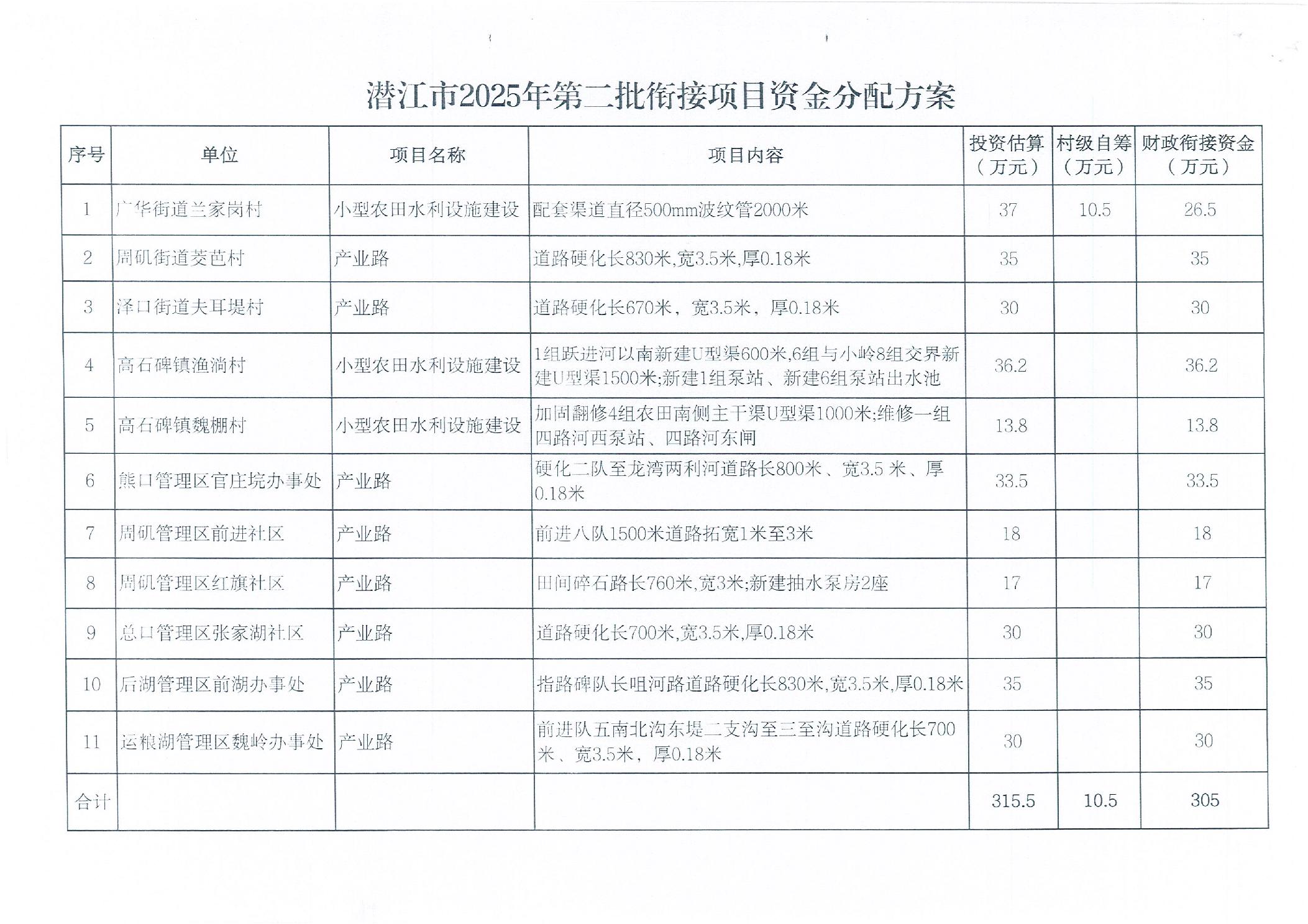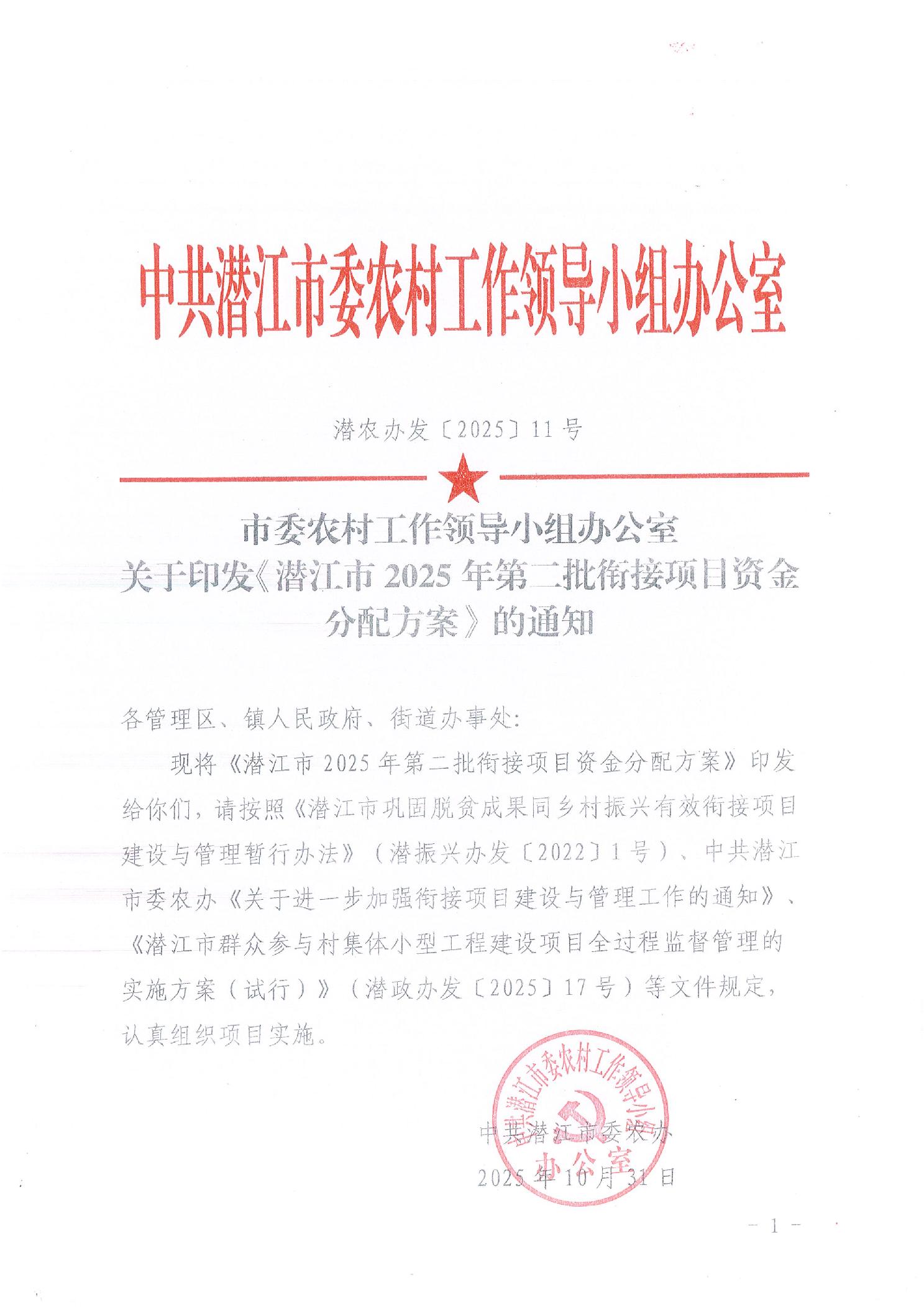 市委农村工作领导小组办公室关于印发《潜江市2025年第二批衔接项目资金分配方案》的通知