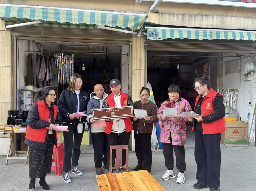 活动当天,正值春日赶集时节,人流量较大。禁毒办工作人员在沿街商铺和农贸市场设立宣传点,通过摆放仿真毒品模型、发放禁毒宣传手册以及小礼品等方式,吸引过往群众驻足观看。