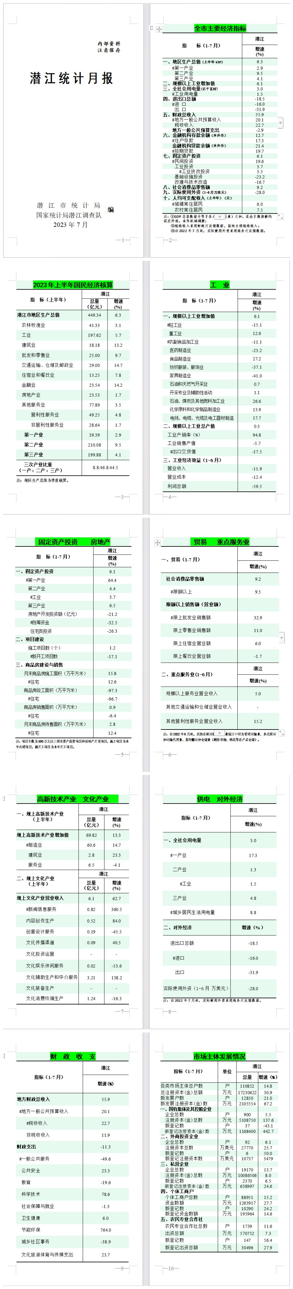 名 称: 2023年7月潜江市国民经济统计月报(202307)