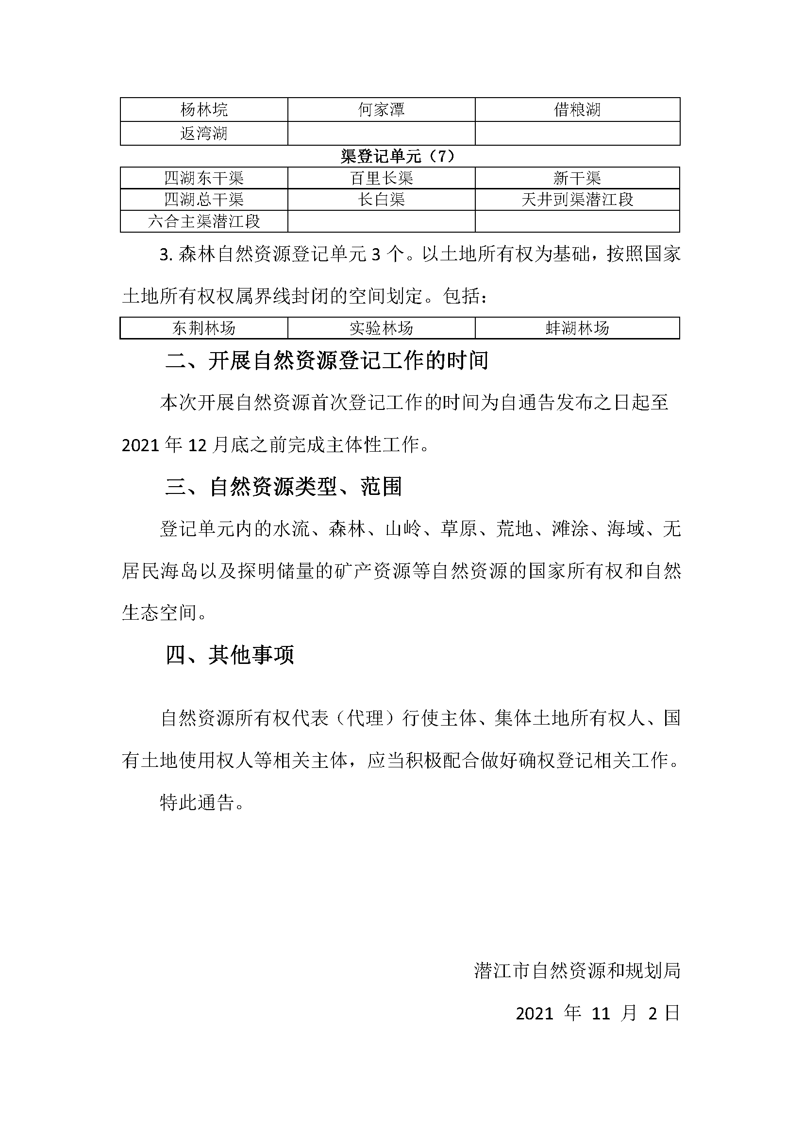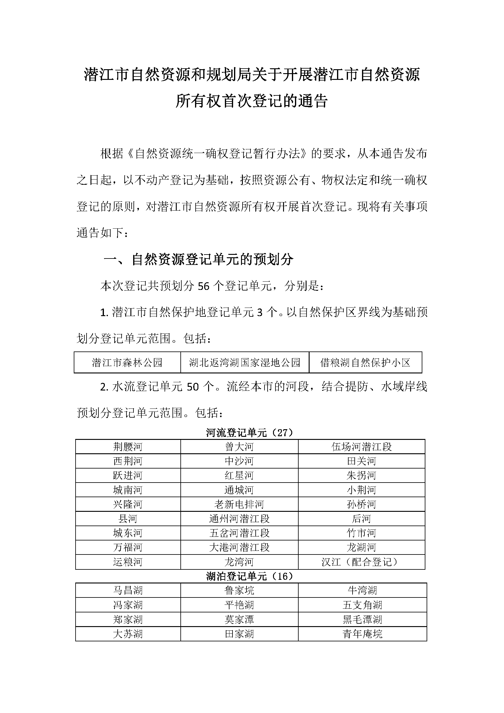 潜江市自然资源和规划局关于开展潜江市自然资源所有权首次登记的通告