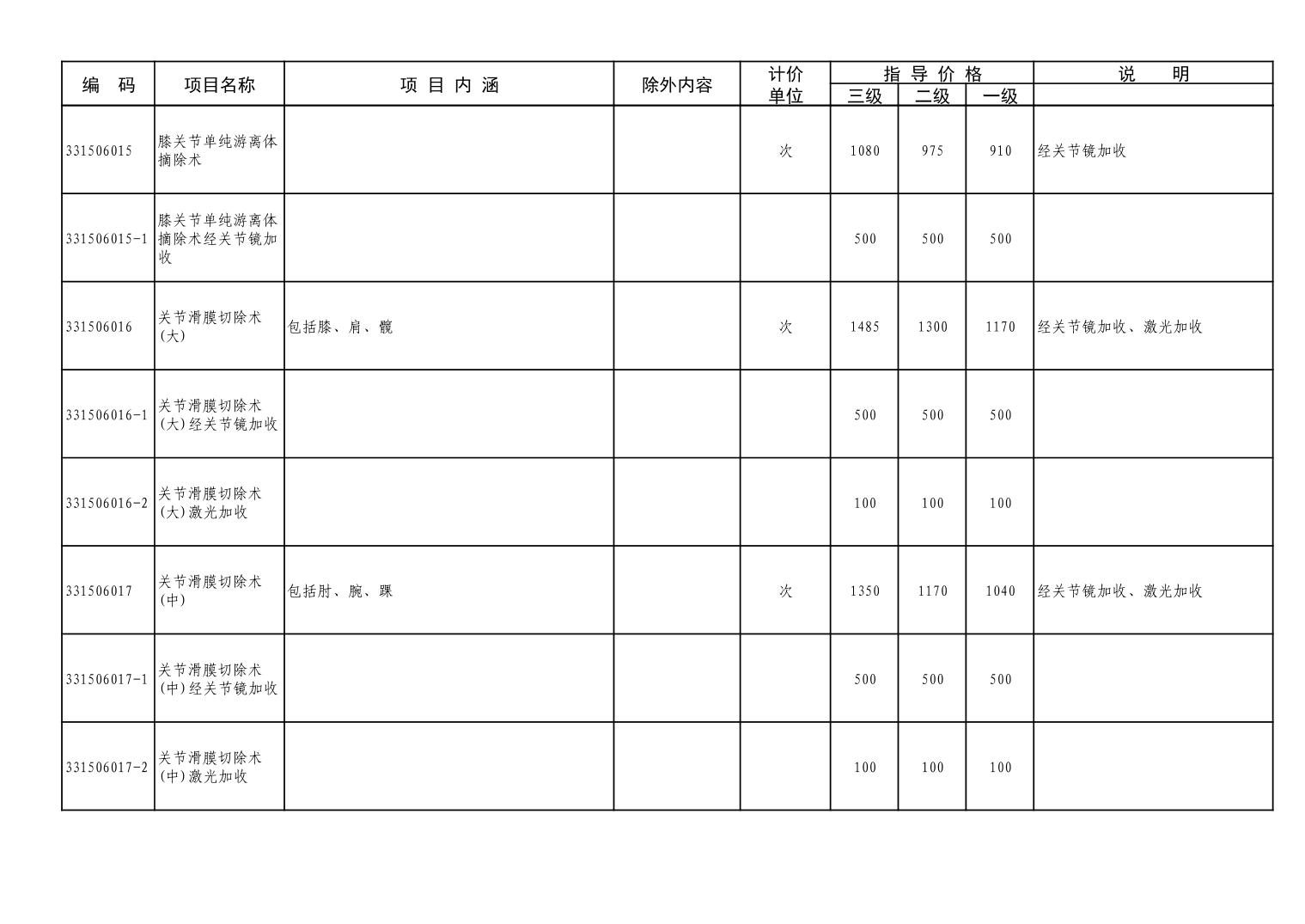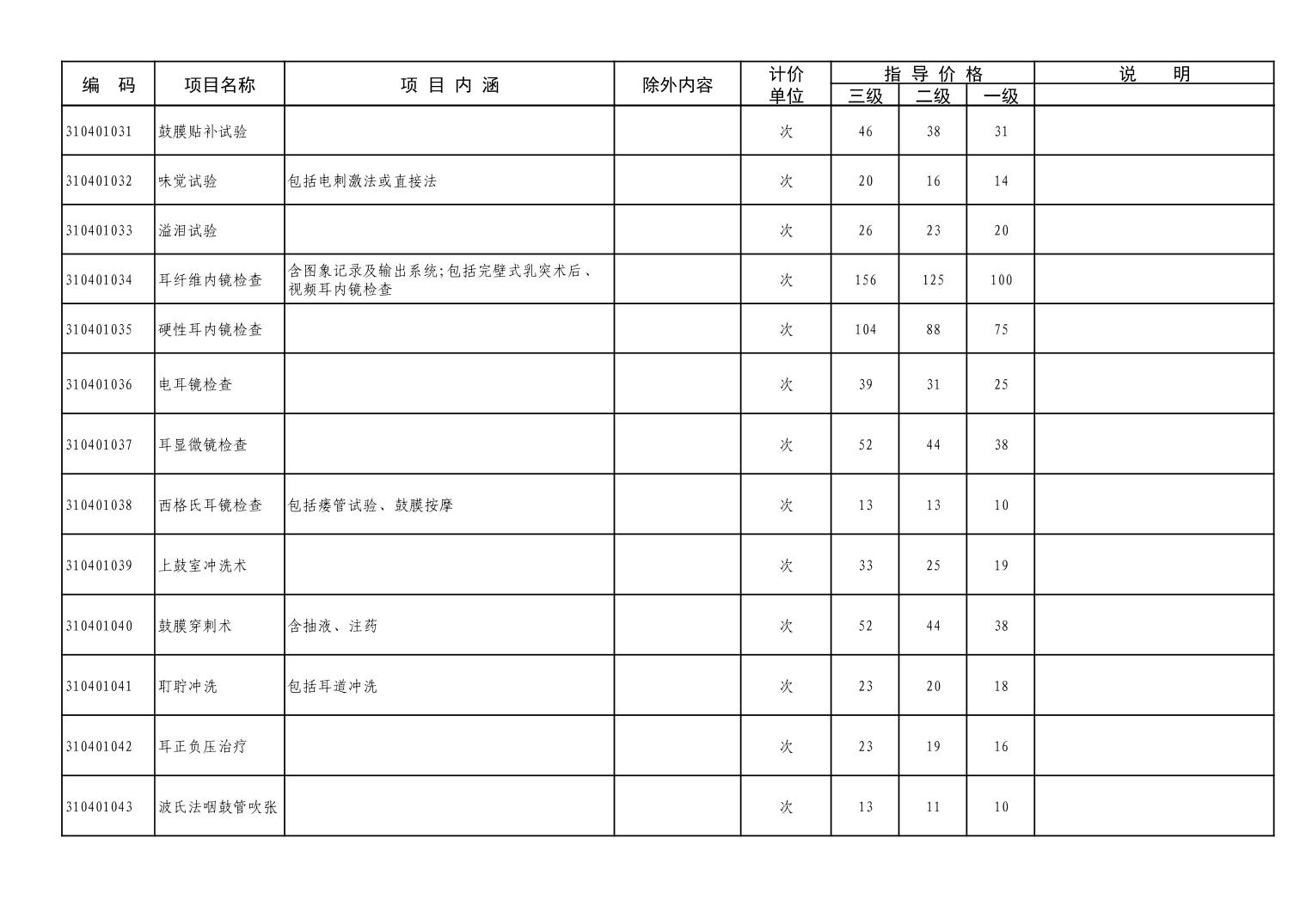 潜江市医疗服务价格项目目录