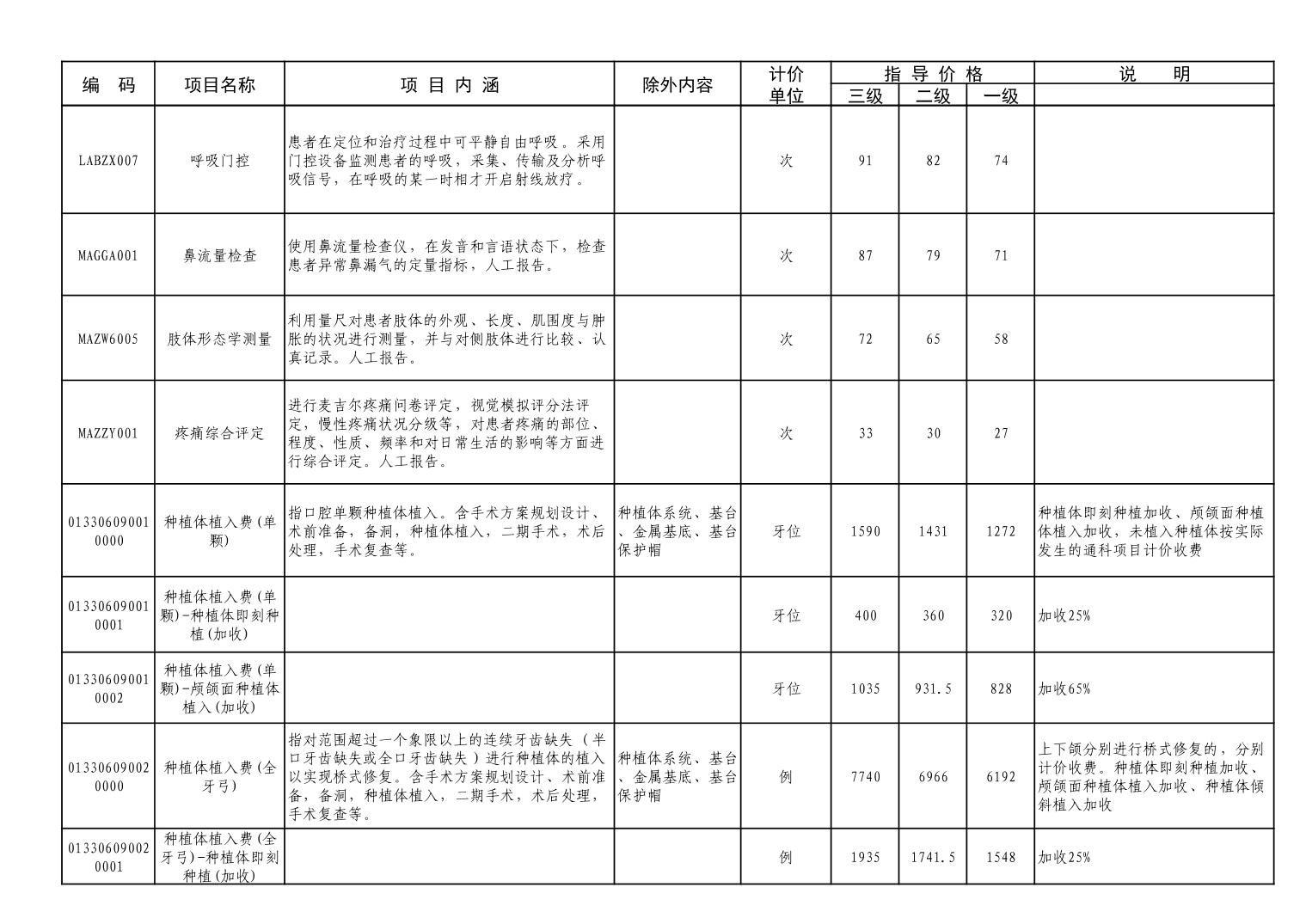 潜江市医疗服务价格项目目录.xls