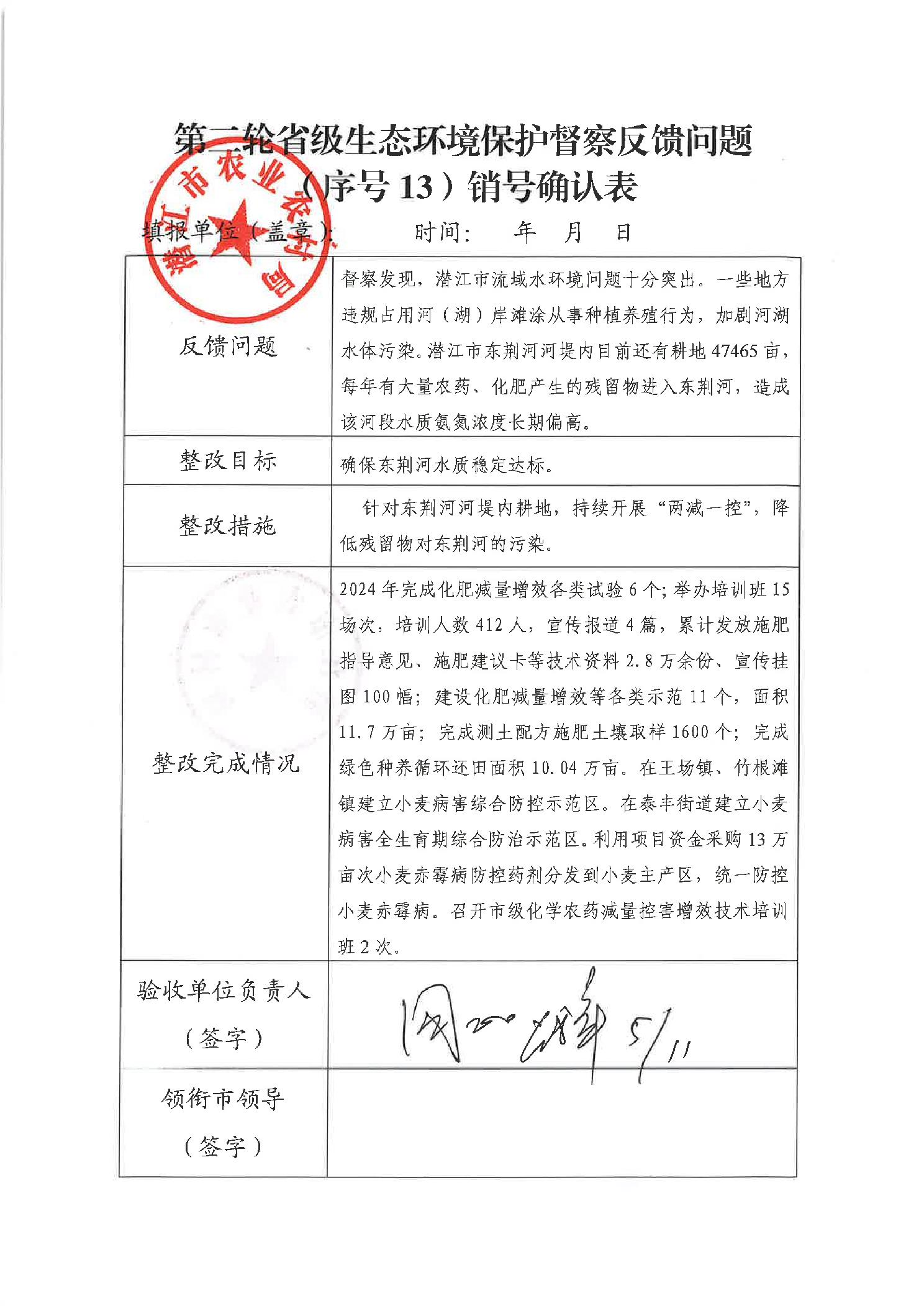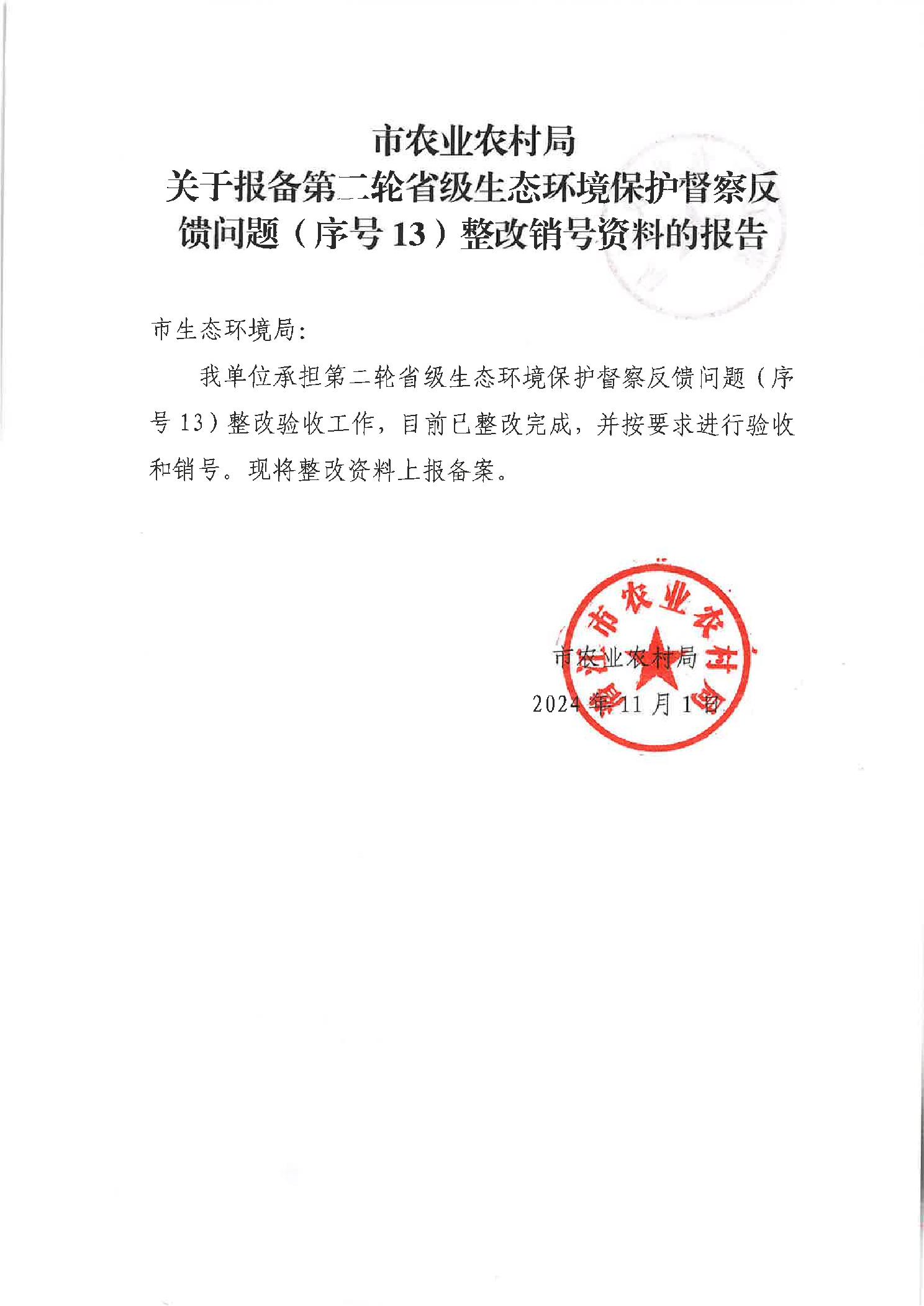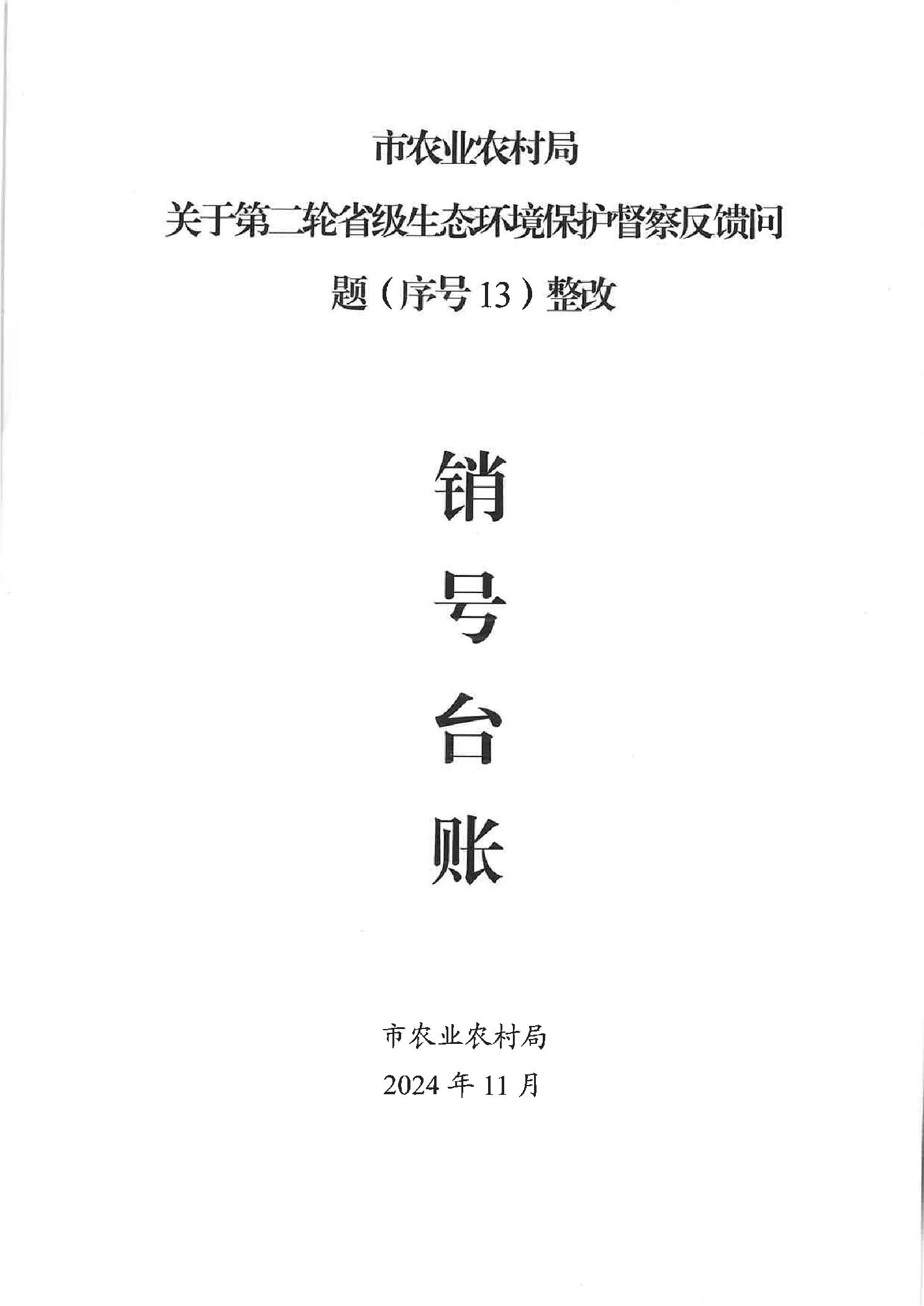 市农业农村局关于第二轮省级生态环境保护督察反馈问题(序号13)整改销号台账