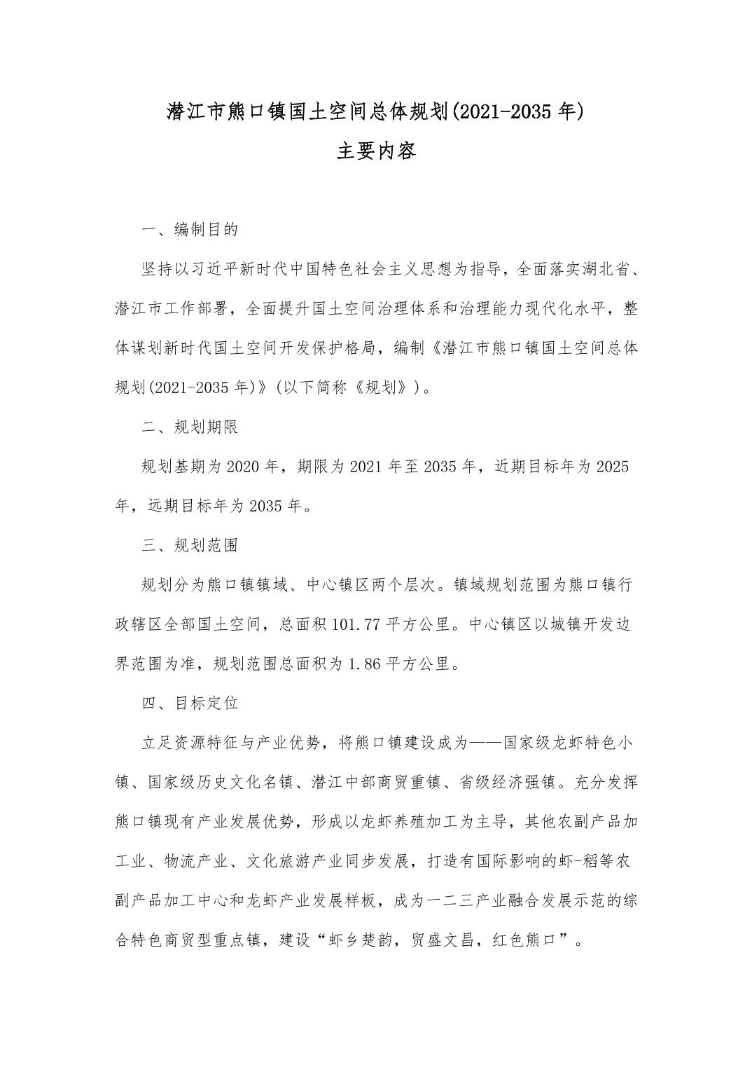 【公示文件】潜江市熊口镇国土空间总体规划.docx
