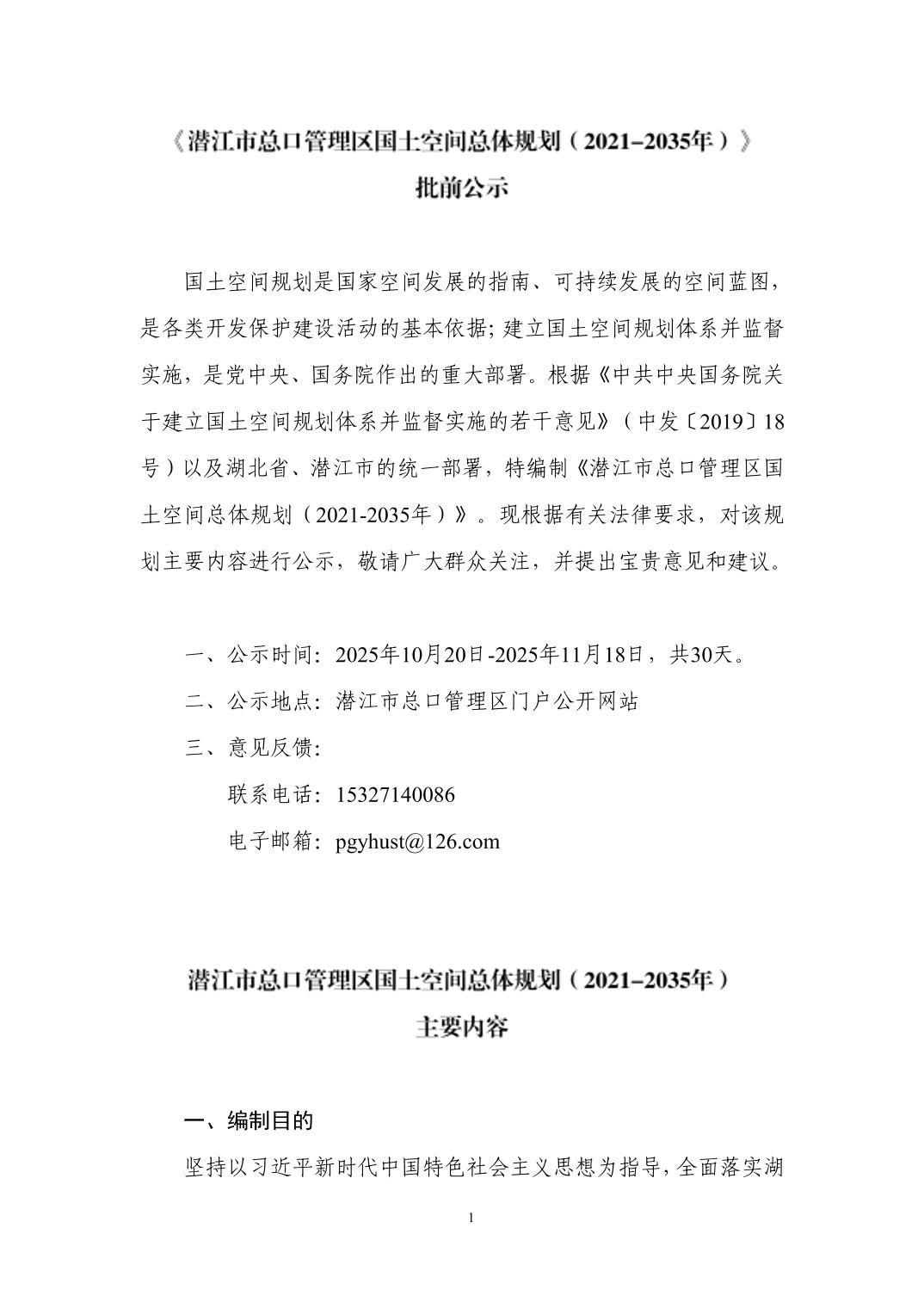 《潜江市总口管理区国土空间总体规划(2021-2035年)》批前公示