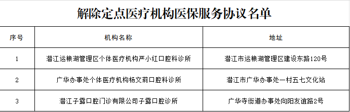 依据《潜江市定点医疗机构医疗保障服务协议(2025年版)》约定内容,现对解除医保服务协议的医疗机构名单予以公布。