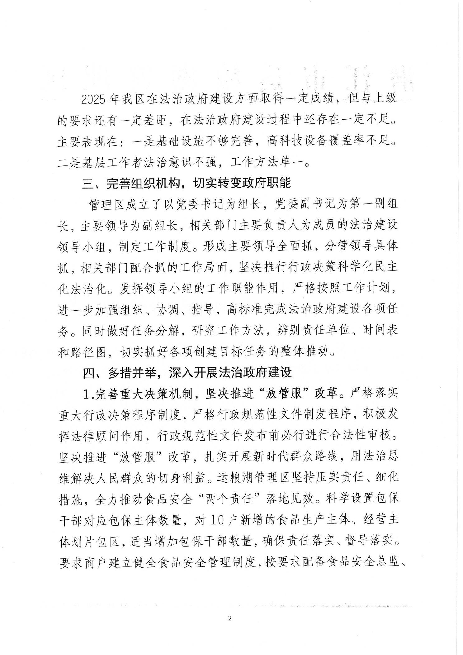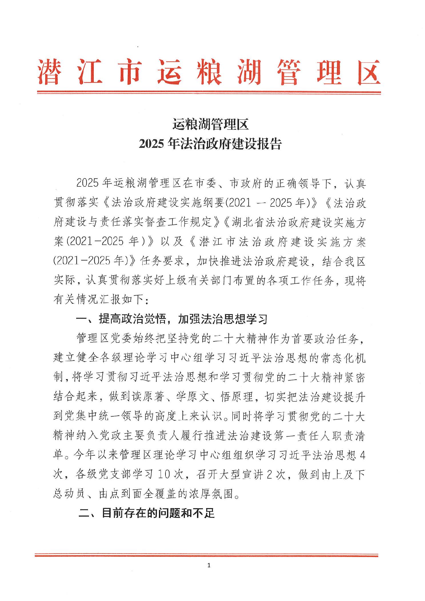运粮湖管理区2025年法治政府建设报告