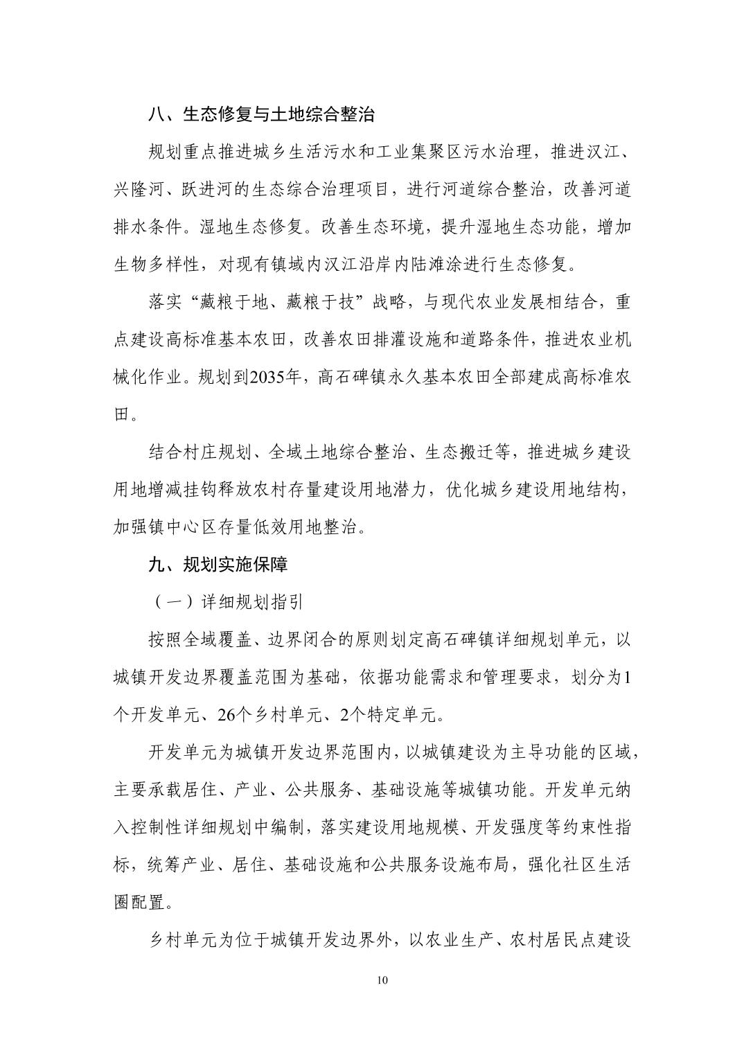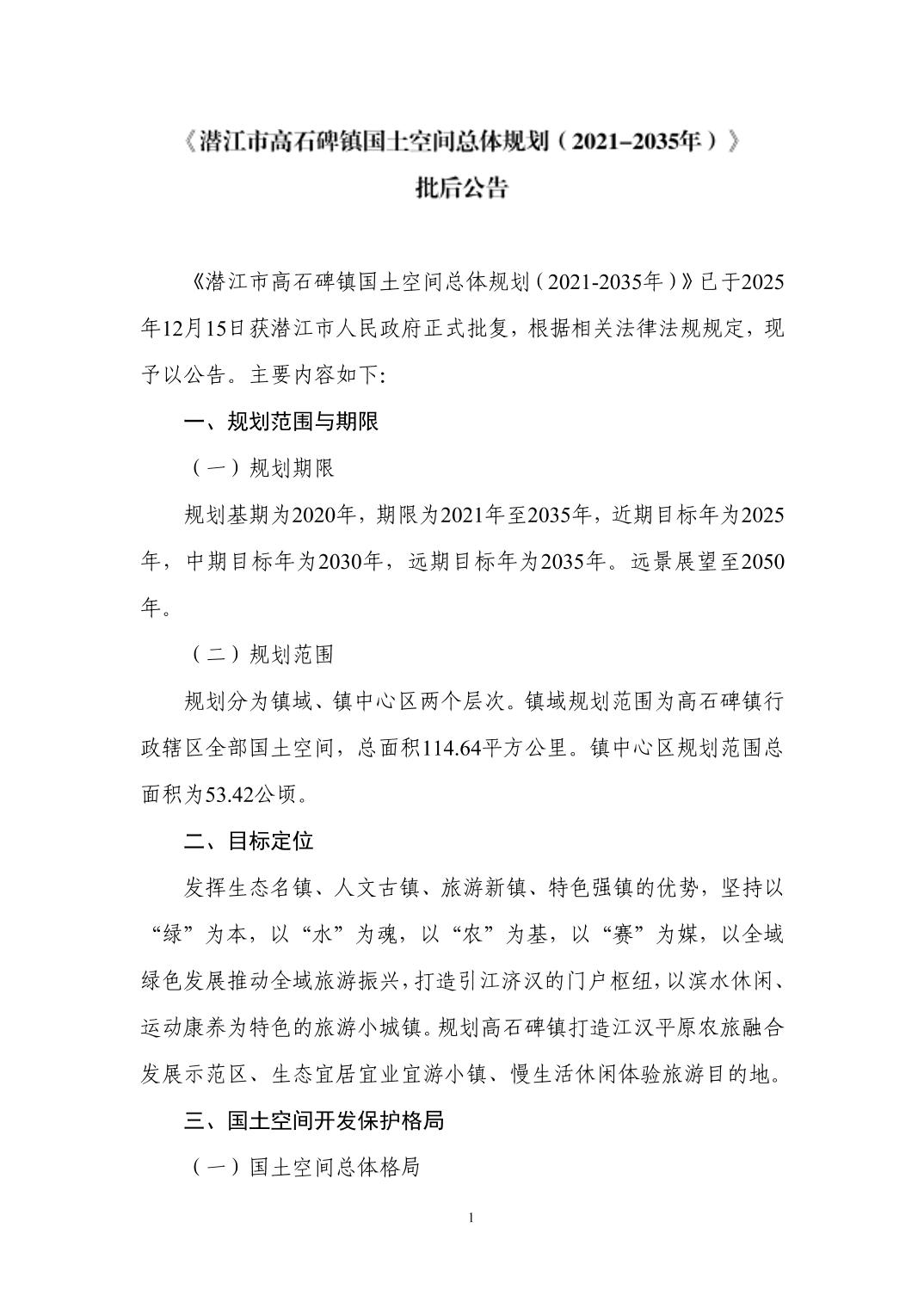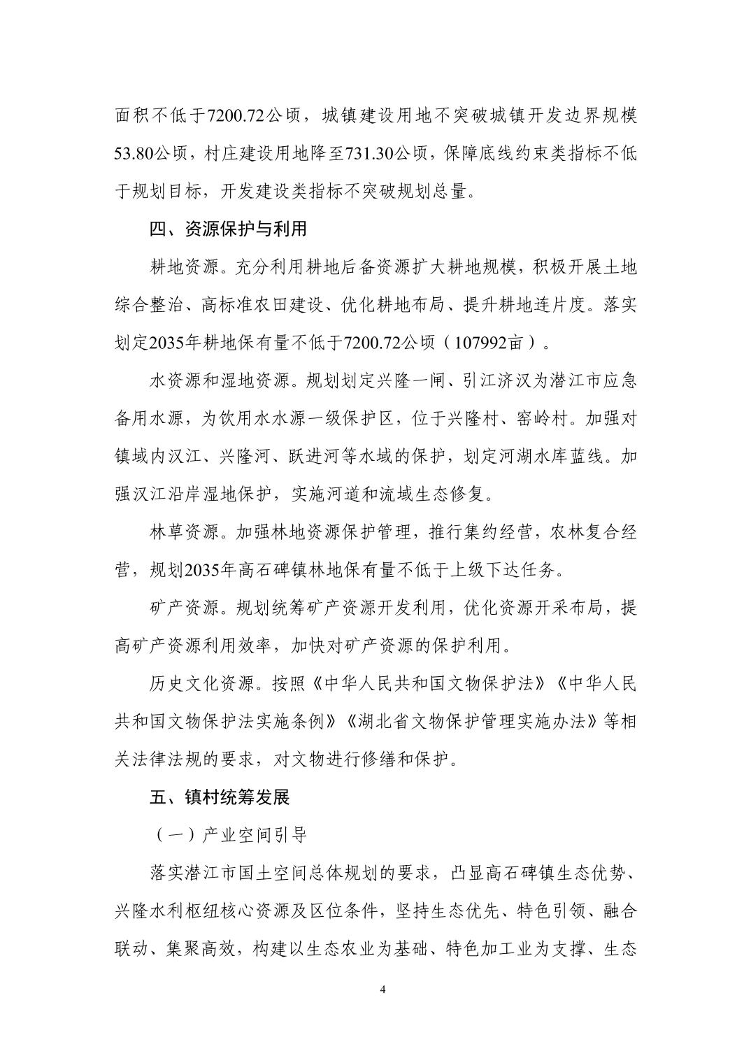 潜江市高石碑镇国土空间总体规划(2021-2035年)批后公告