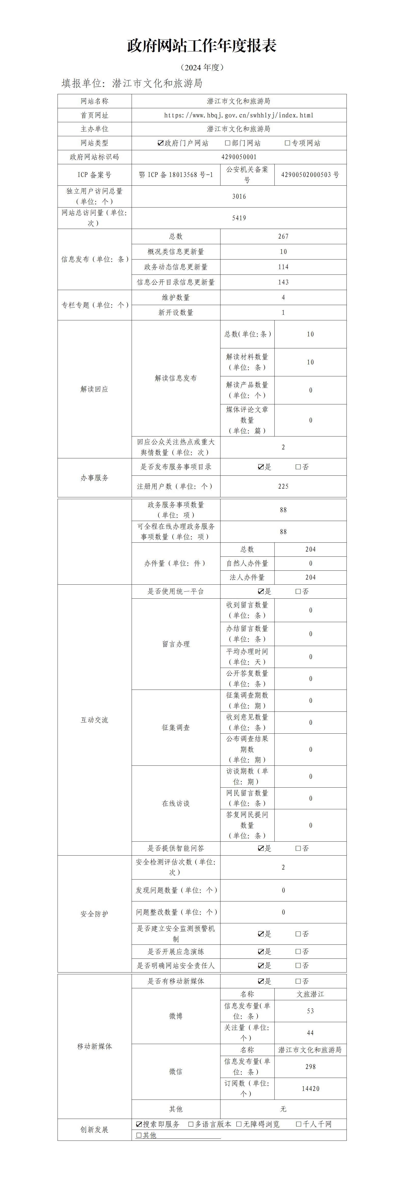 名 称: 潜江市文化和旅游局政府网站工作年度报表 (2024年度)