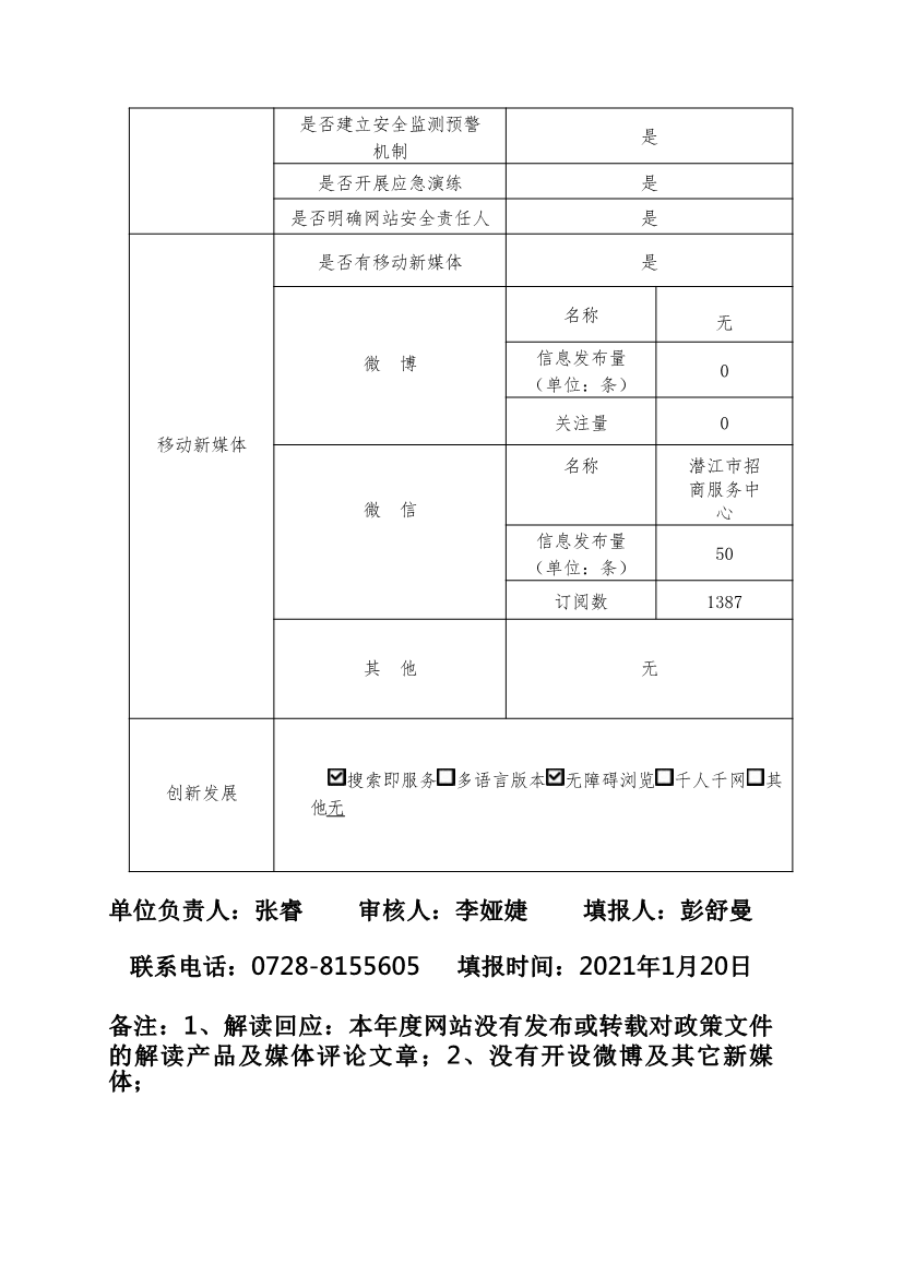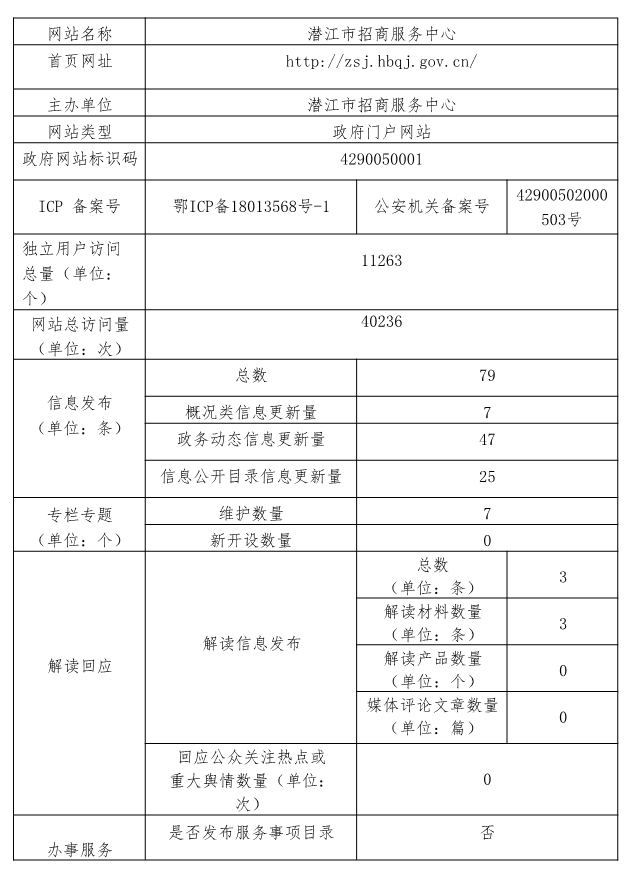 潜江市招商服务中心政府网站工作年度报表(2020年度)