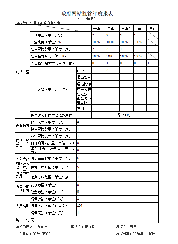 潜江市政府门户网站监管年度报表(2019年度)