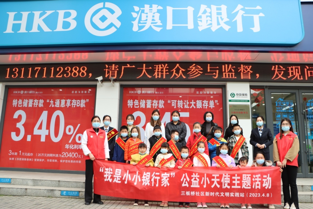 4月8日,三板桥社区联合市义工联合会、汉口银行潜江支行开展“我是小小银行家”公益小天使知识科普主题活动。