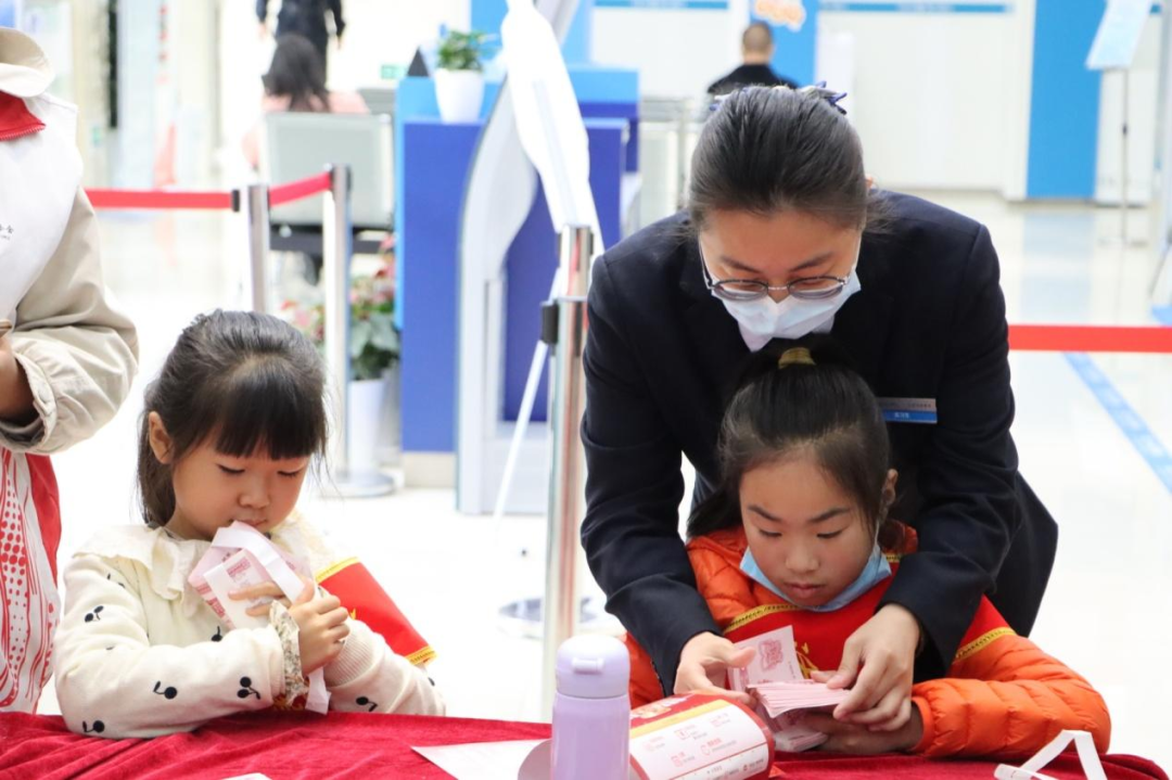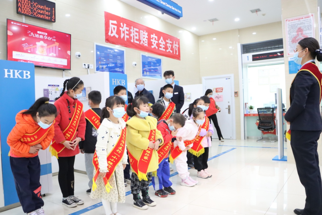 活动中小朋友们佩戴“小小银行家”的绶带,在银行工作人员的带领下参观了银行智能机具体验区、现金业务体验区、非现金业务体验区,小朋友现场体验了叫号业务和邻里宝上现场开卡服务。